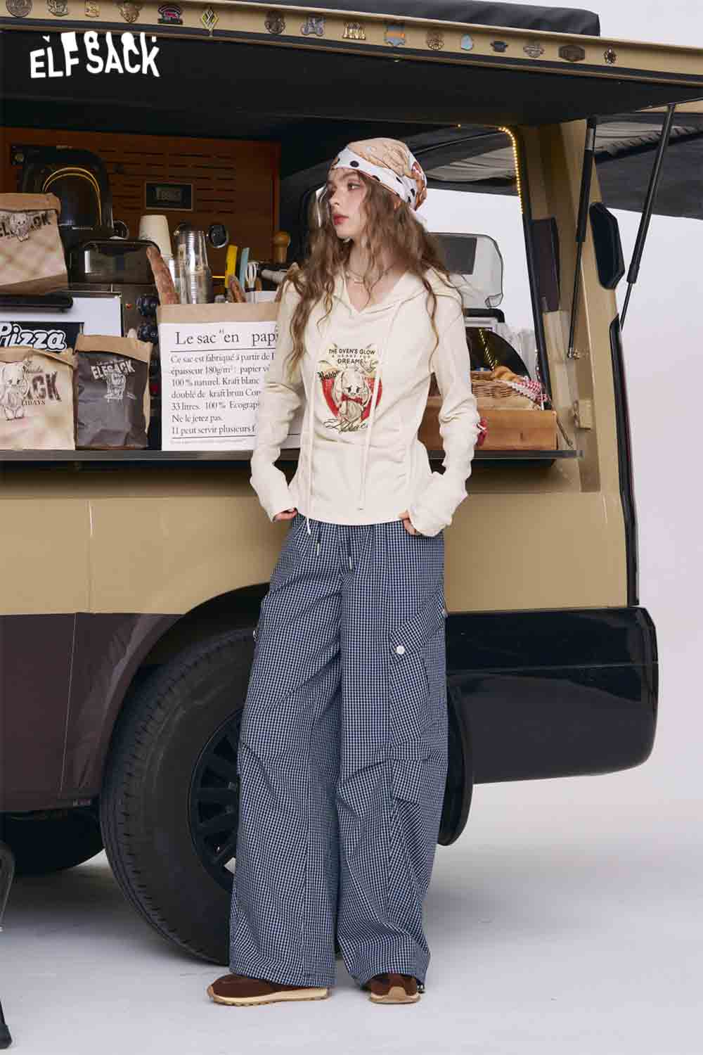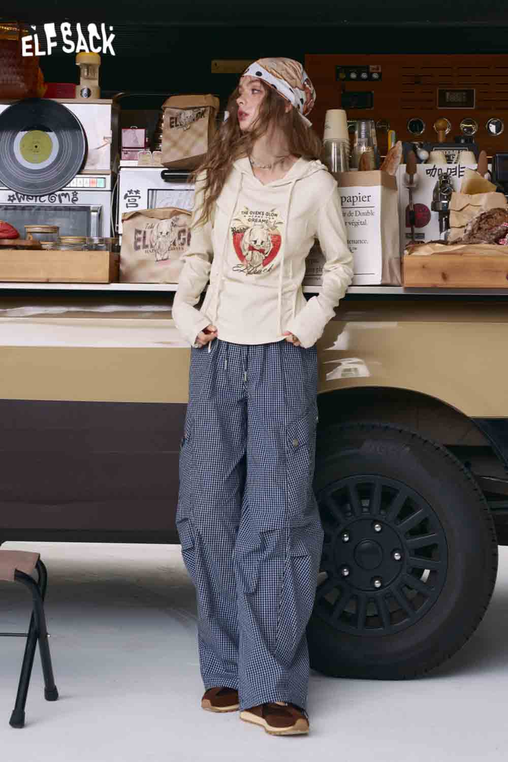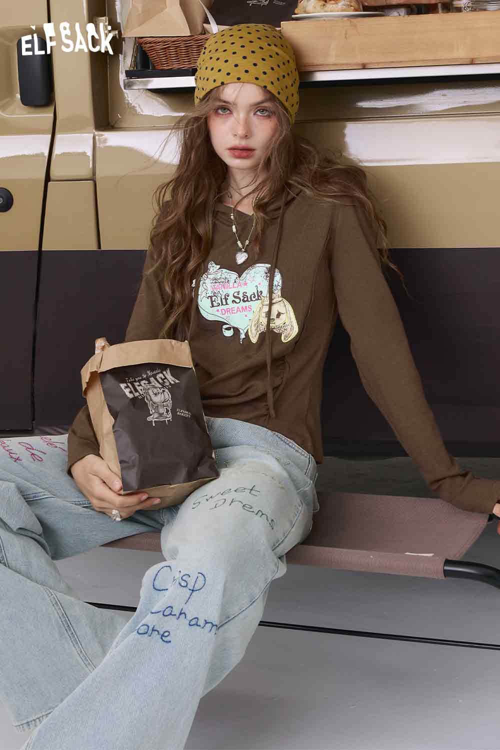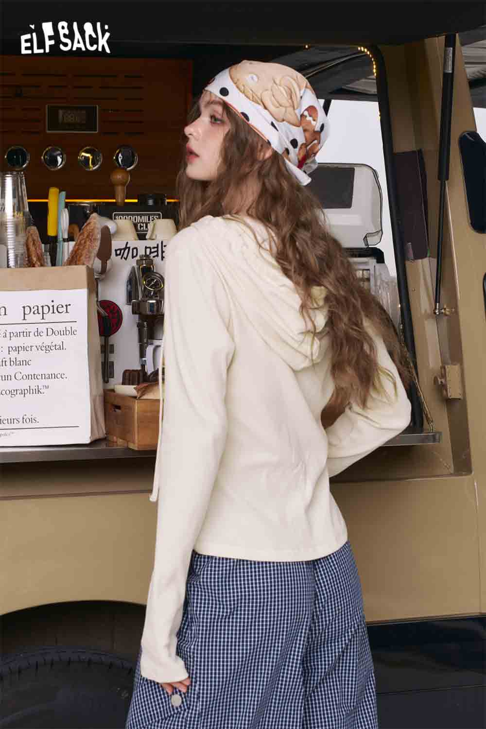 Slim-Fit Ruched Print Long Sleeve Hooded Top