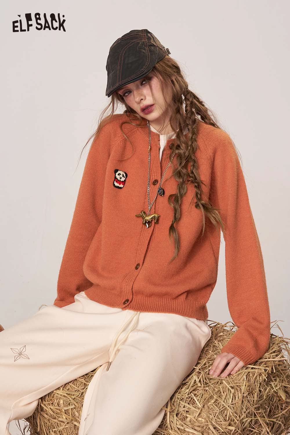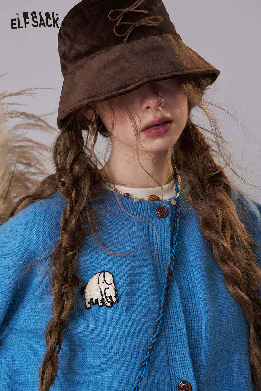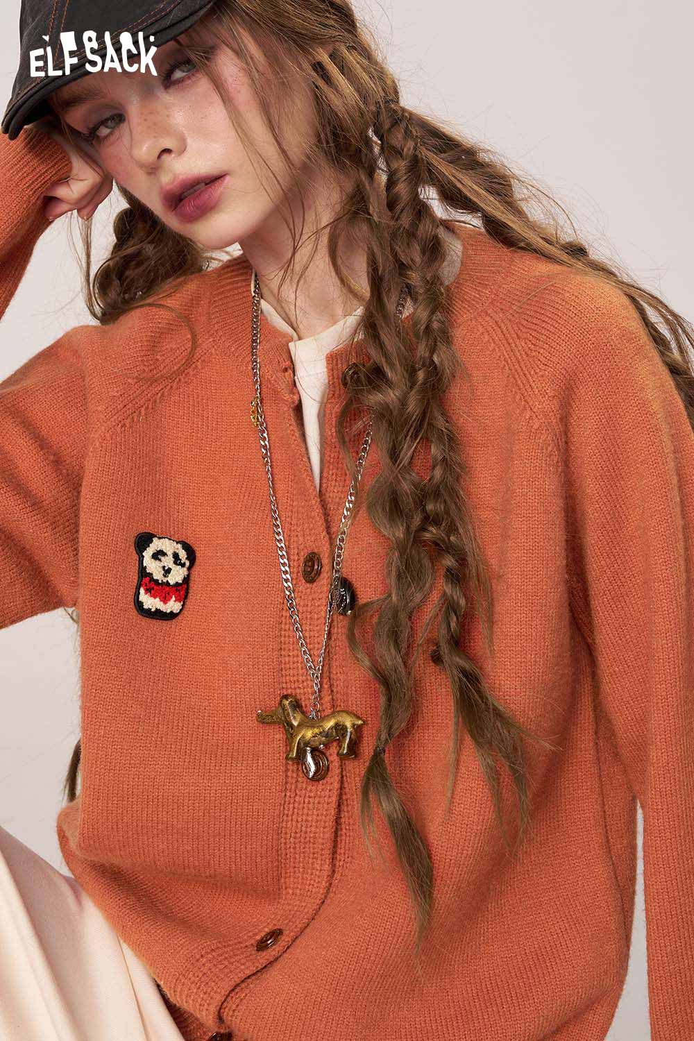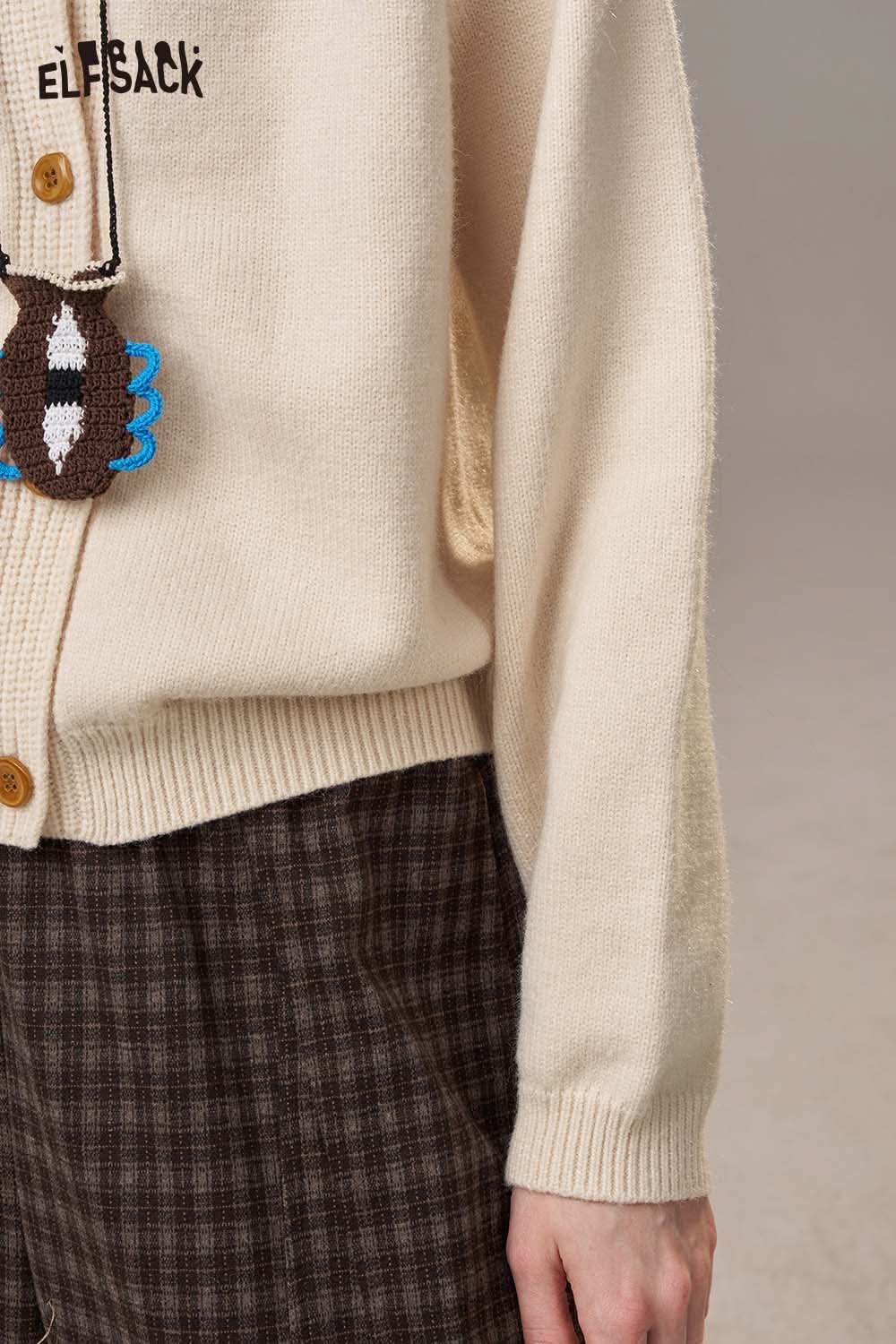 Soft Solid Color Cartoon Embroidery Detail Knit Cardigan