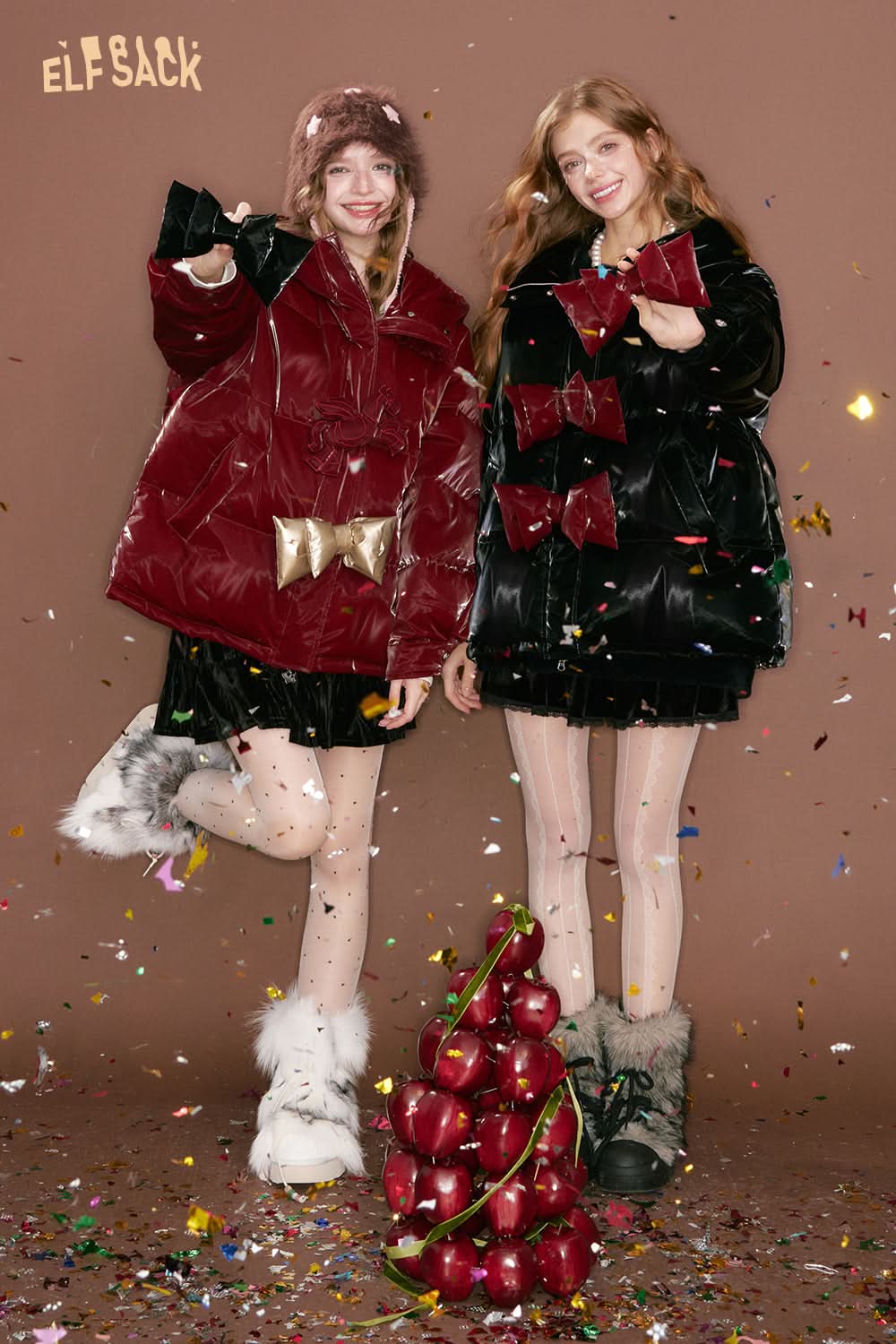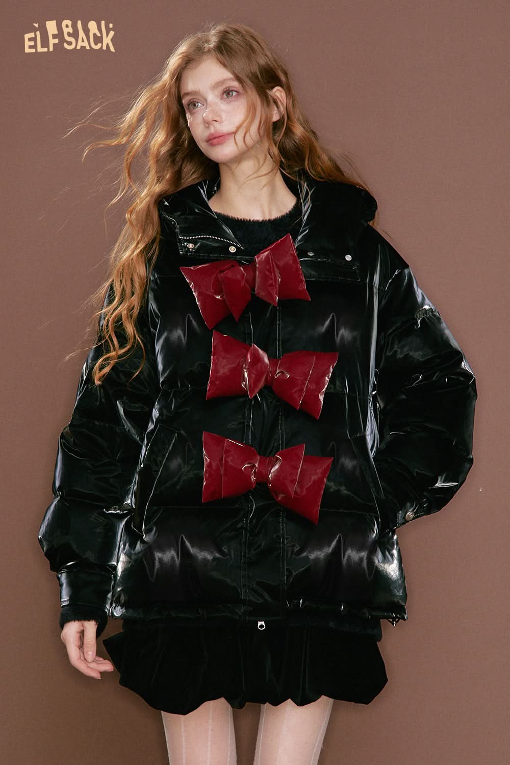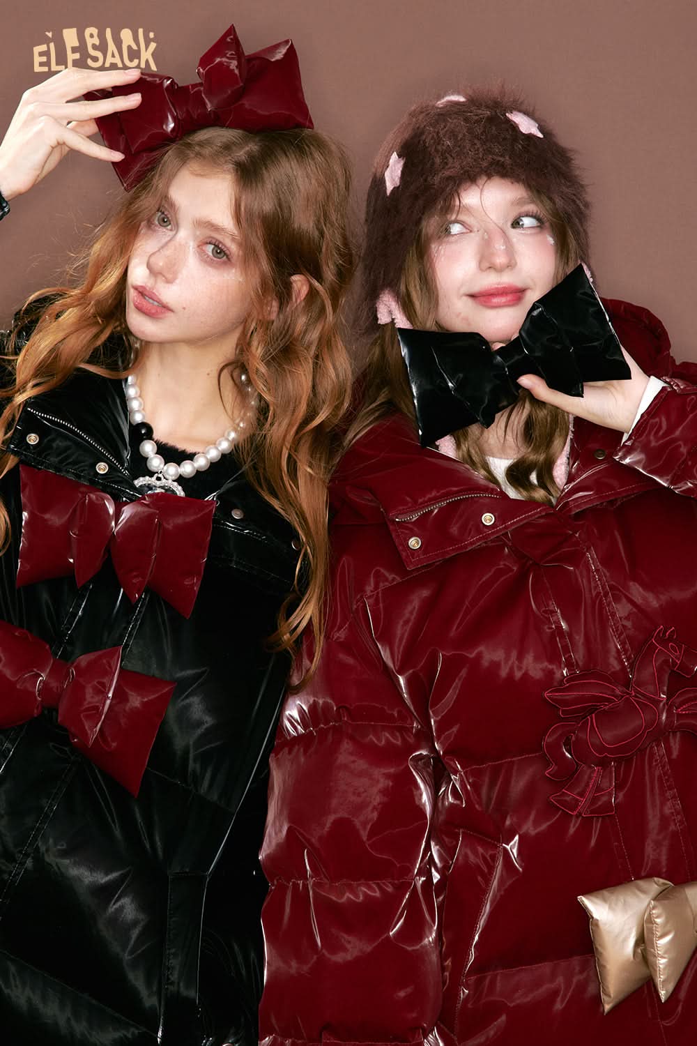 Y2K Unique Design Shiny Extra 3 Detachable Bows Embellishment Short Down Jacket