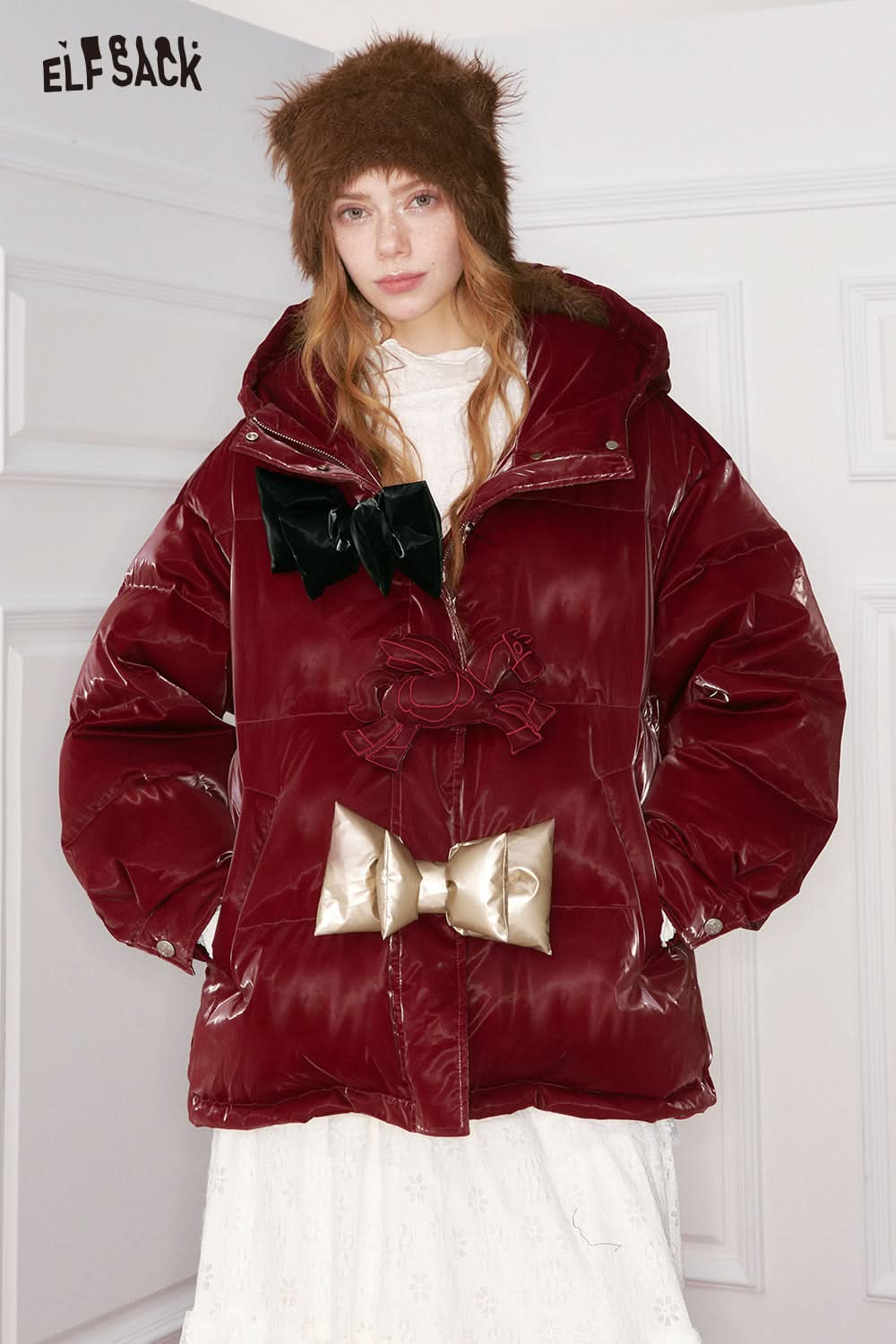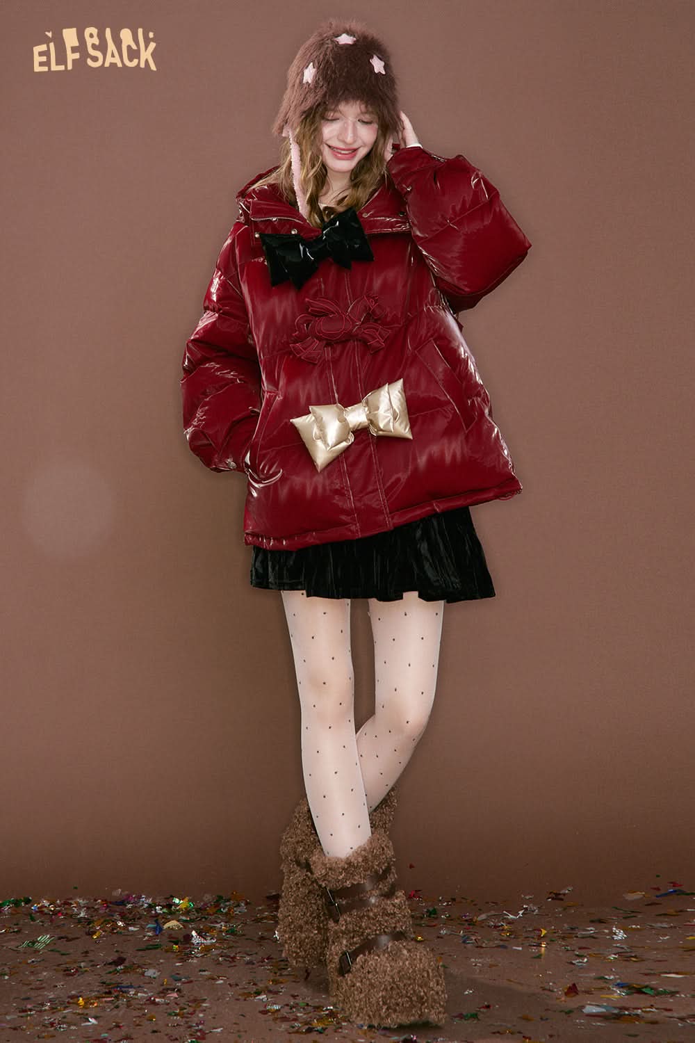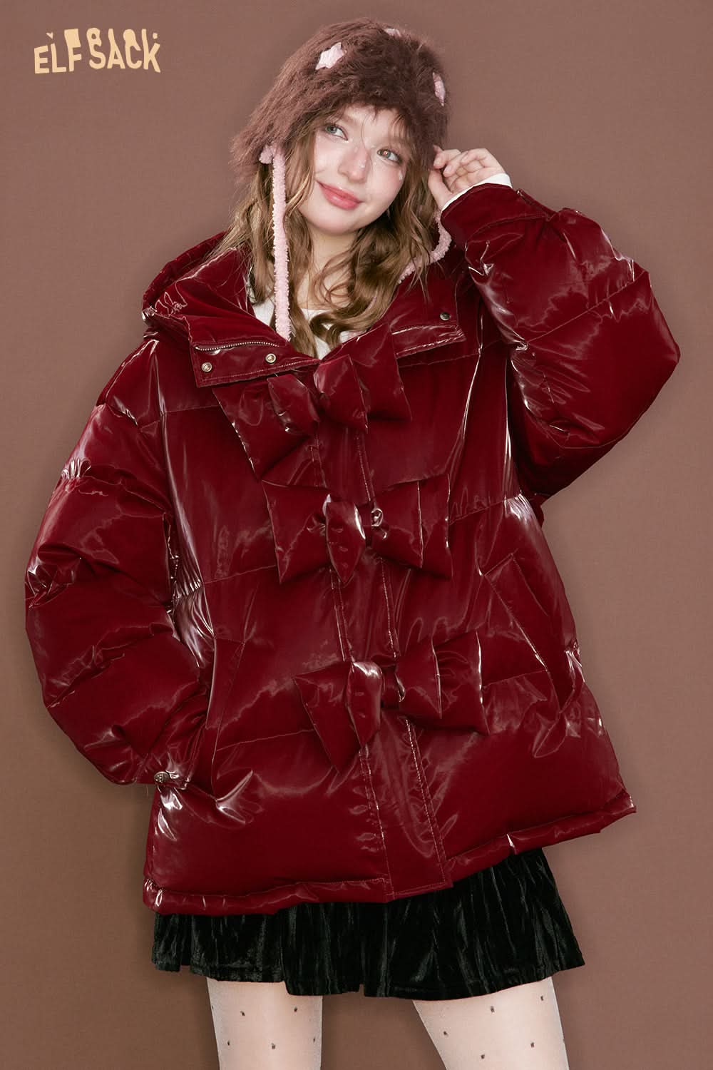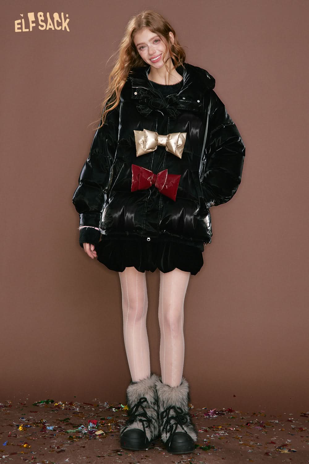 Y2K Unique Design Shiny Extra 3 Detachable Bows Embellishment Short Down Jacket