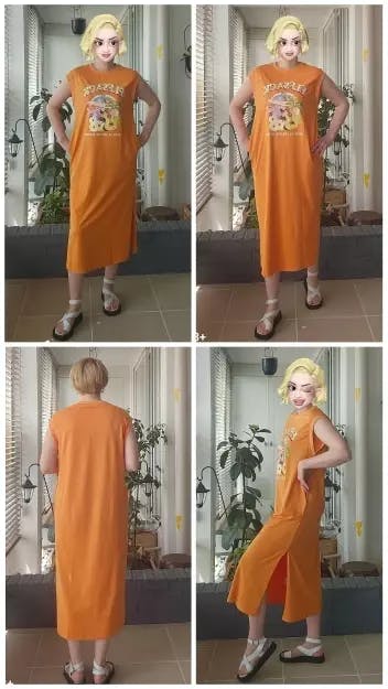 Alphabet guitar print small height casual slim sleeveless t-shirt dress
