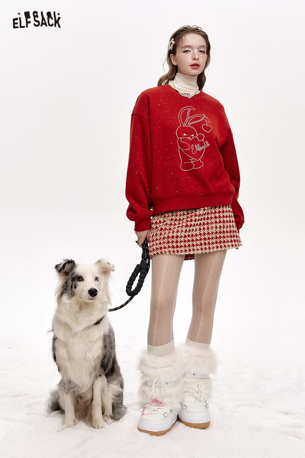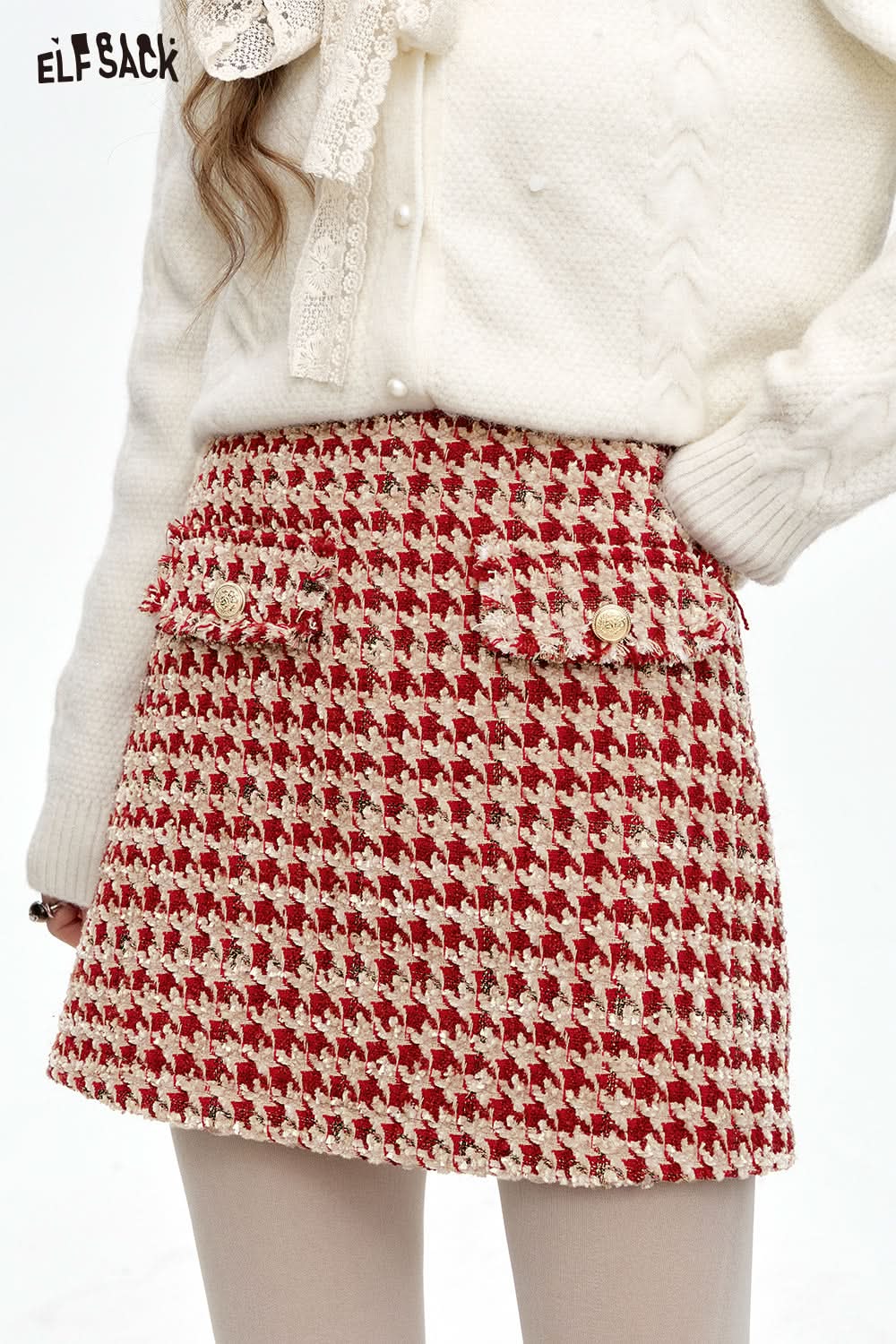 Red plaid tweed skirt women