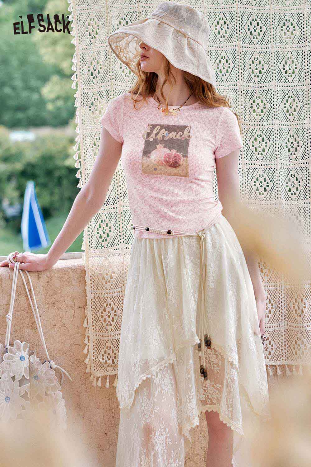 Solid Graphic Print Knit Short Sleeve Tee Slim Fit