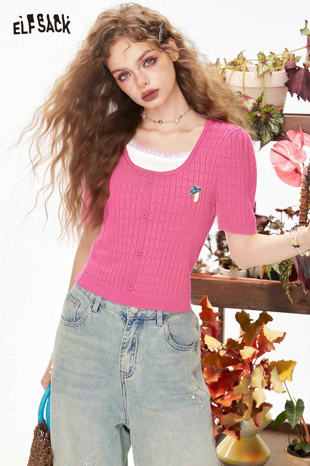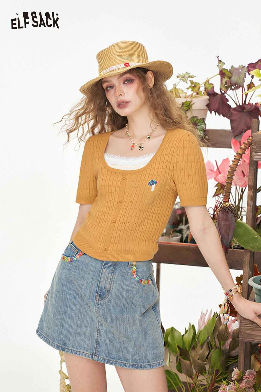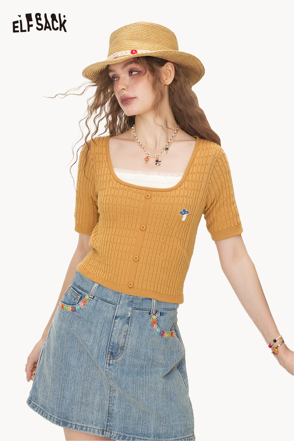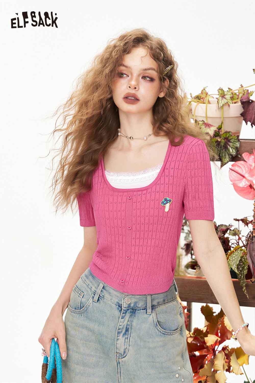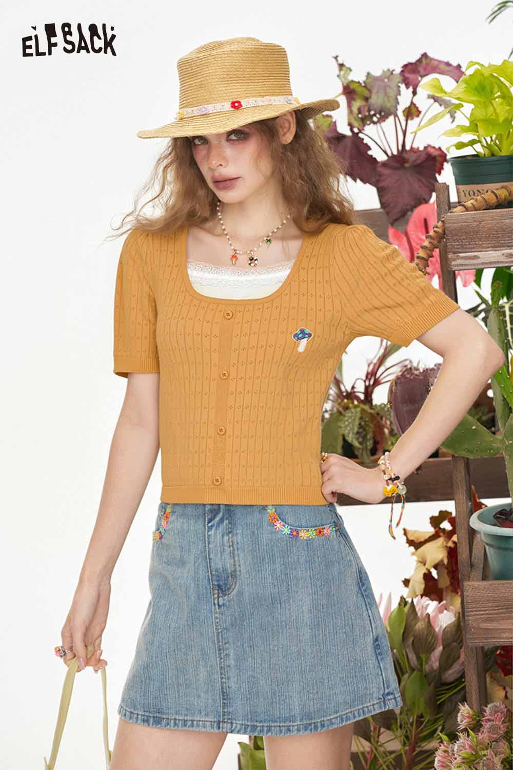 Casual Classic Solid Embroidered Short Sleeve Knitwear