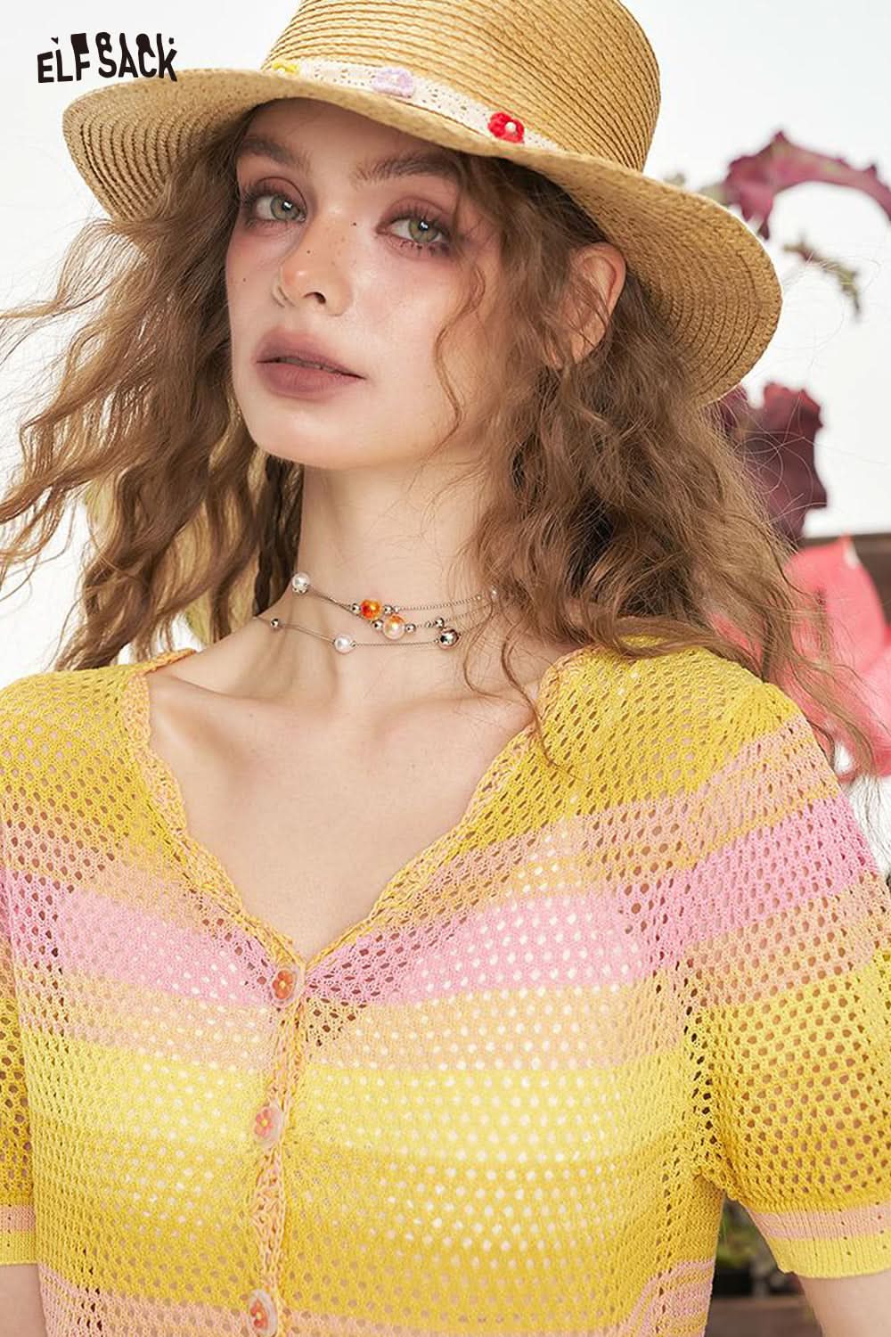 Dopamine Hollow Short Sleeved Knitted Sweater