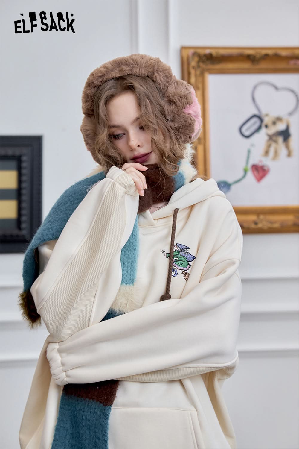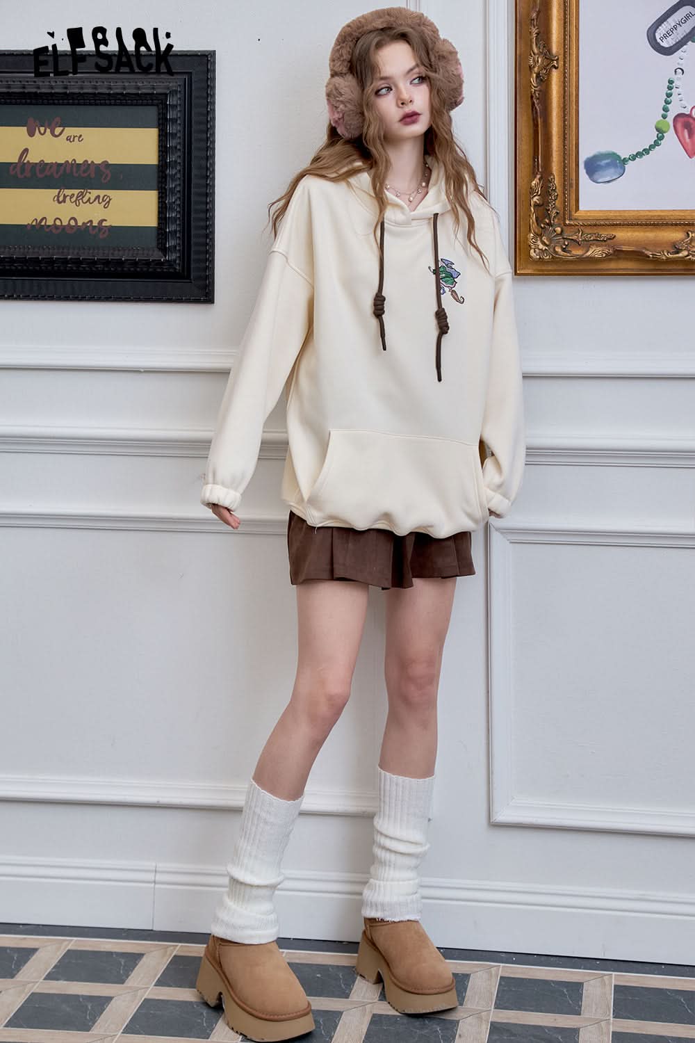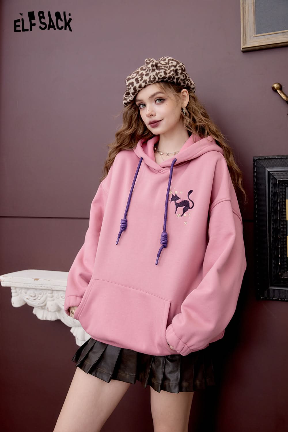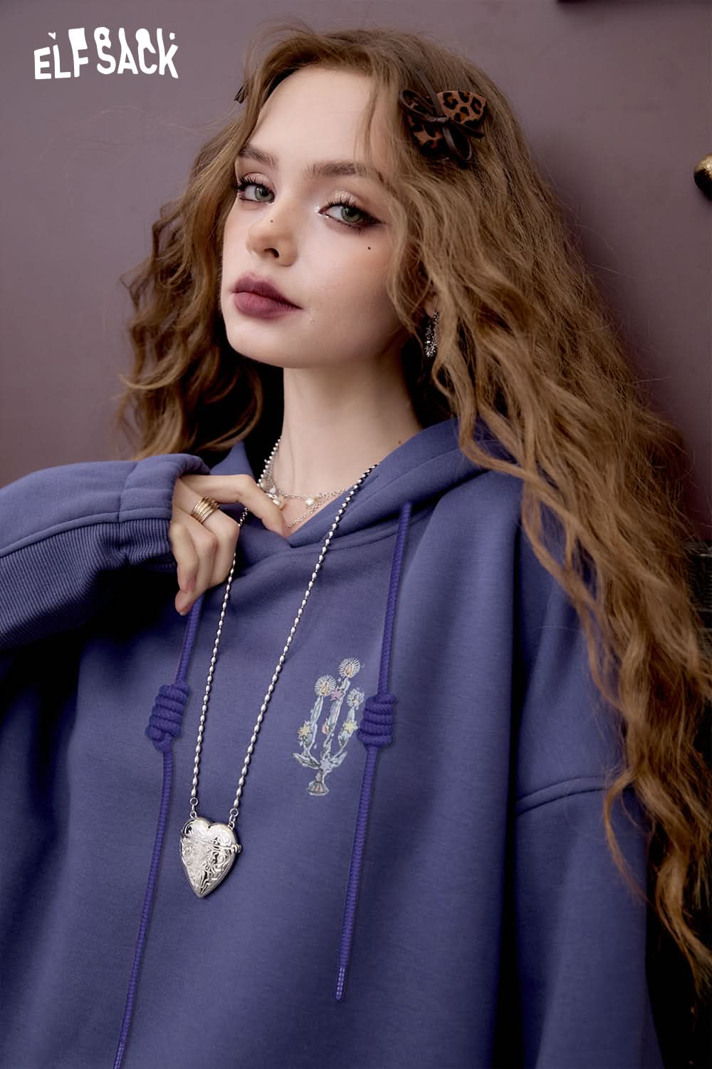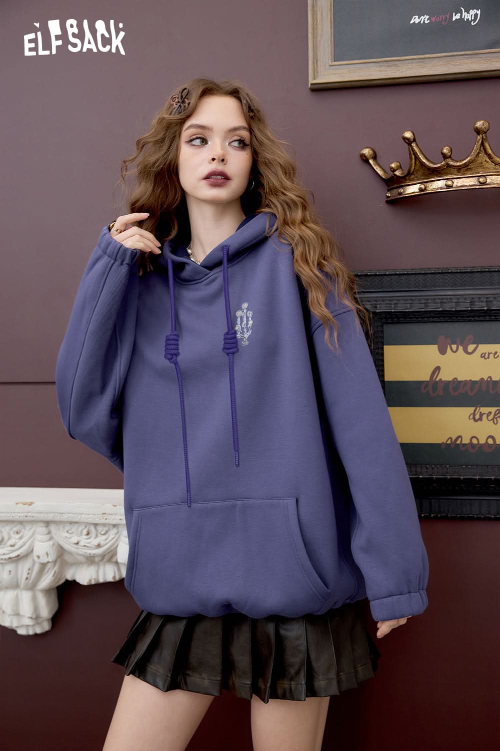 Loose Preppy style witch embroidery hoodie retro cute fleece top