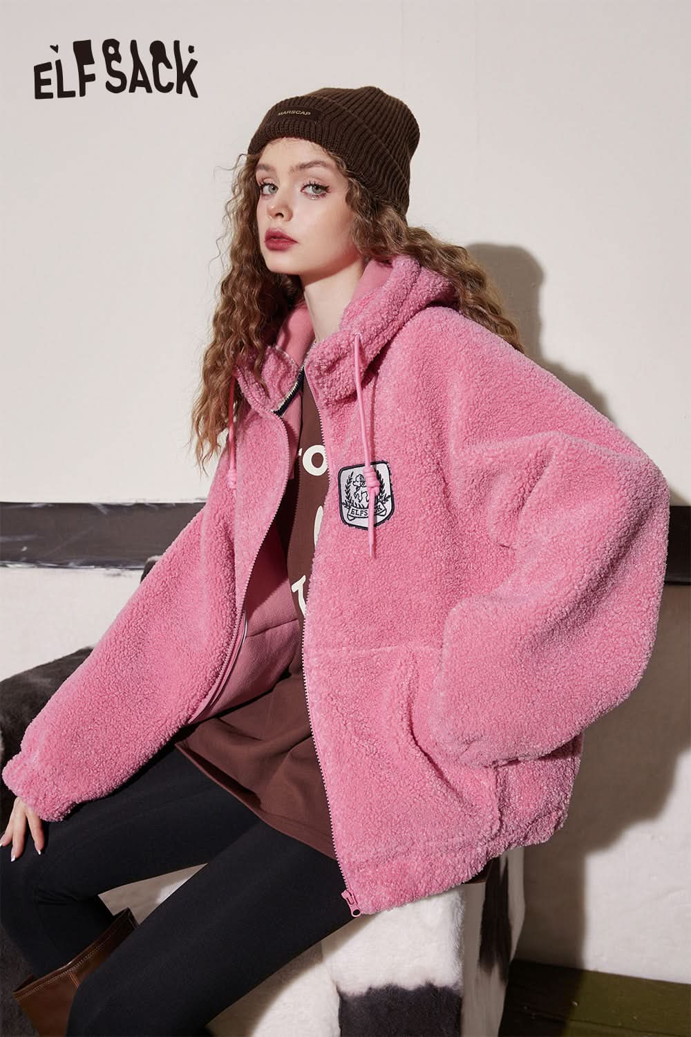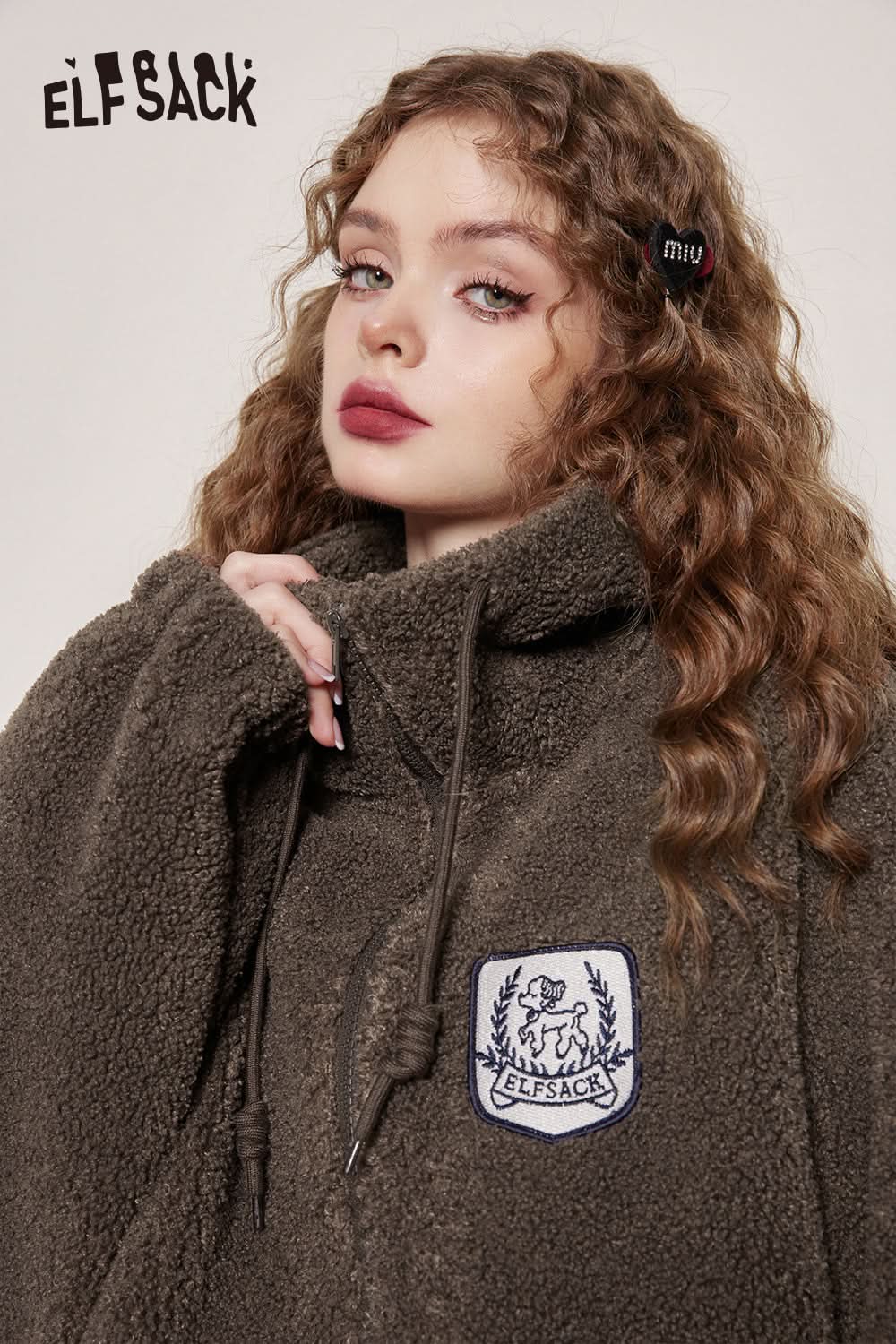Hoodies Fleece Cotton Coats Women Patch Dog Short Outwears