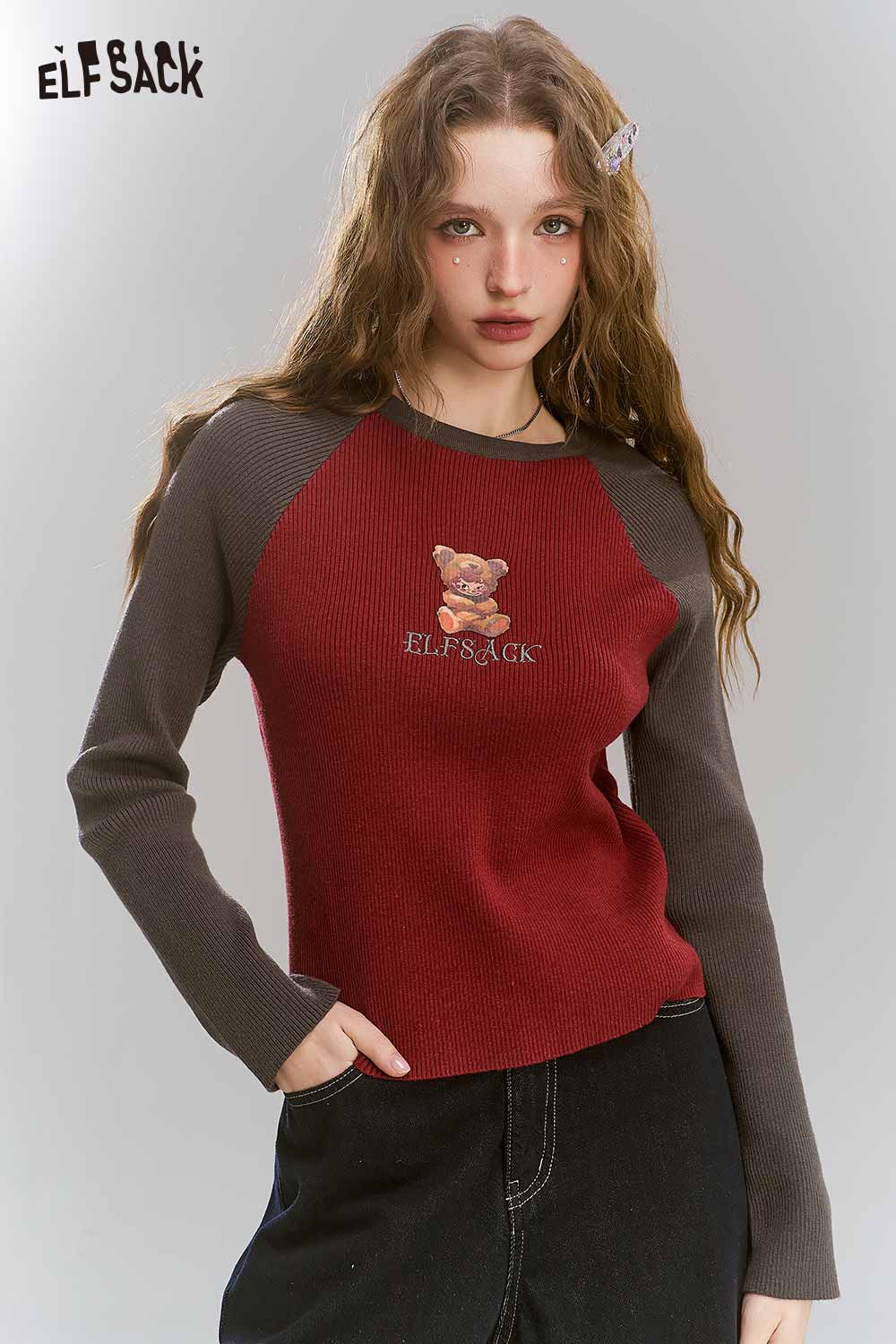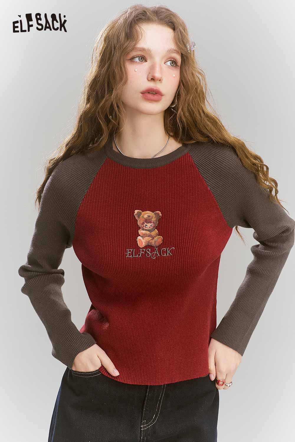 Angora Red Color Block Graphic Knit Slim Fit Base Layer