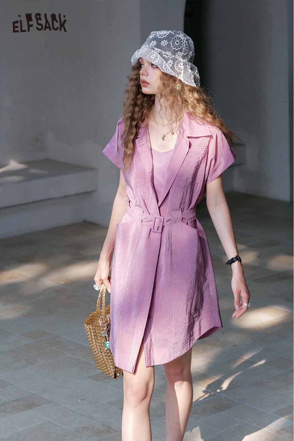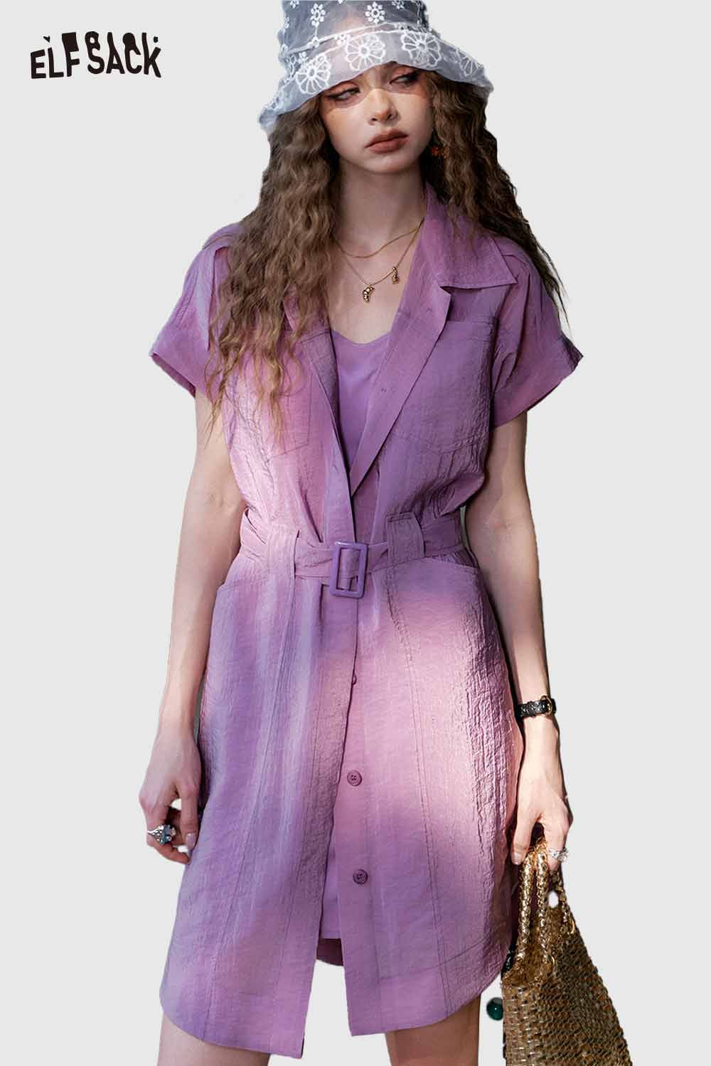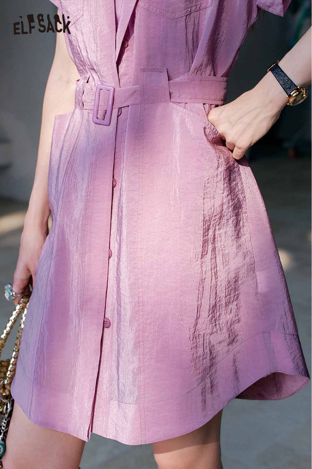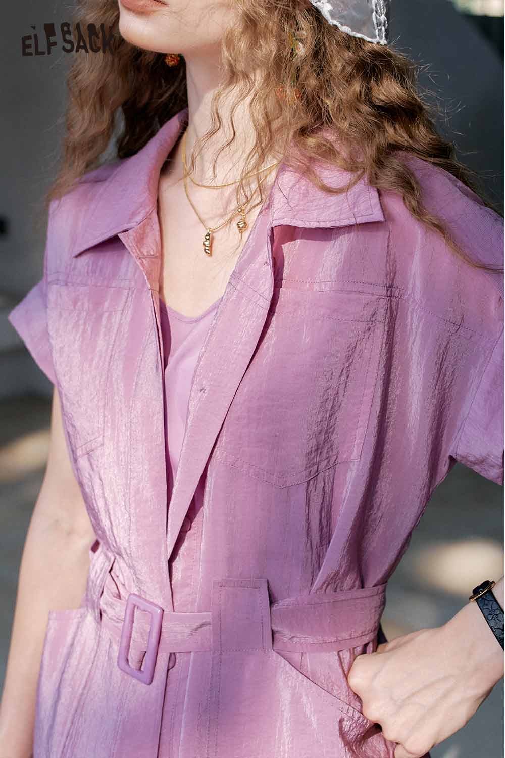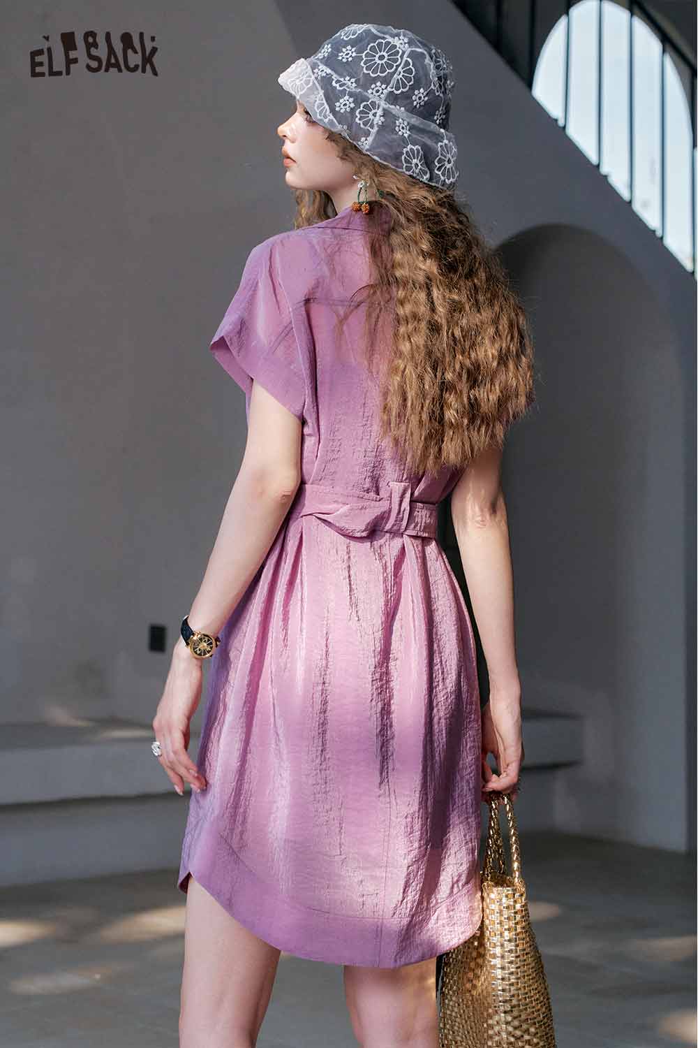 Cute Shirt Collar Short Sleeve Solid Utility Dress