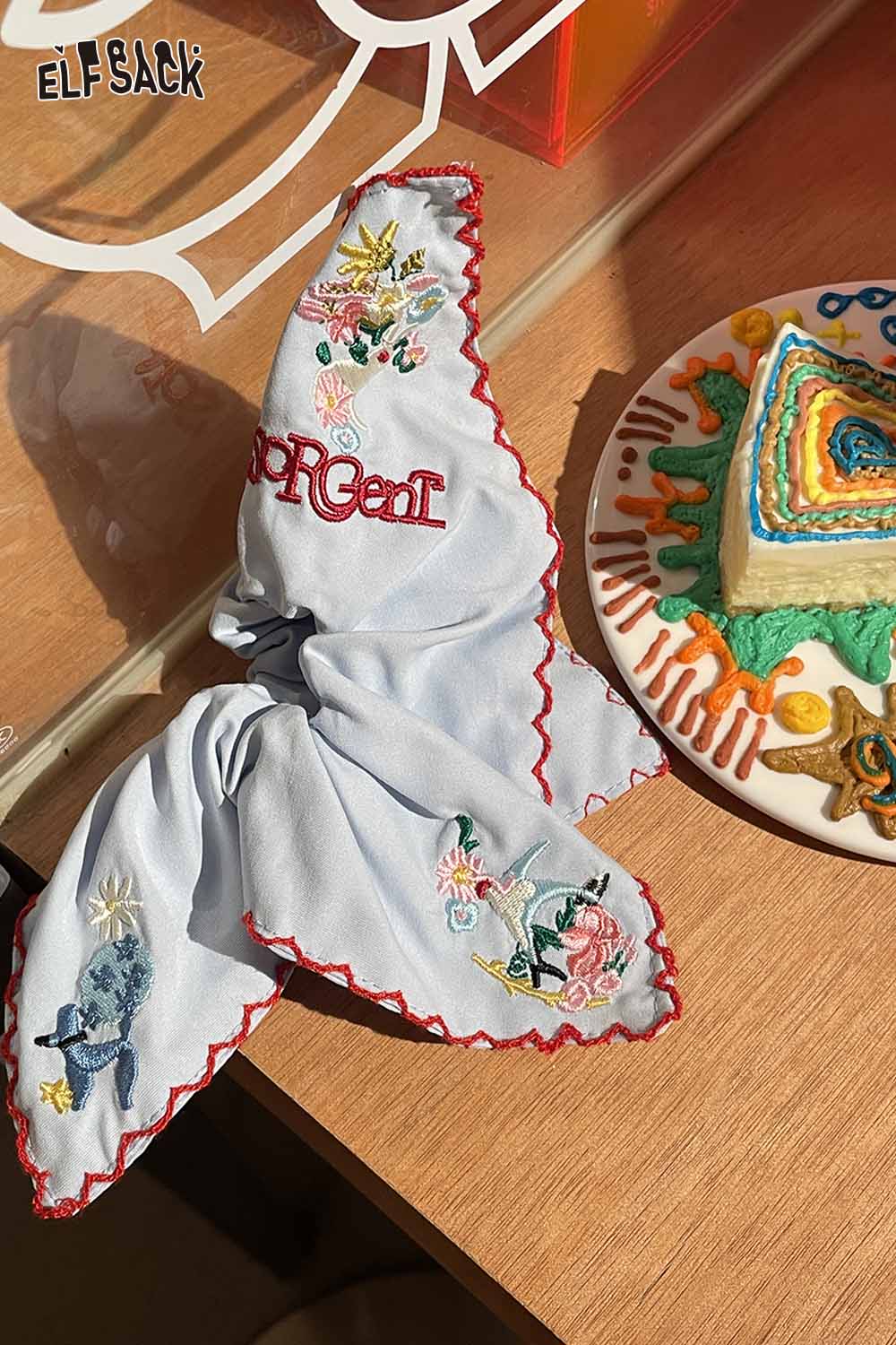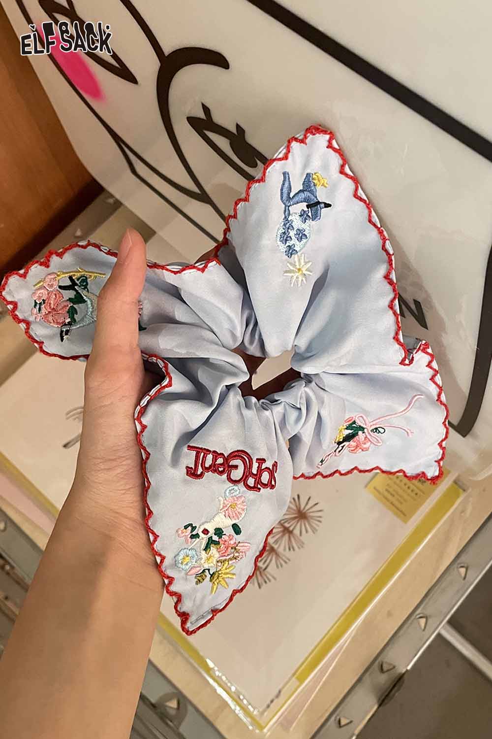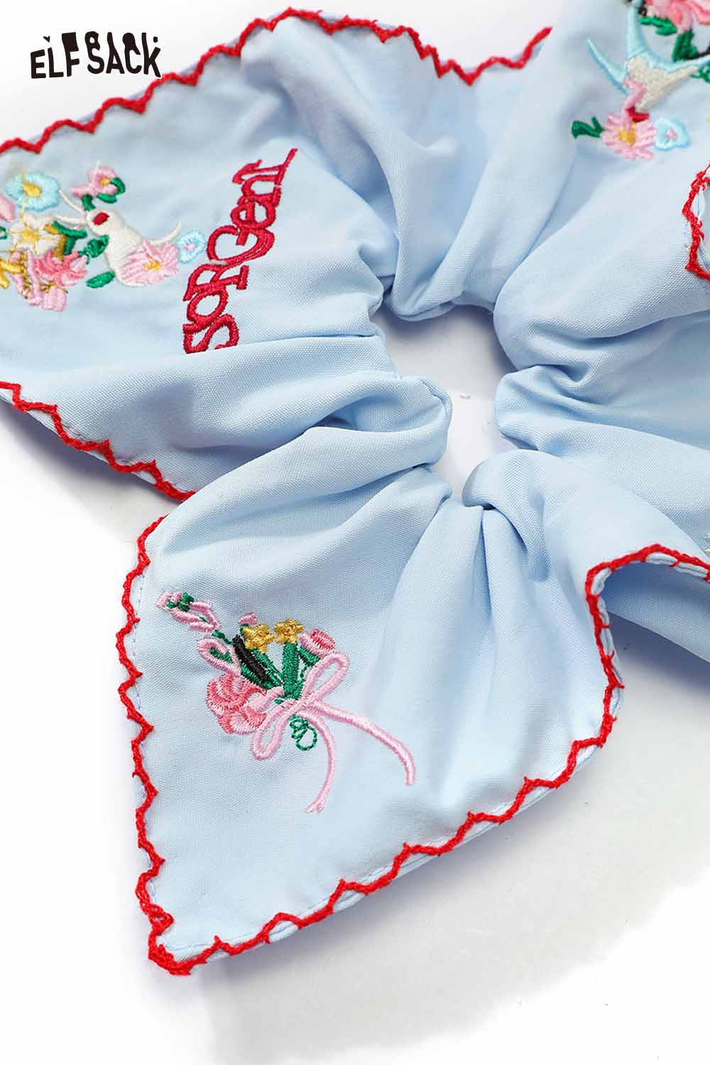 Embroidered Floral Cotton Scrunchies