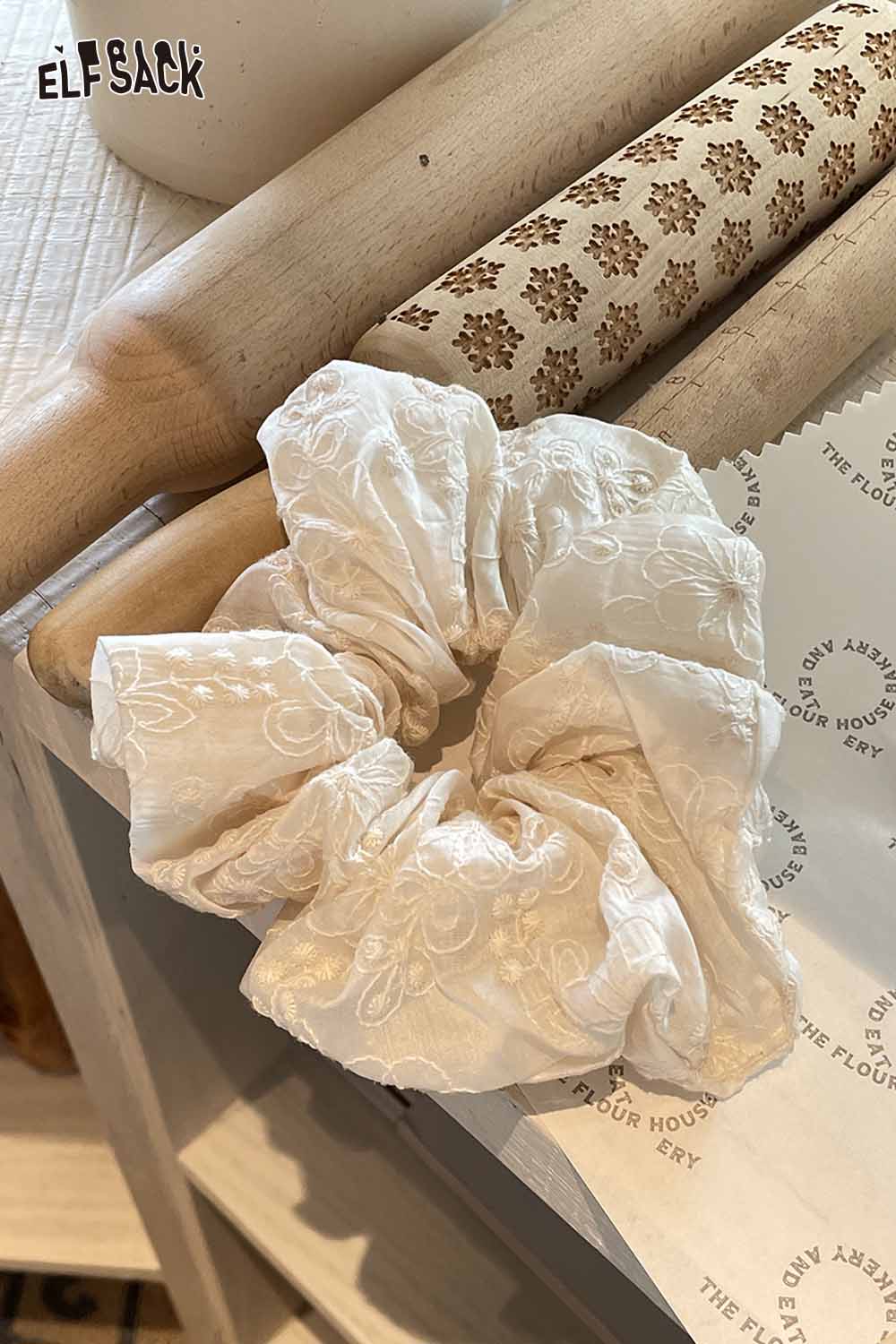 Embroidered Twill Scrunchies