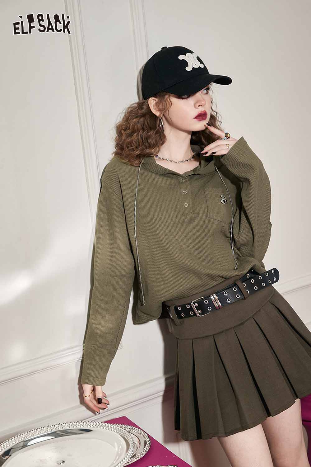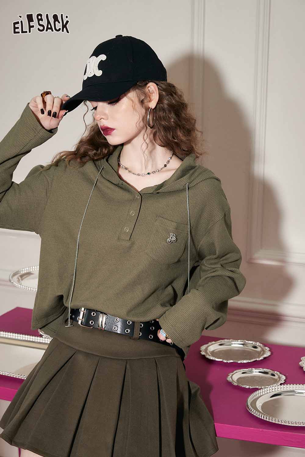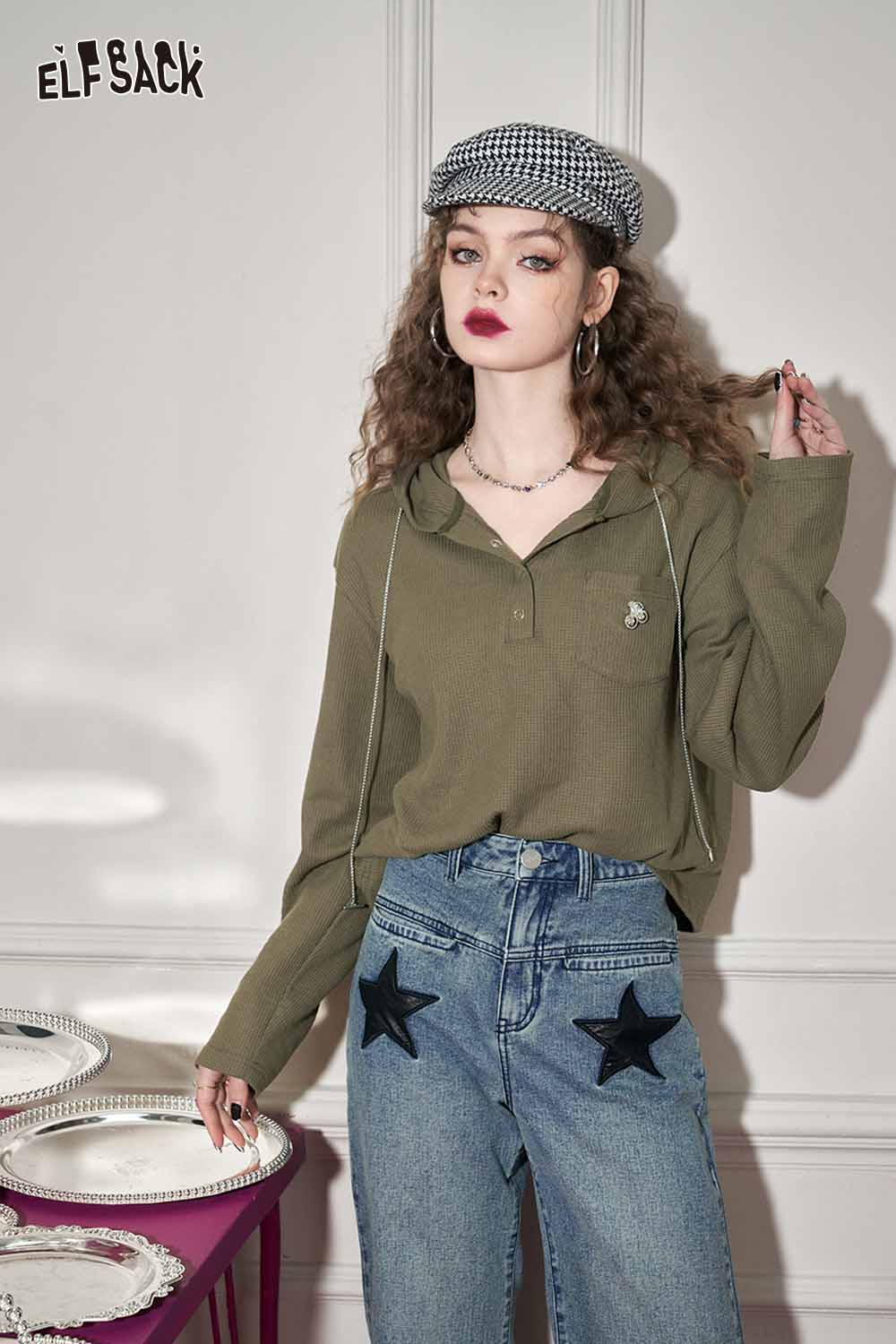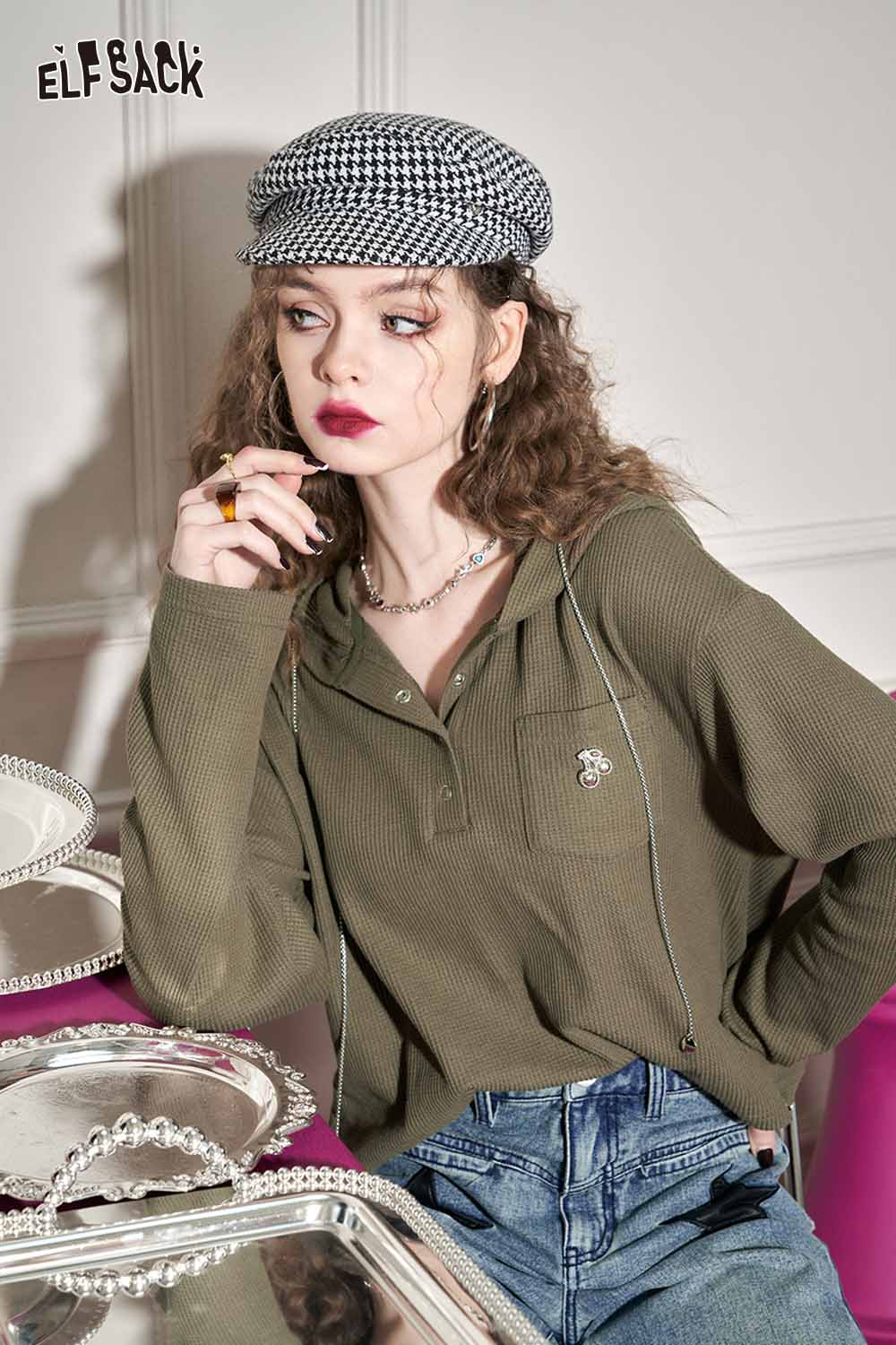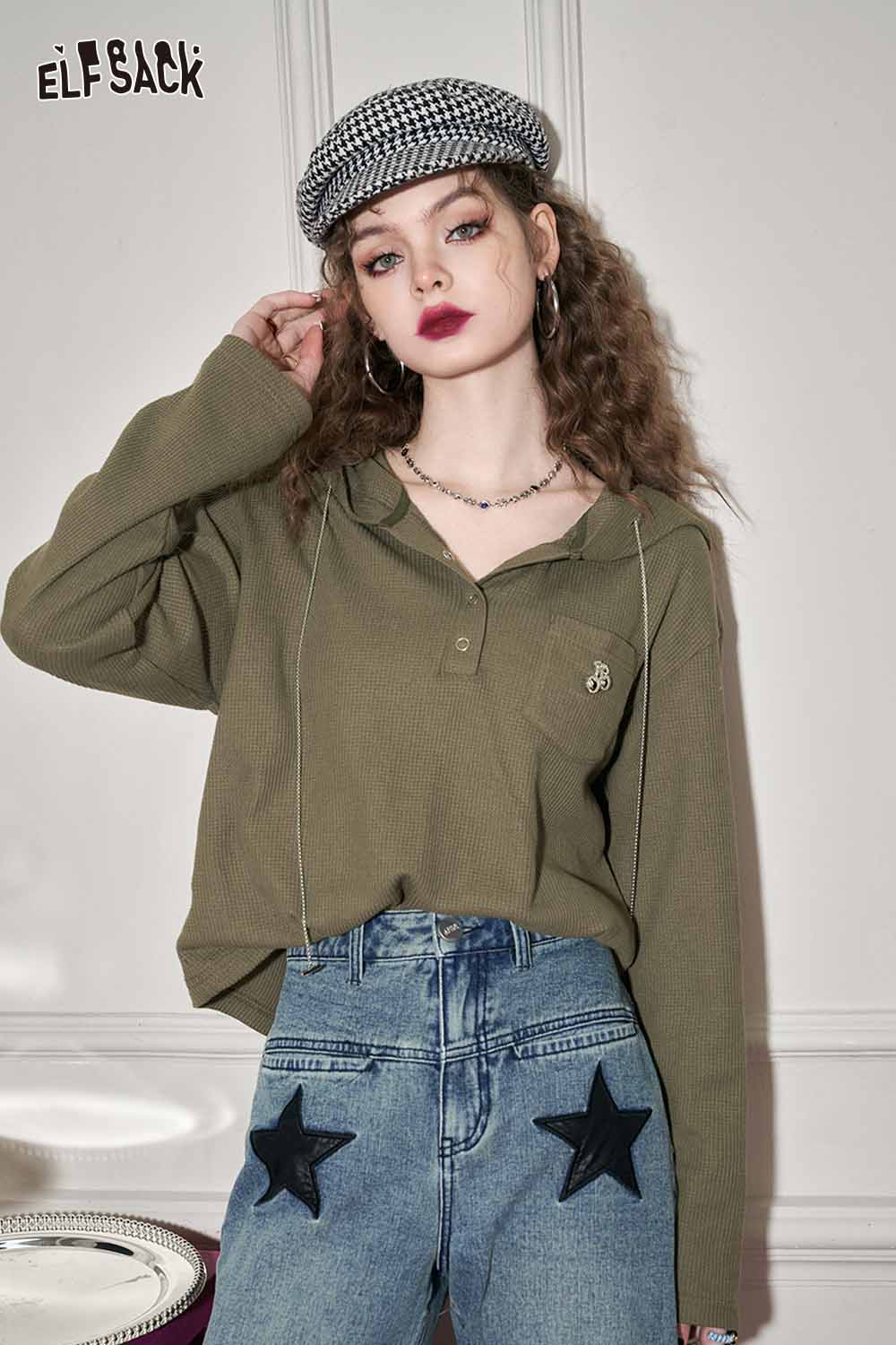 Loose Layered Vintage Solid Hooded Long Sleeve Tshirt