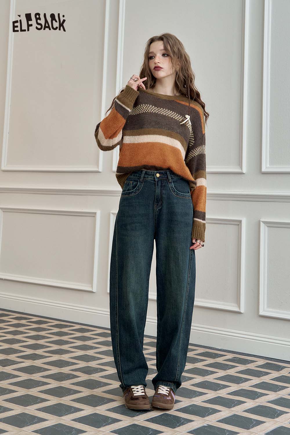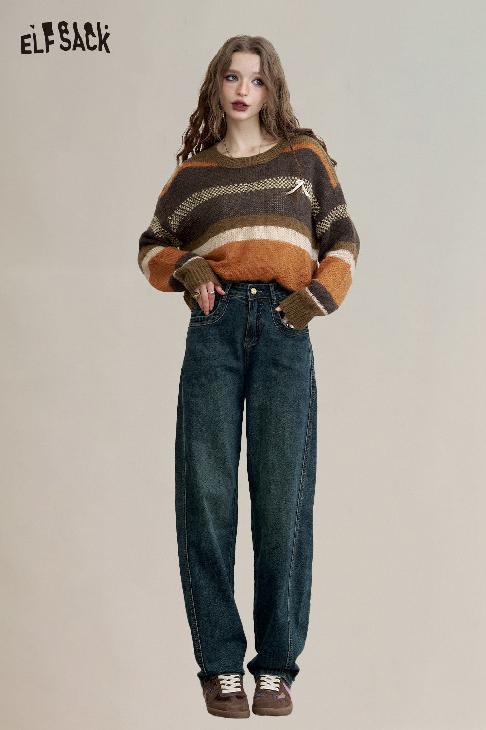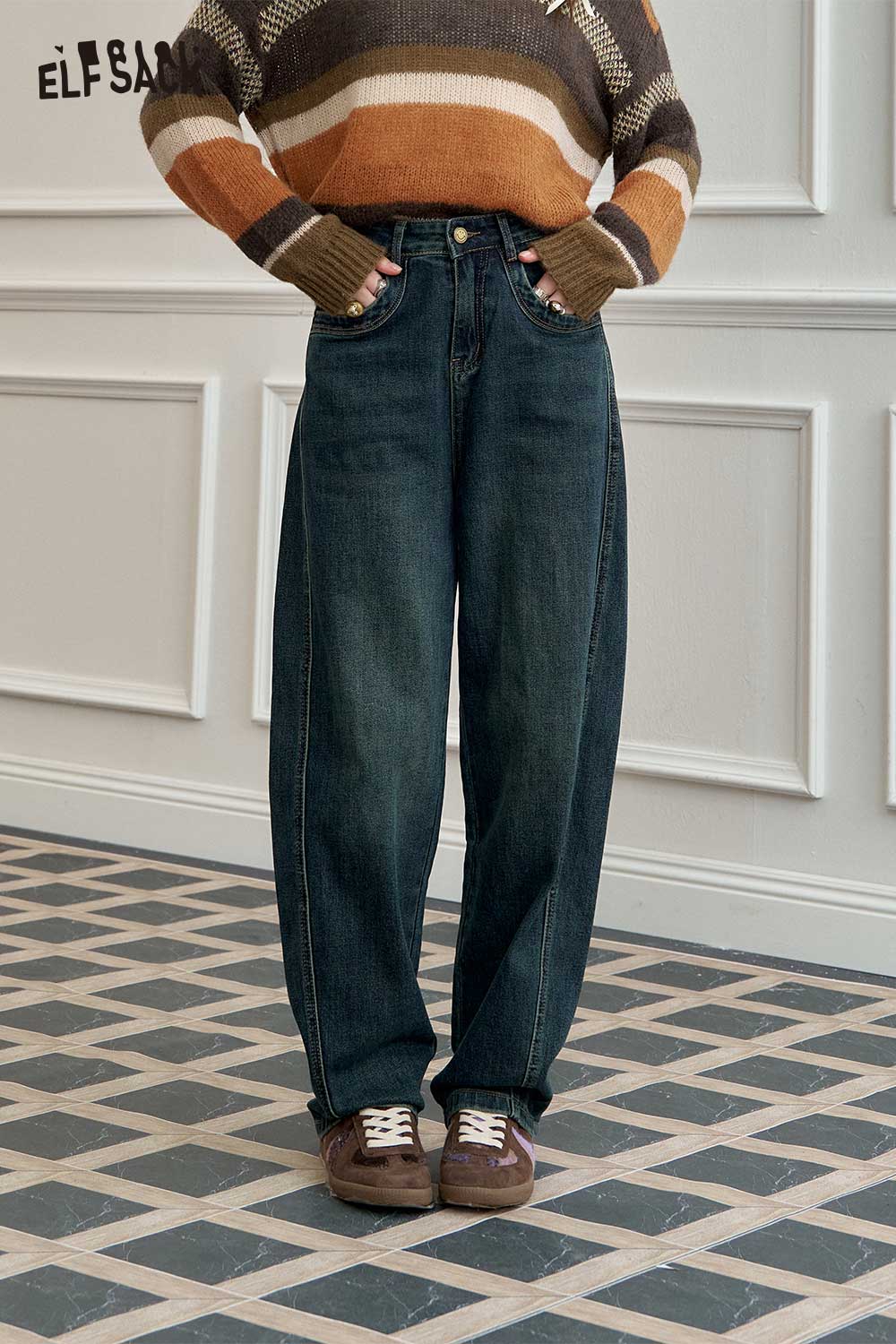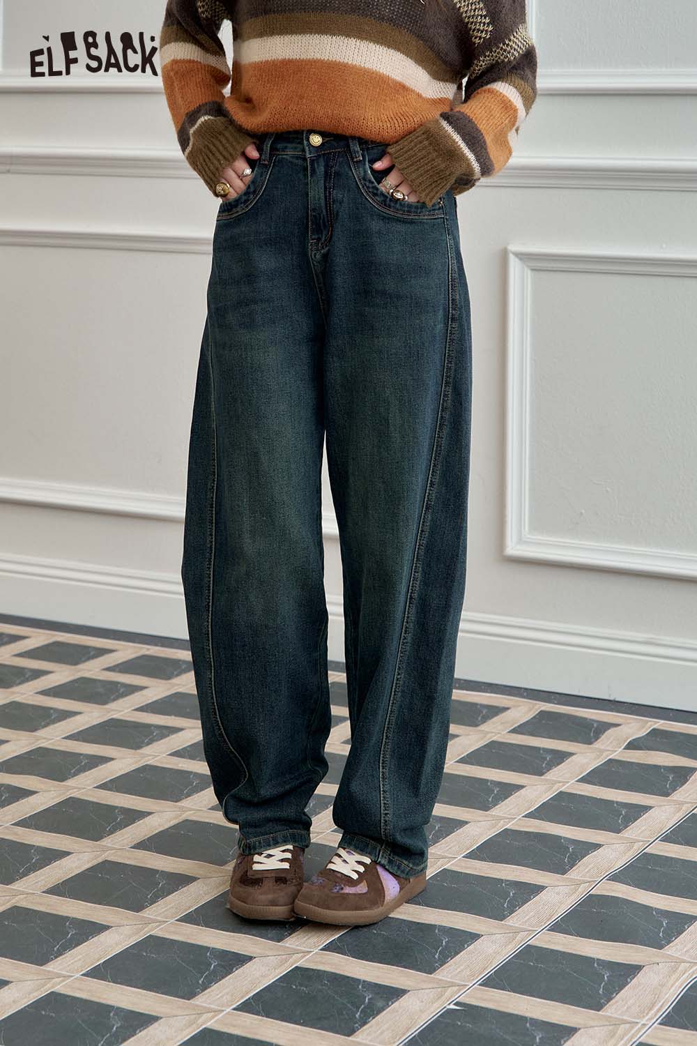 Loose Straight Wide Leg Curved Hem Slimming Jeans