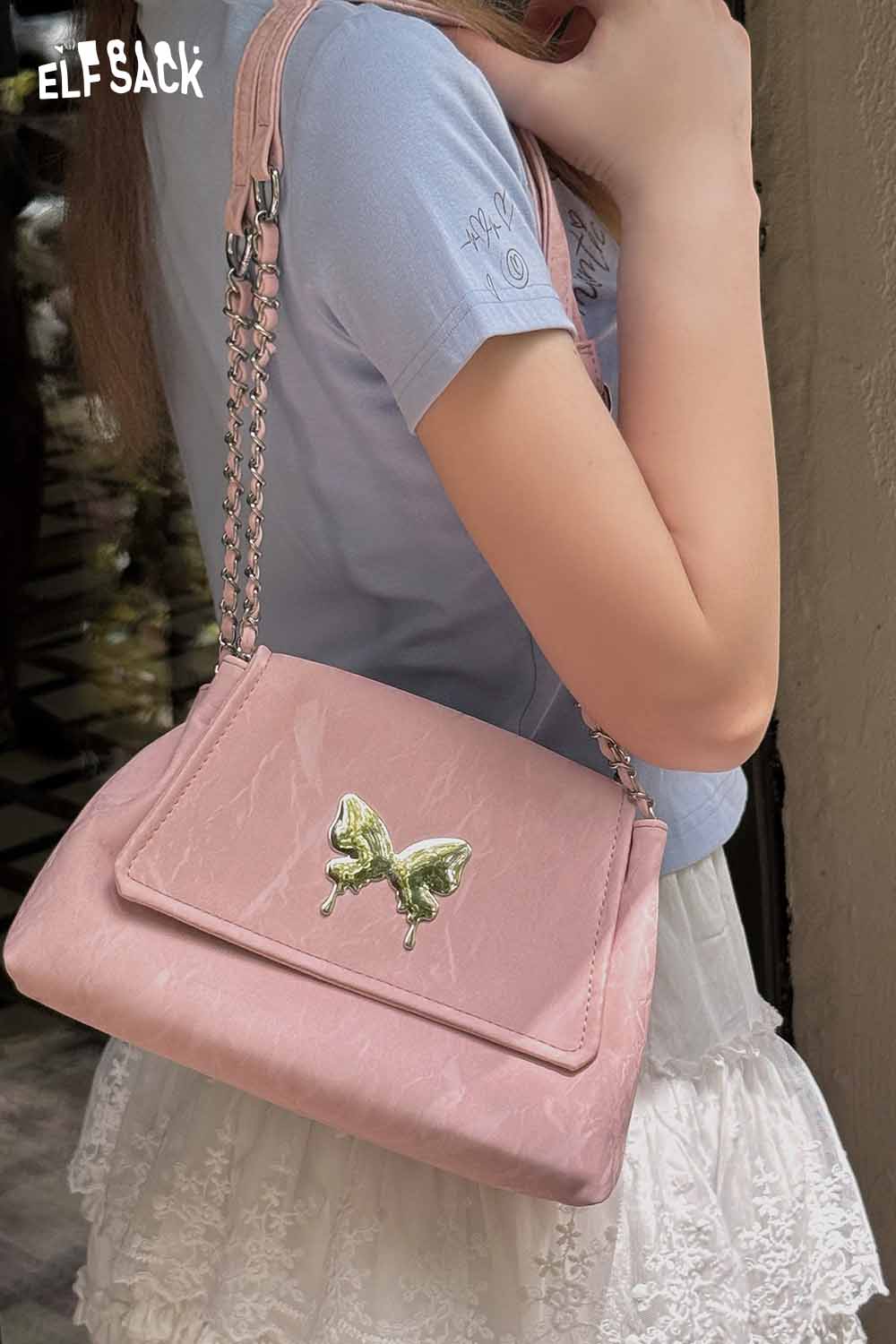 Metal Butterfly Leather Chain Strap Sweet Shoulder Bag