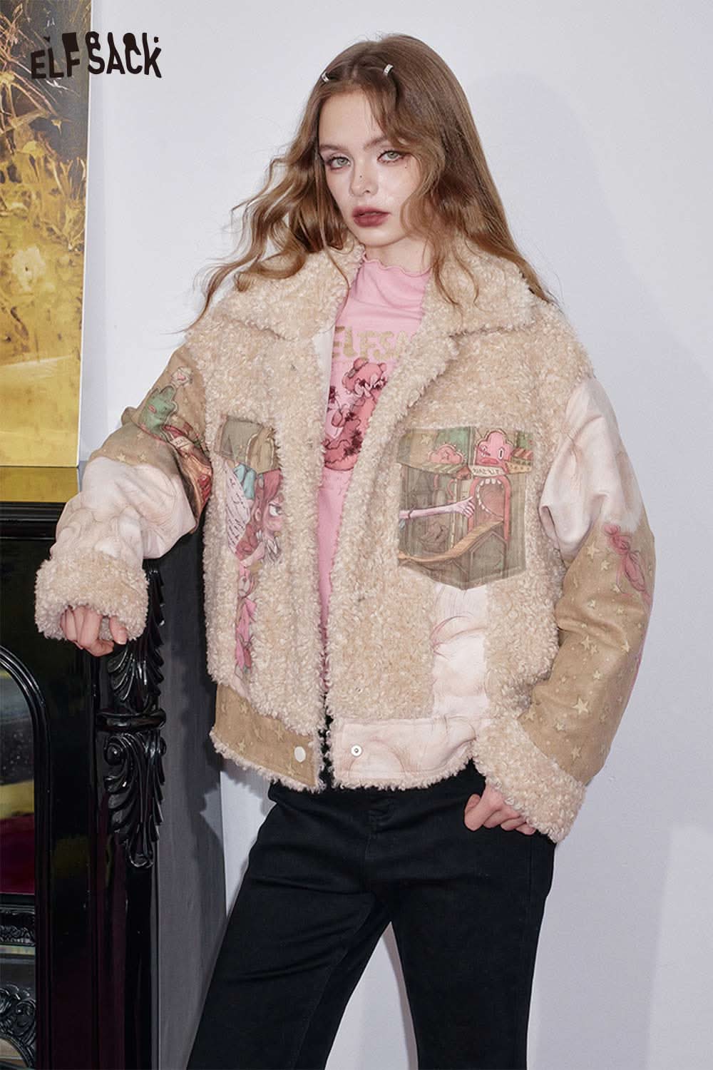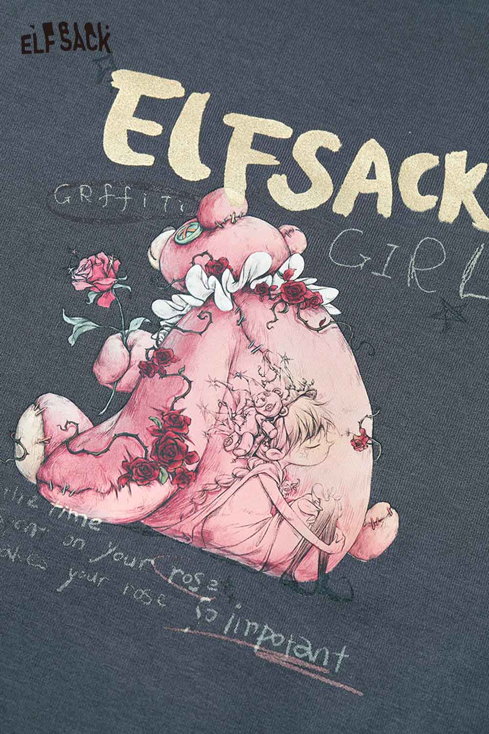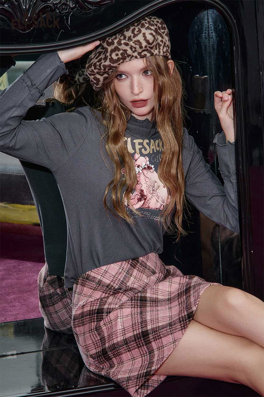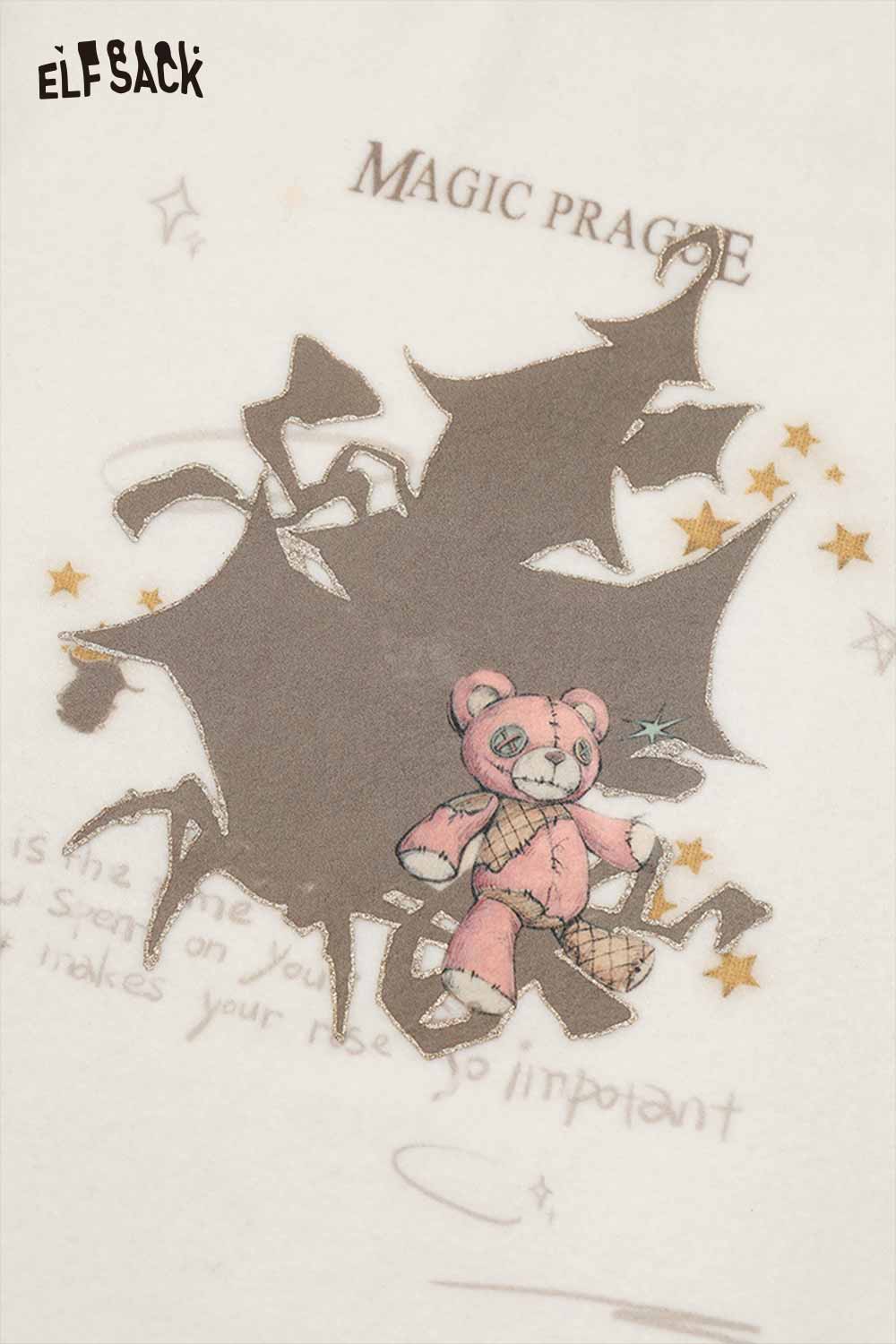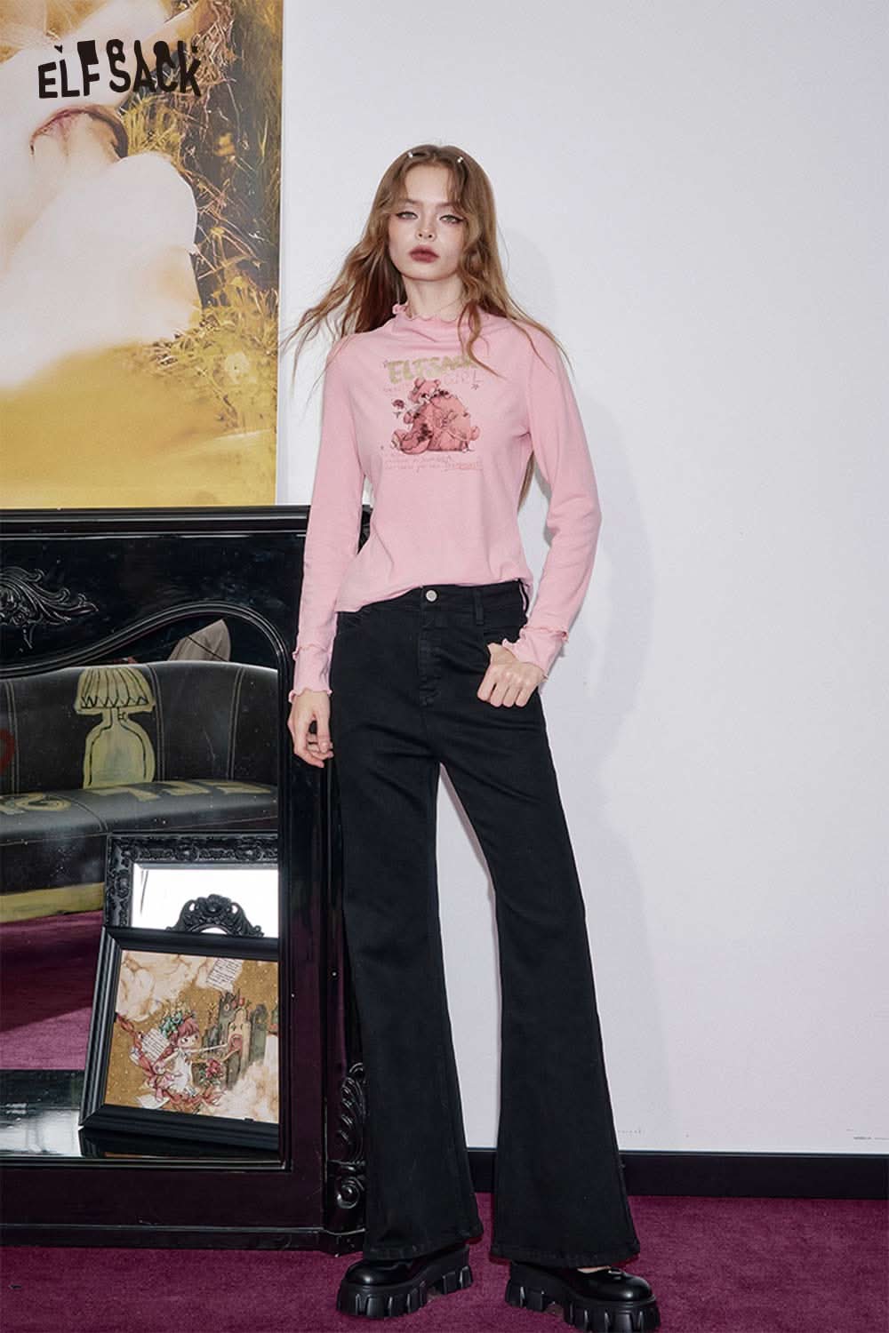 Soft Cartoon Graphic Ruffle Trim Neckline Long Sleeve Top
