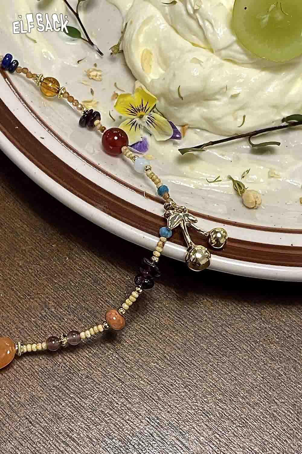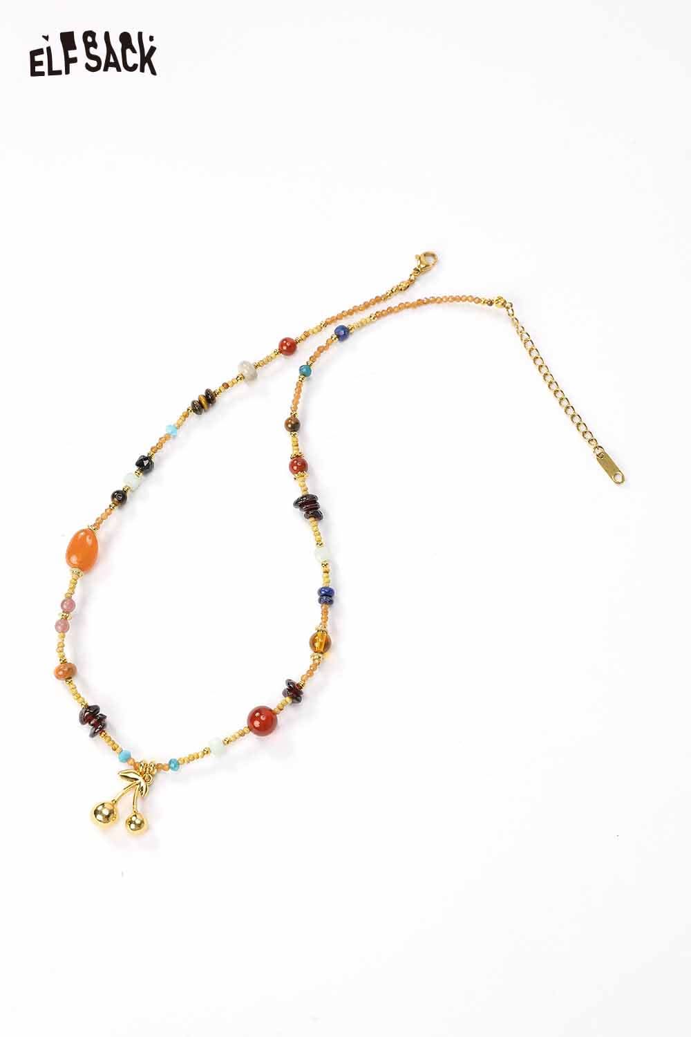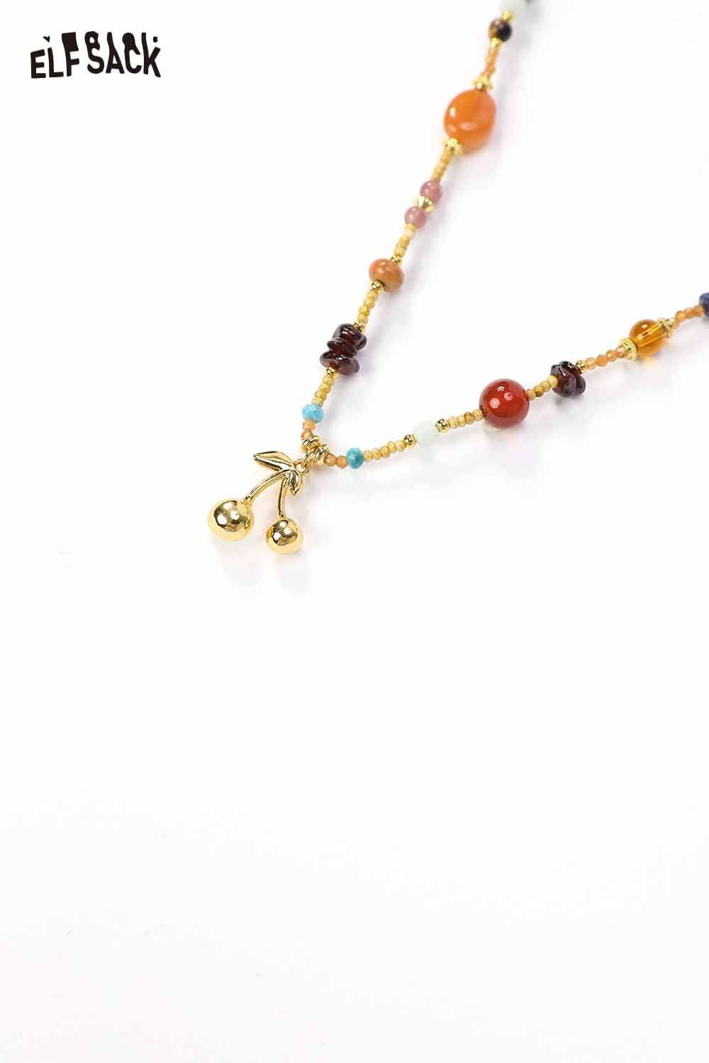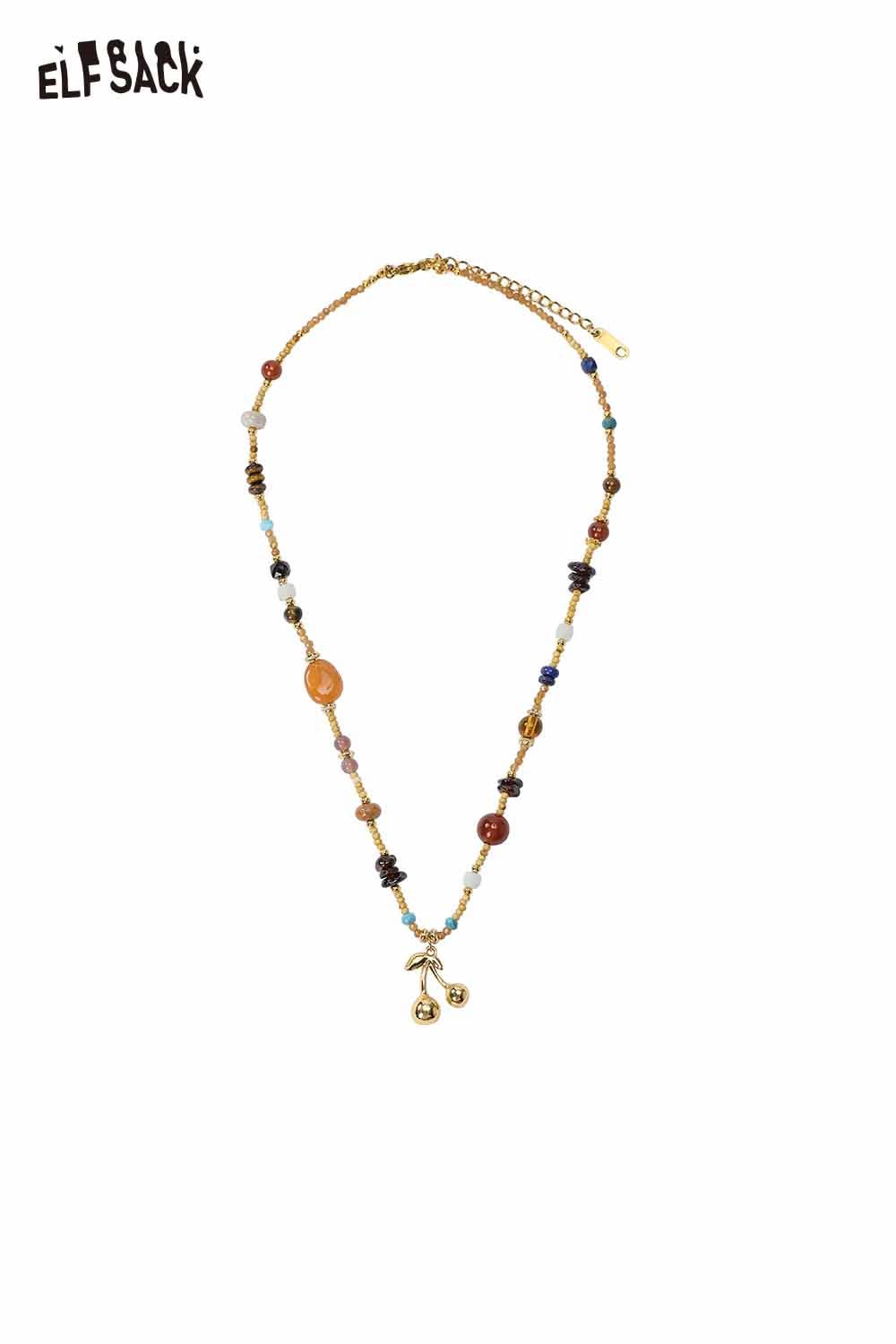 Handstrung Natural Stone Beads Bohemian Cherry Charm Statement Necklace