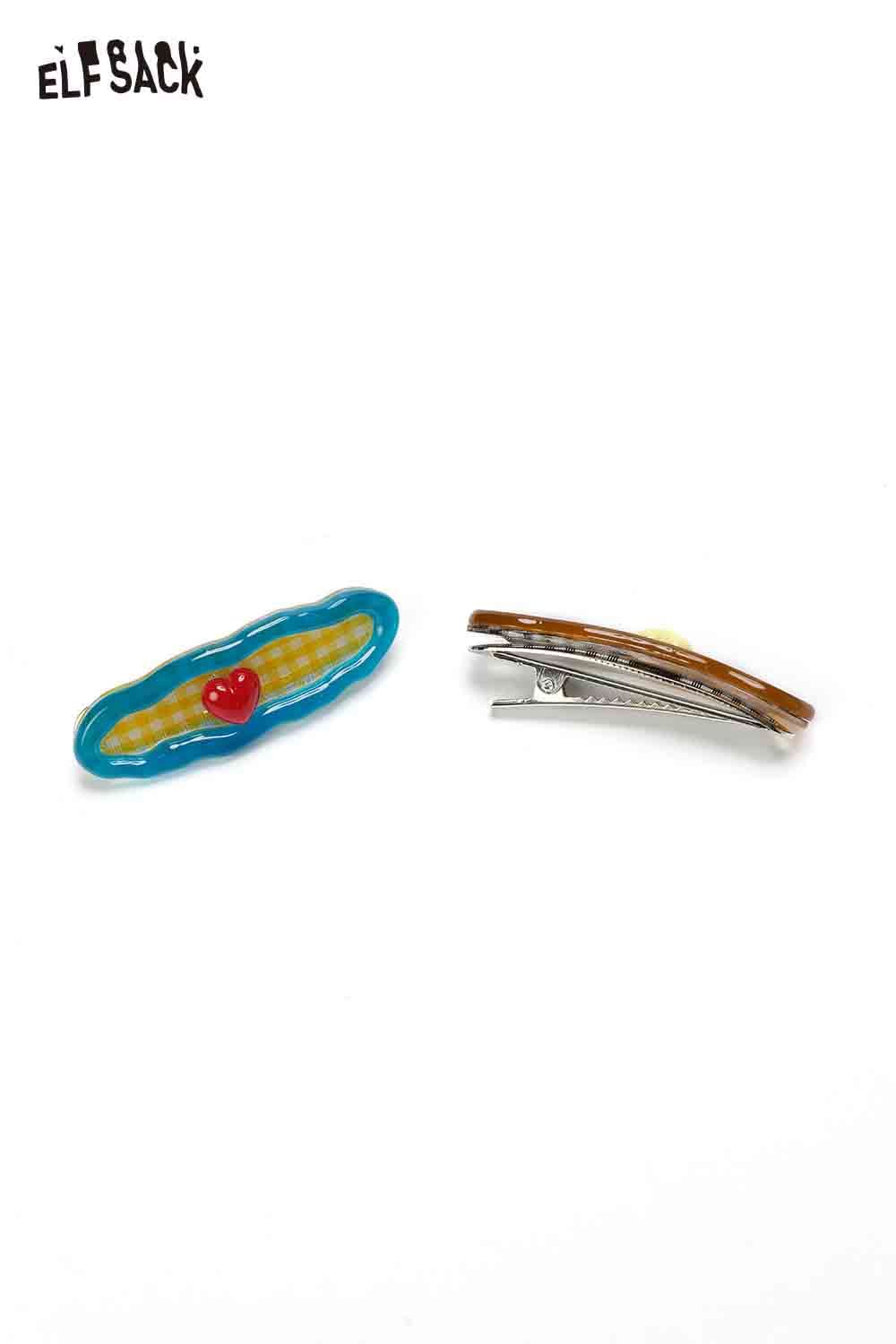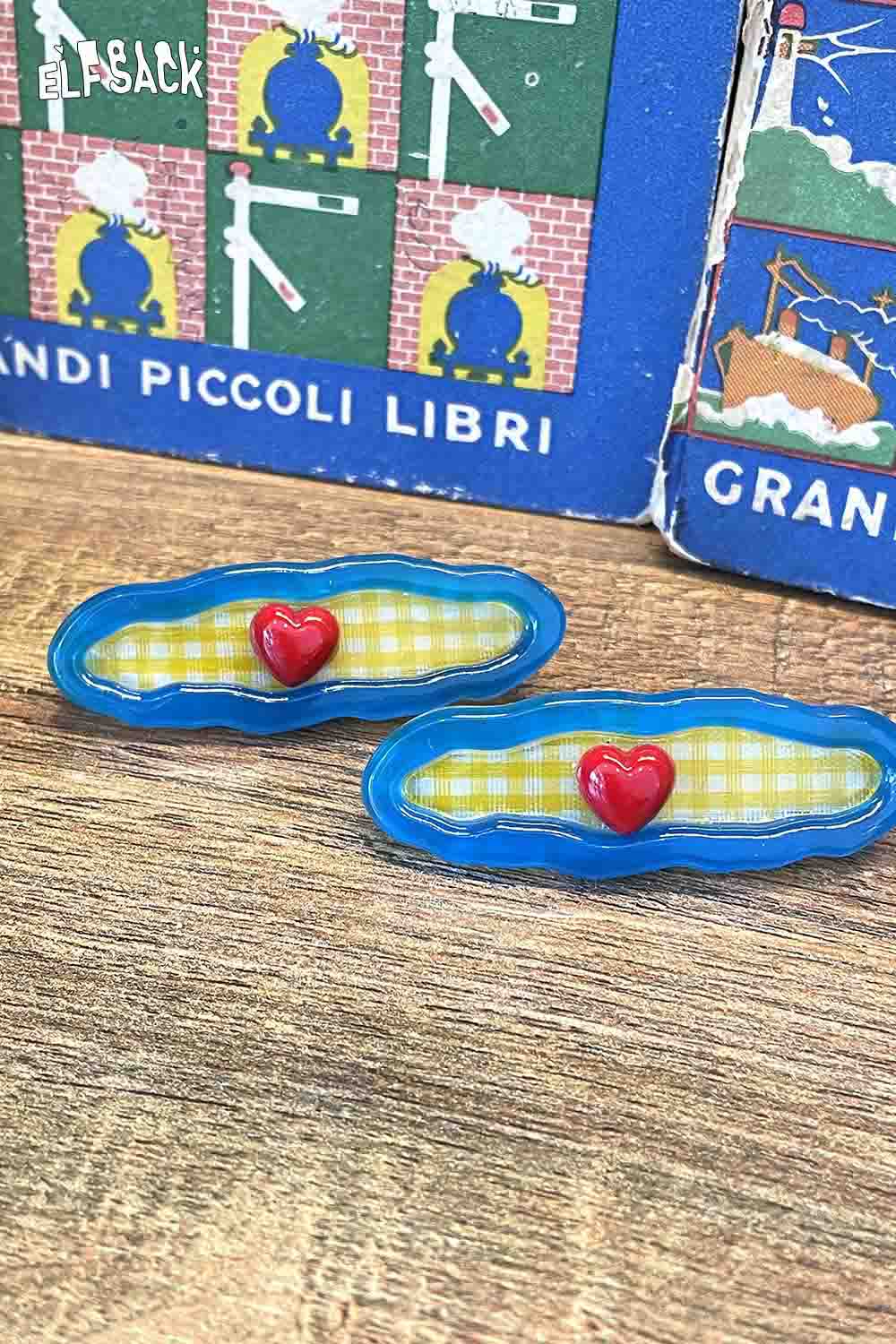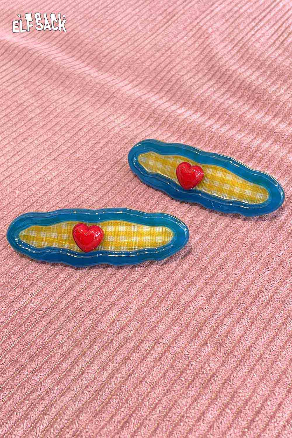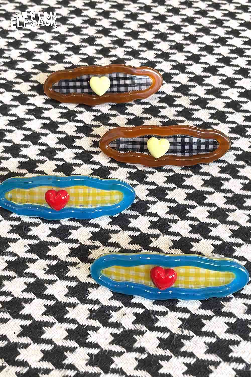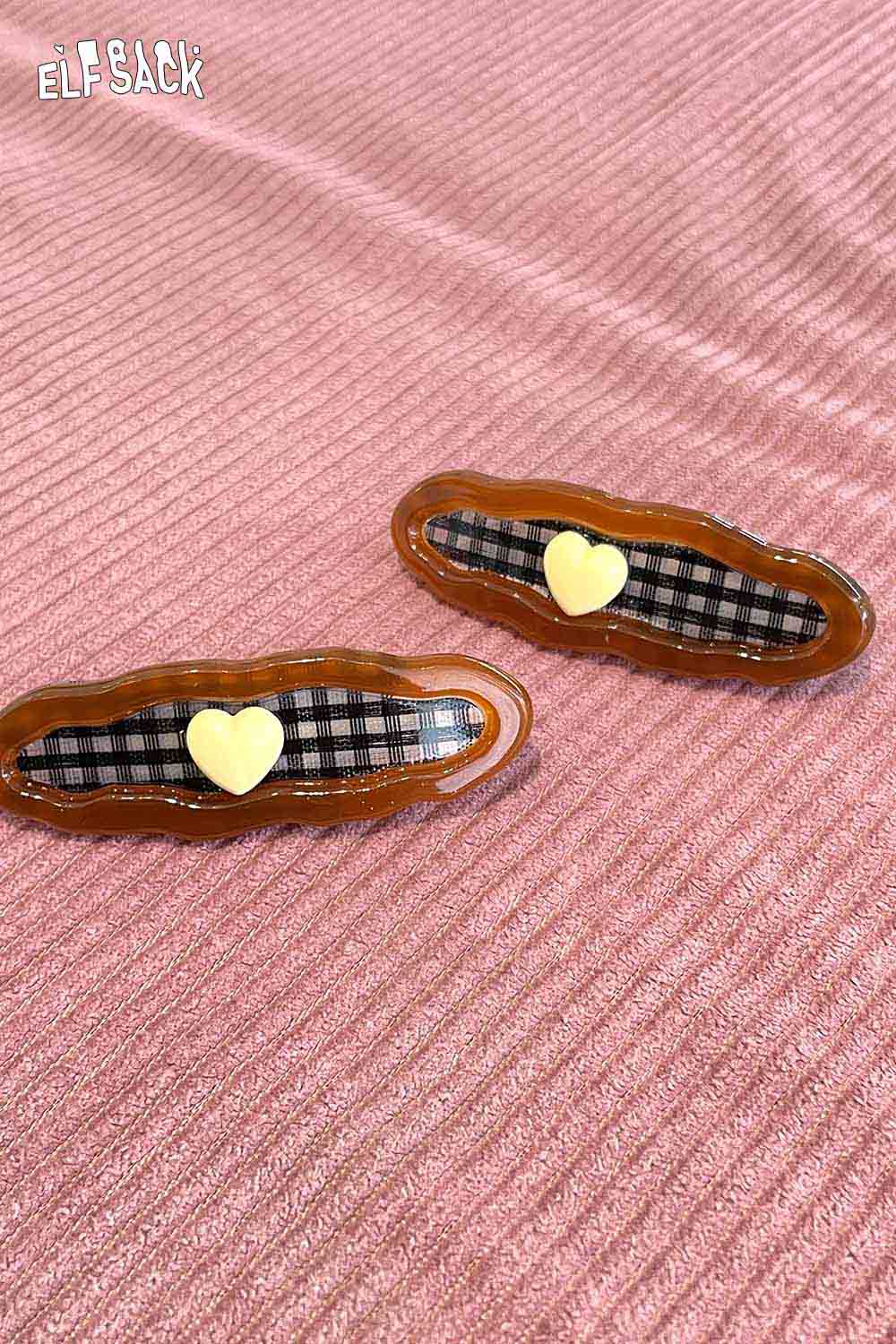 Resin Hair Clip Contrast Checkered Pattern Heart Shape Snap Closure
