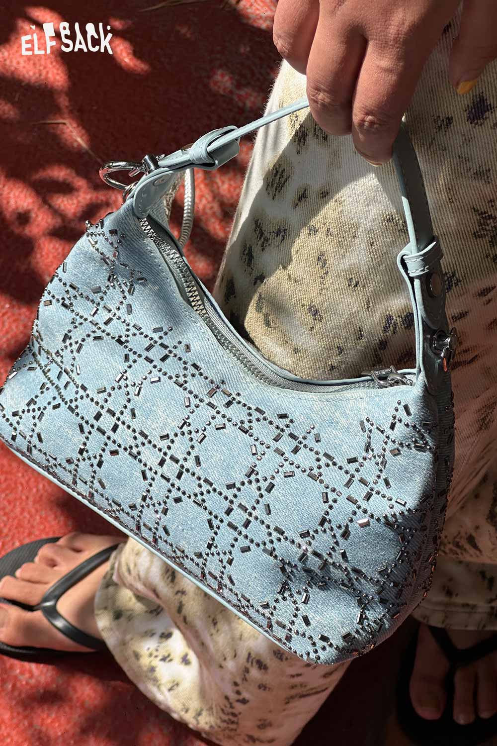 Glitter Washed Denim Structured Mini Top Shoulder Bag