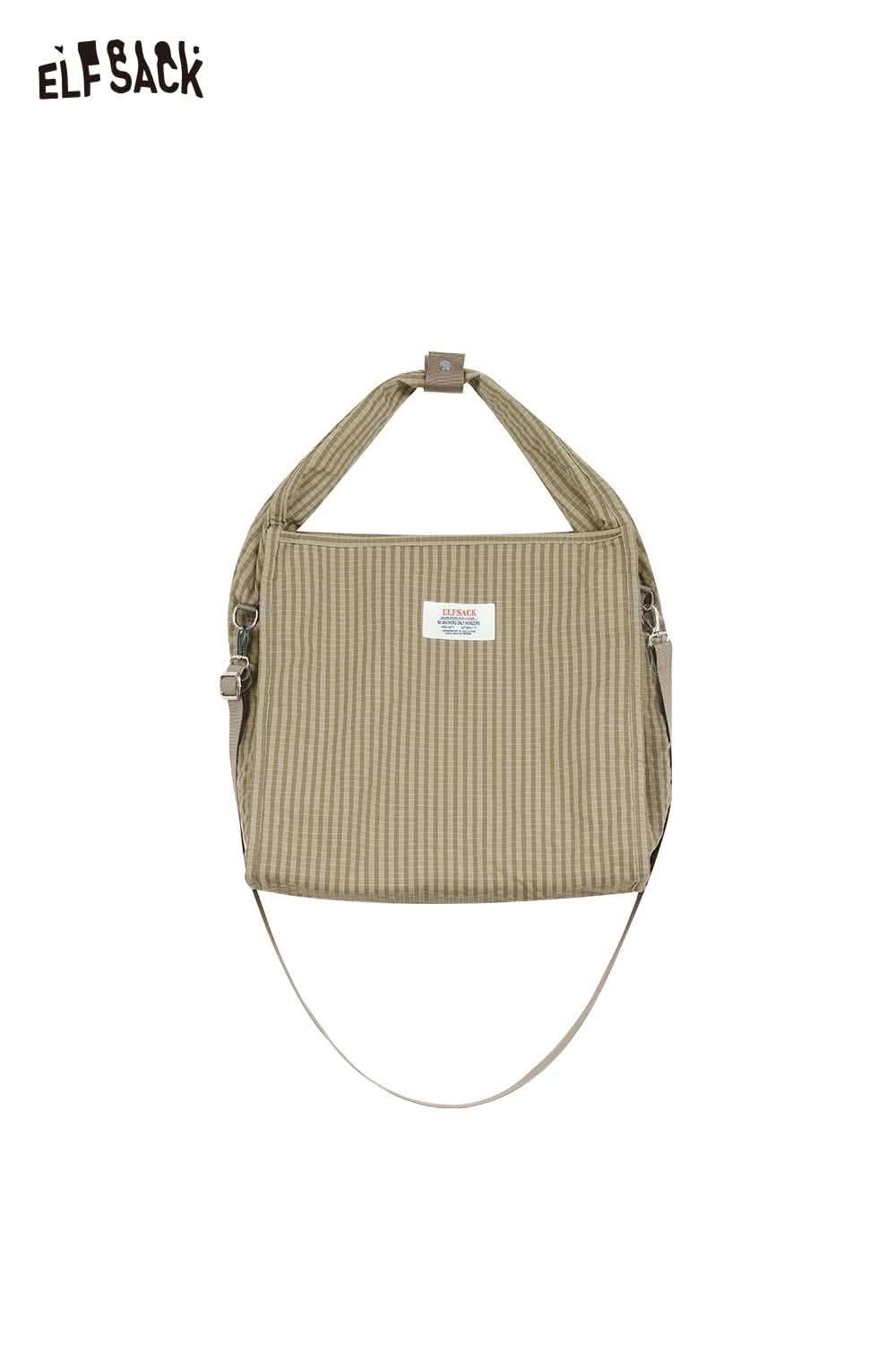 Oversized Checkered Shoulder Bag Structured Nylon Tote with Adjustable Strap for Daily Use