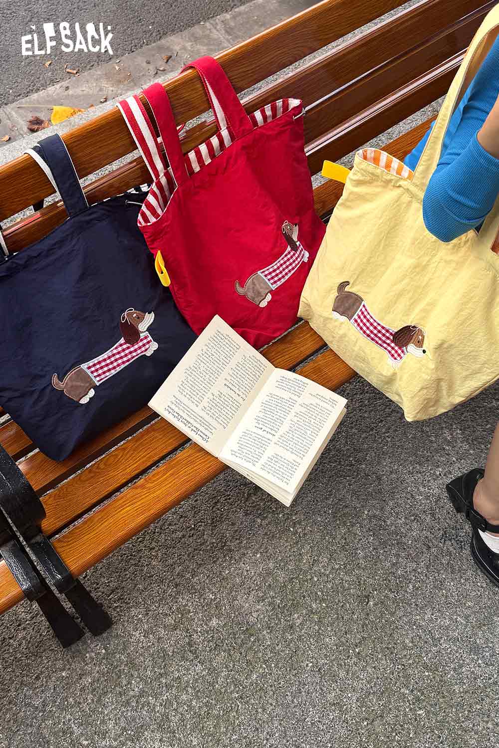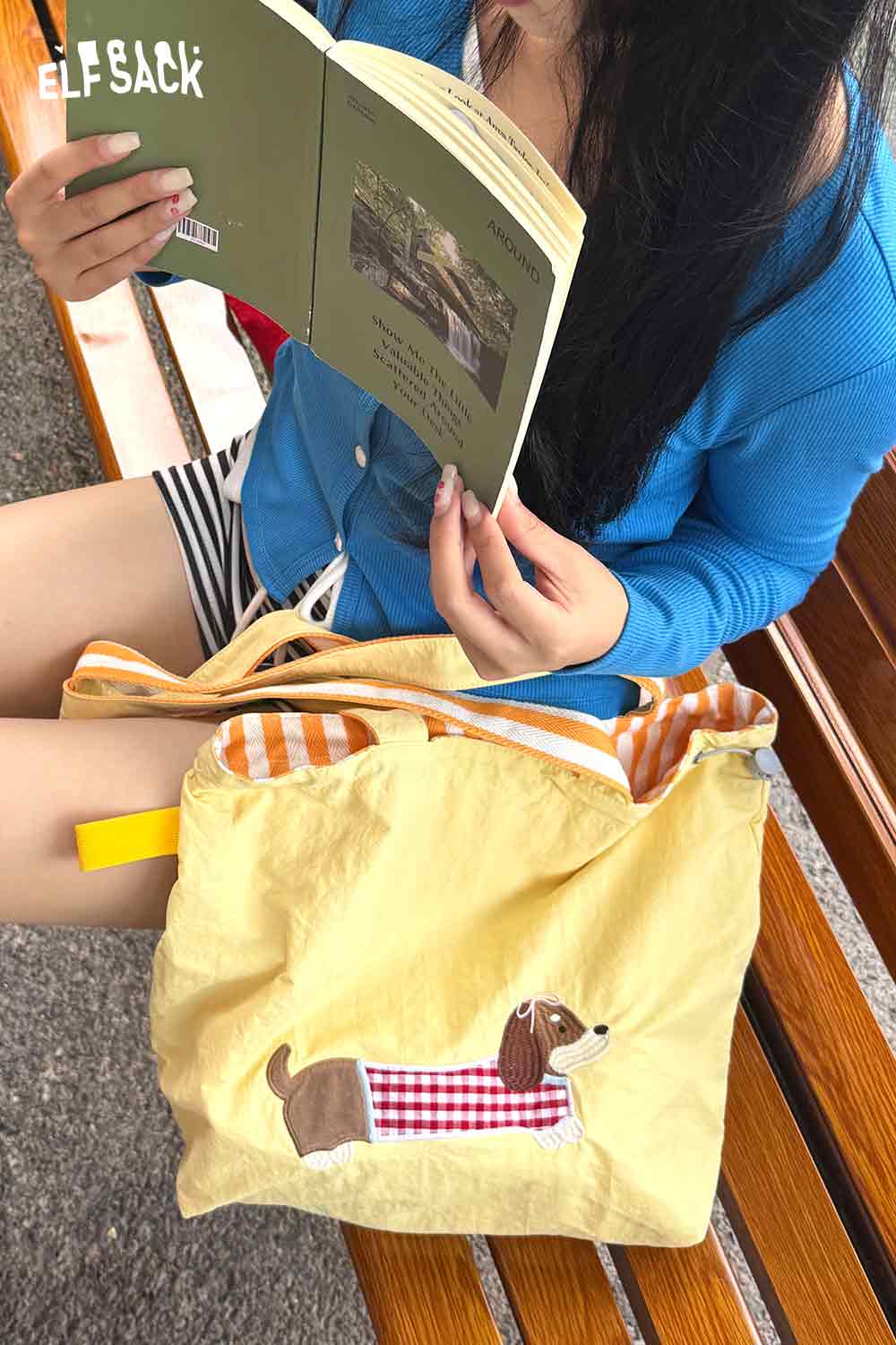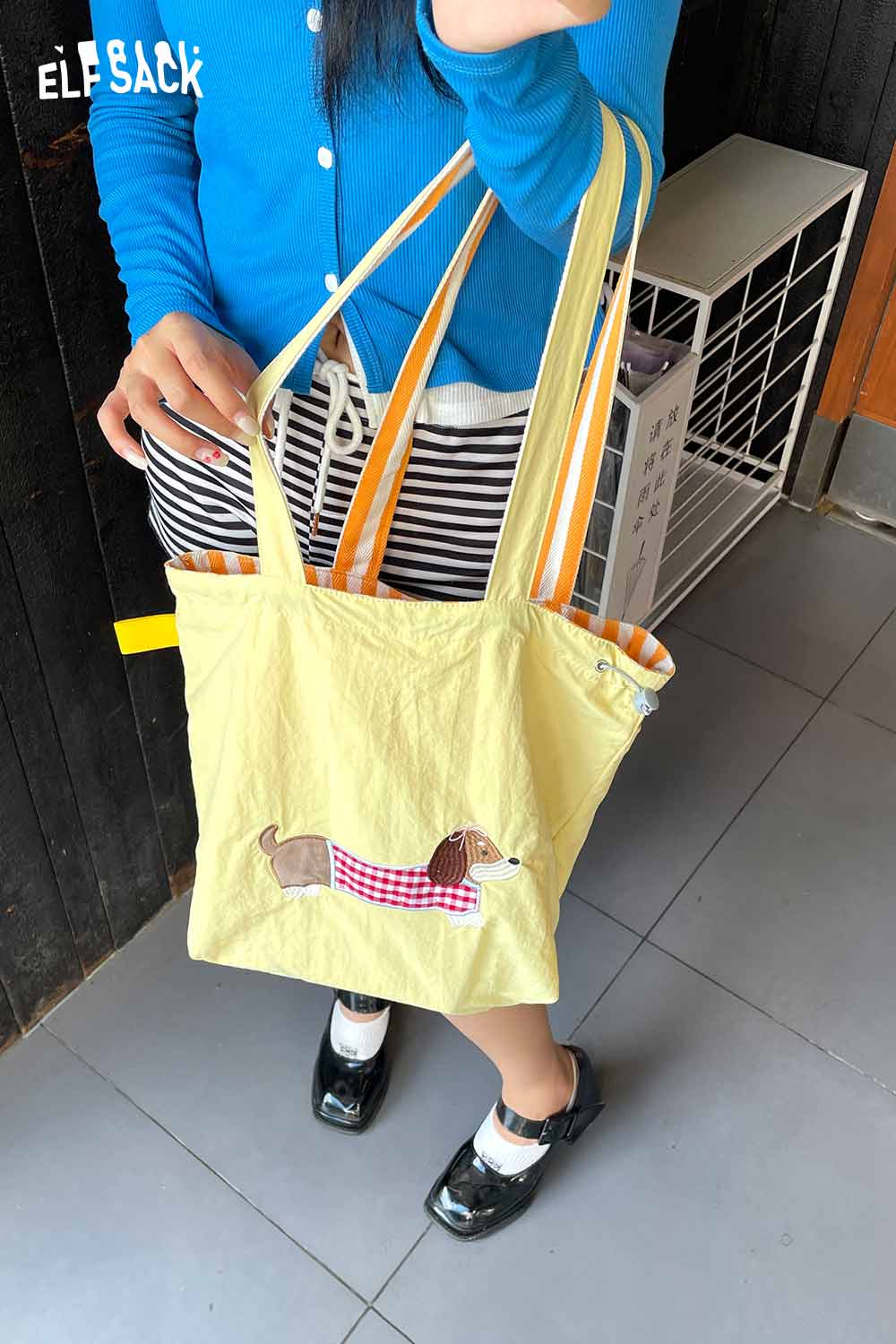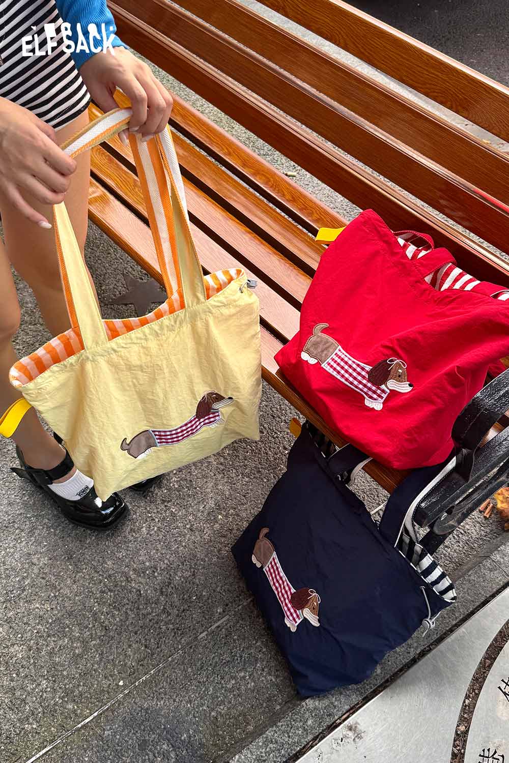 Soft Dachshund Pattern Color Block Cute Large Tote Bag