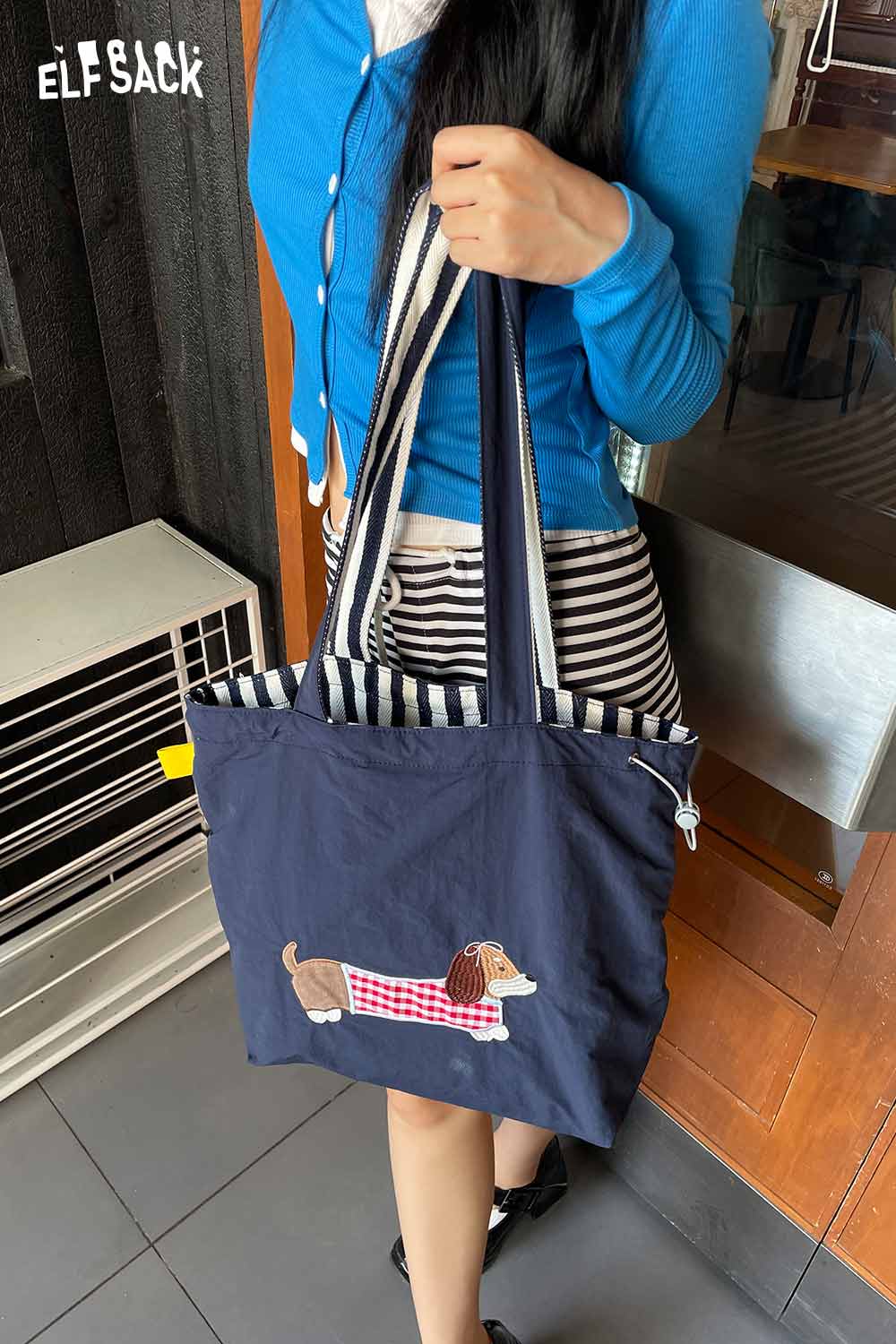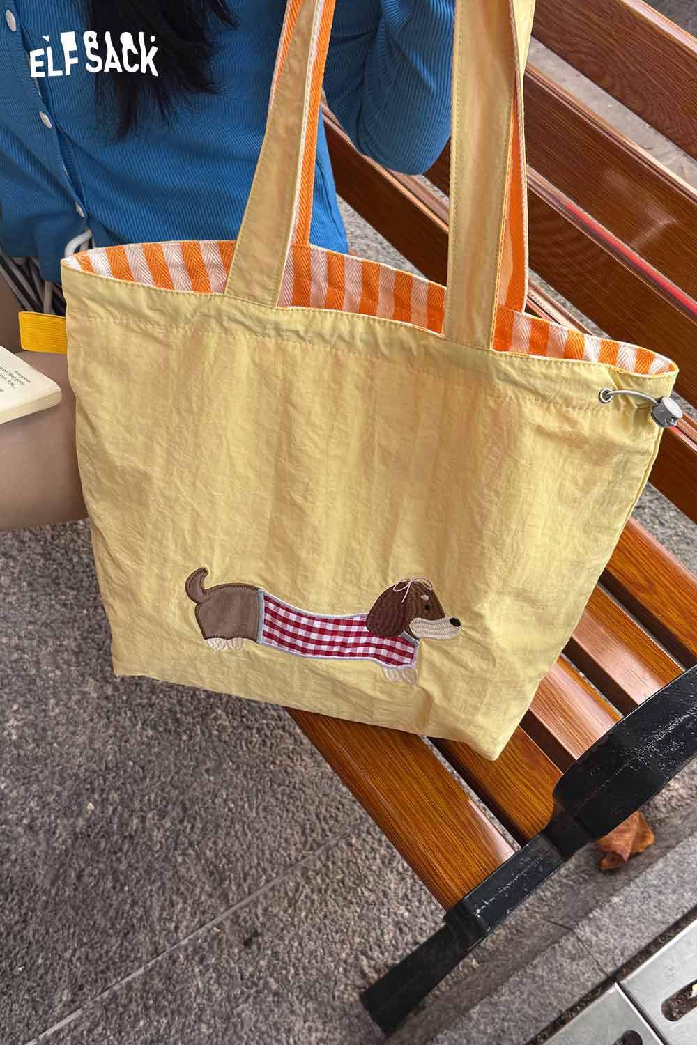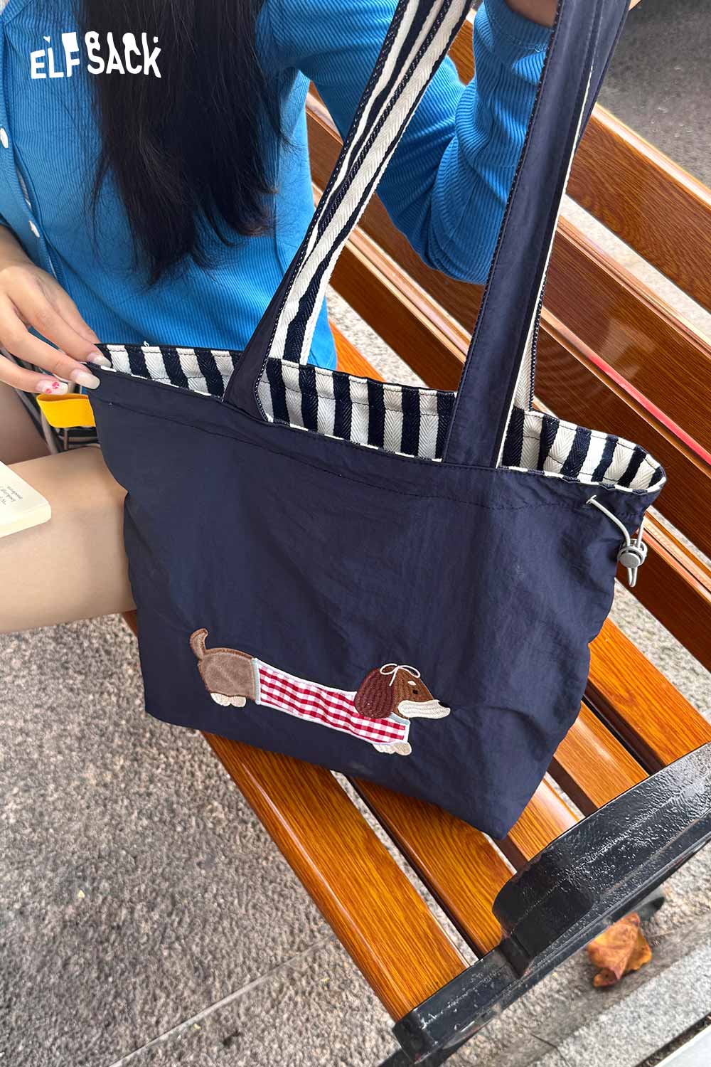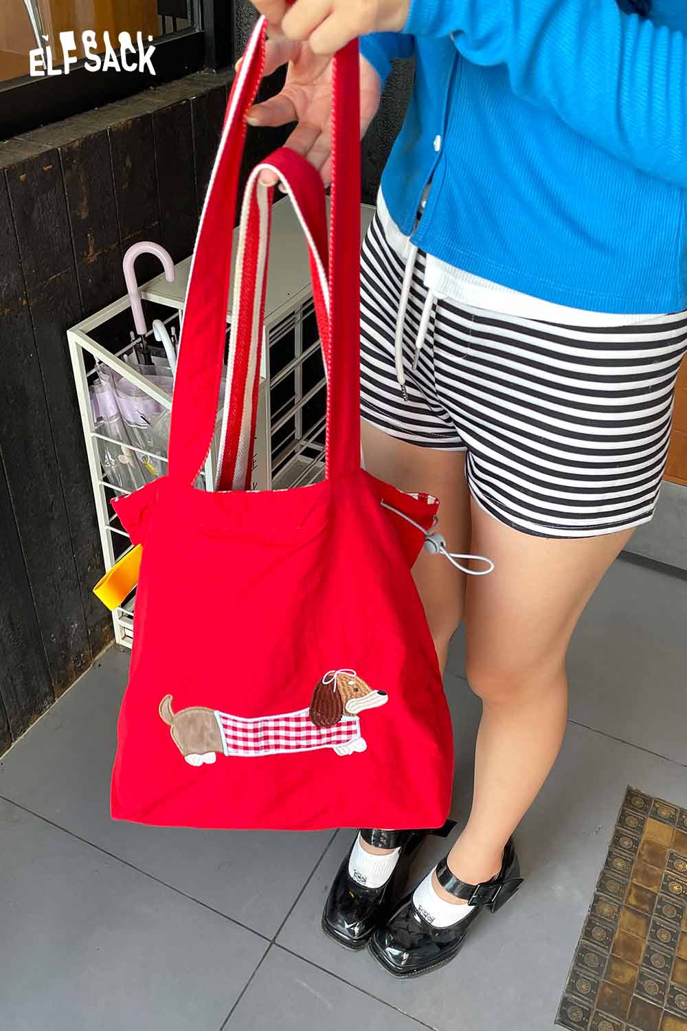Soft Dachshund Pattern Color Block Cute Large Tote Bag