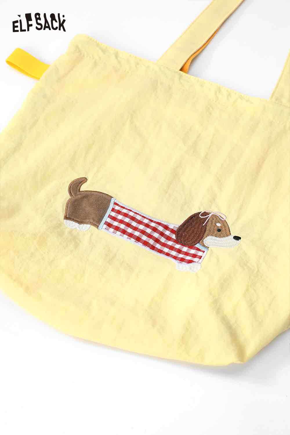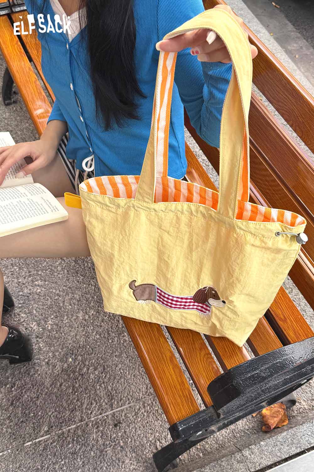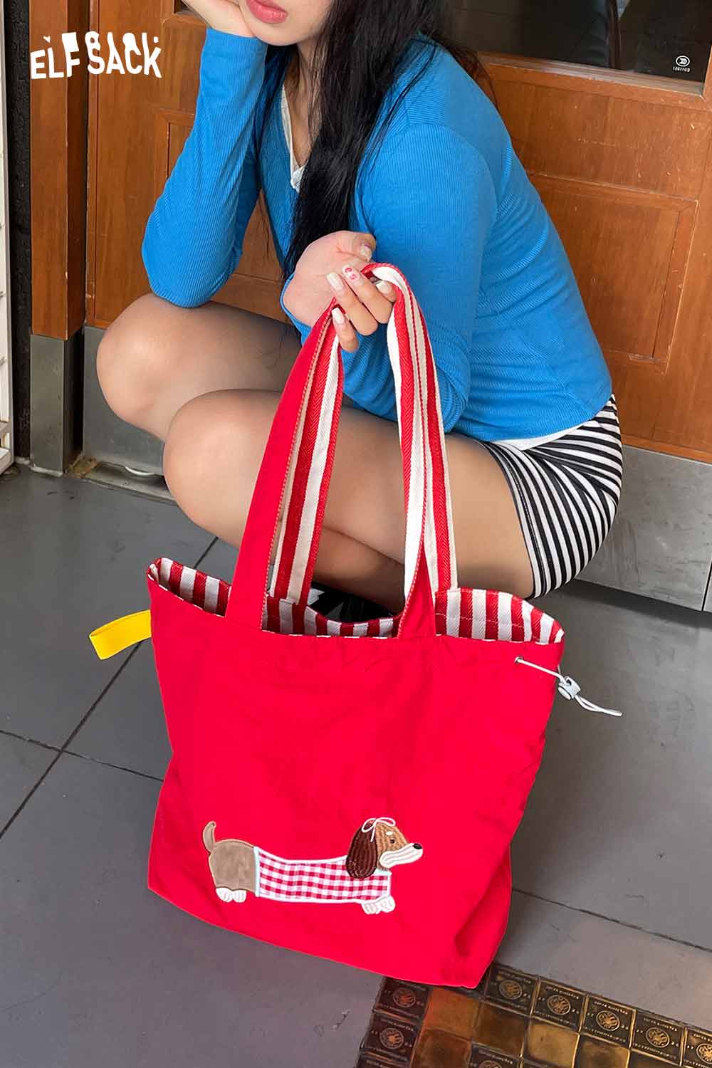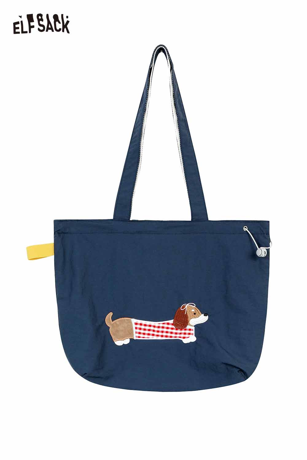 Soft Dachshund Pattern Color Block Cute Large Tote Bag