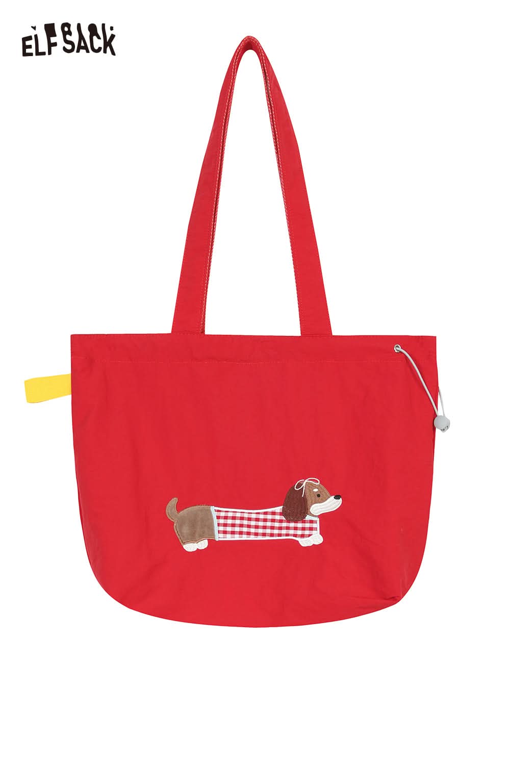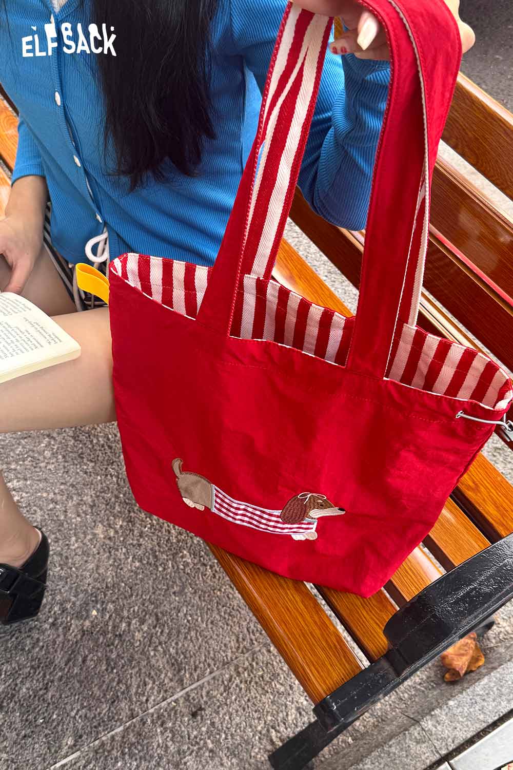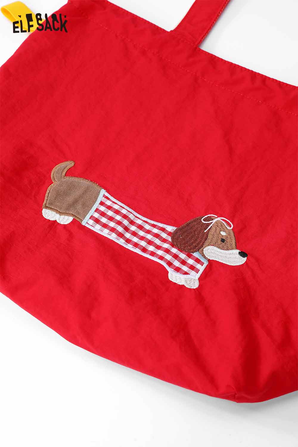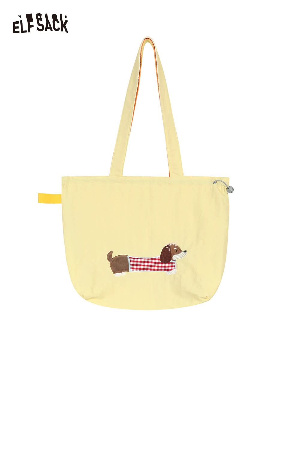 Soft Dachshund Pattern Color Block Cute Large Tote Bag