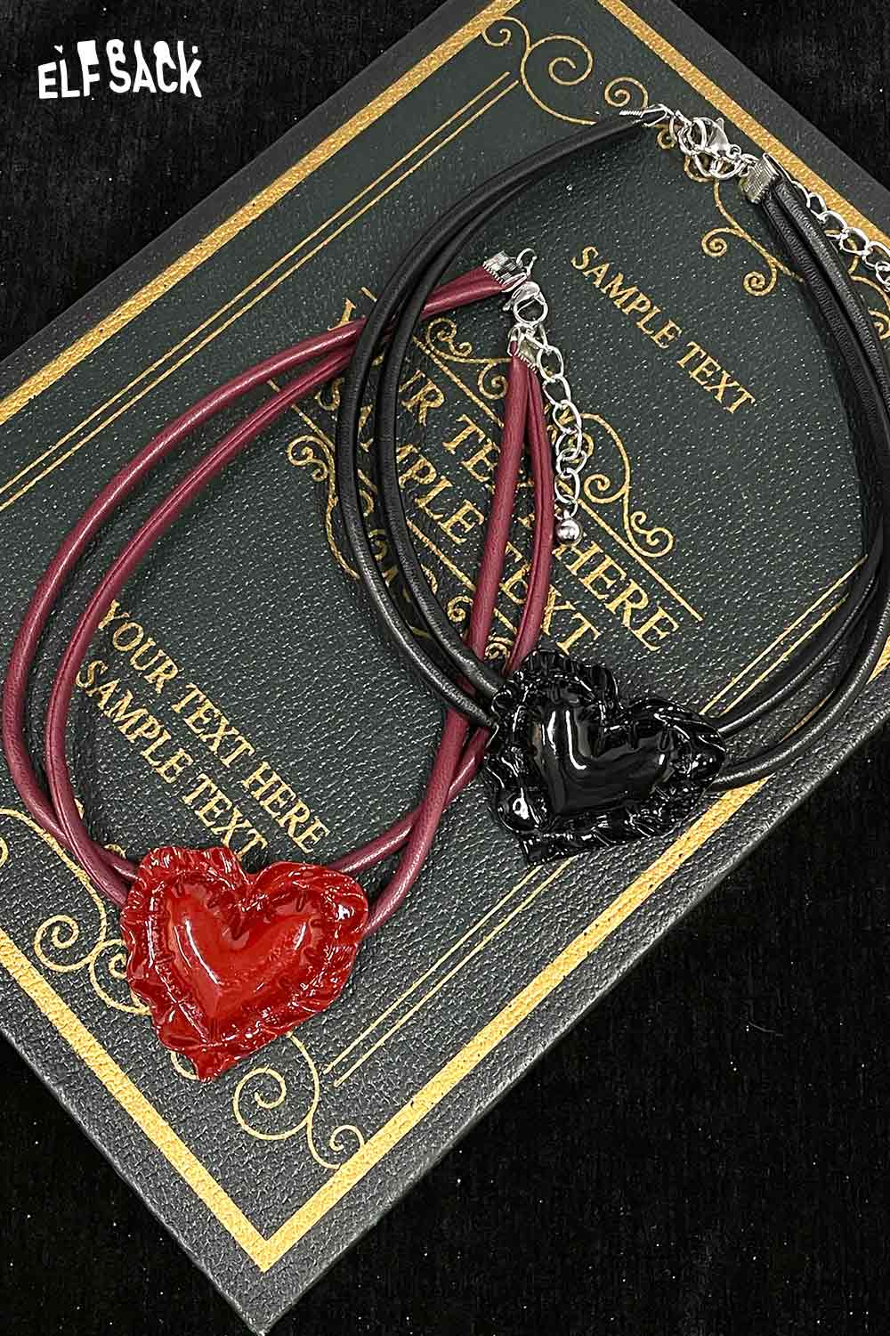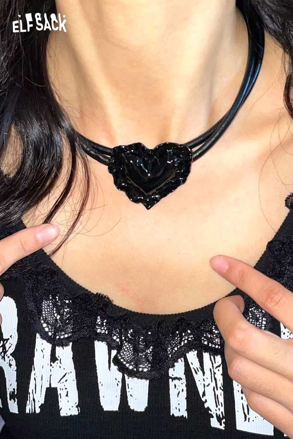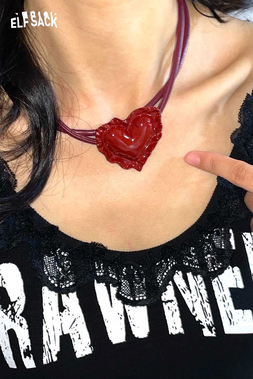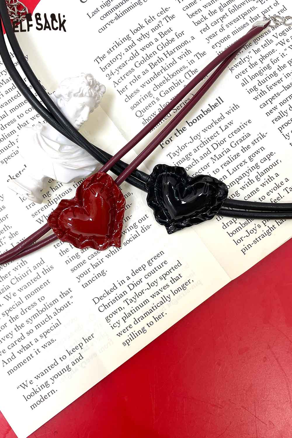 Leather Tiered Y2K Asymmetric Heart Pendant Choker