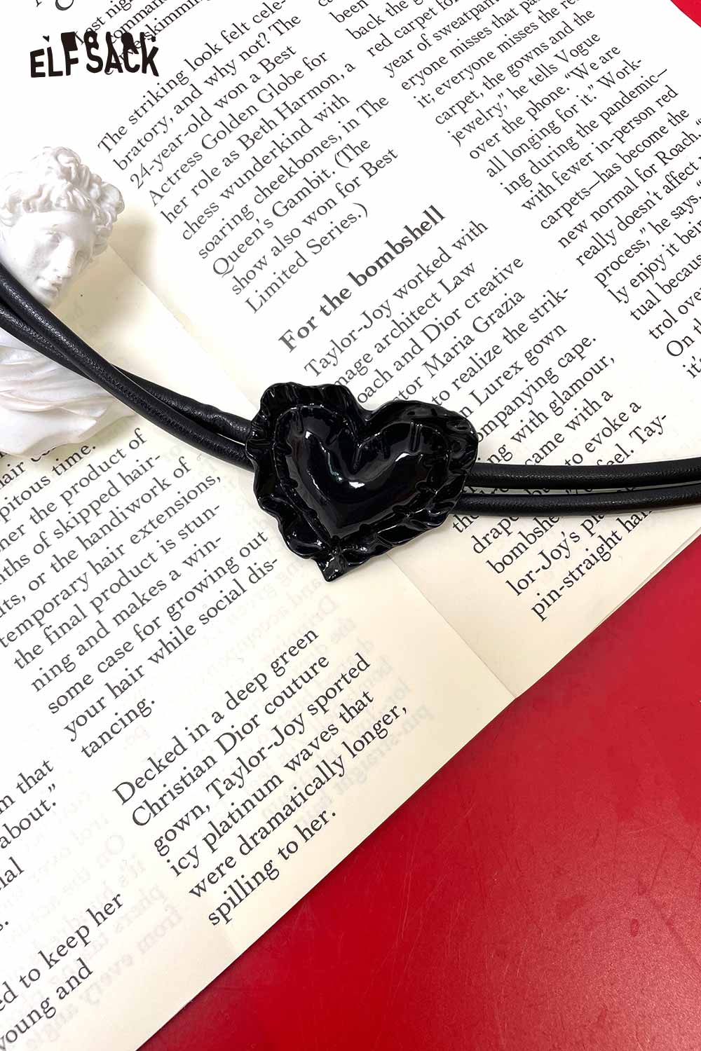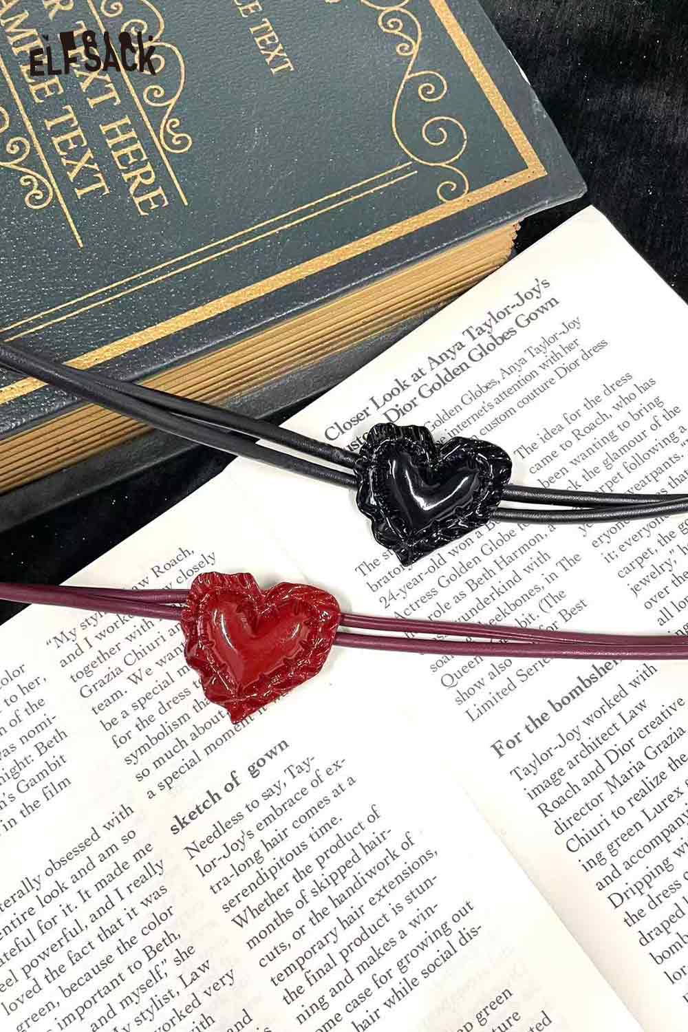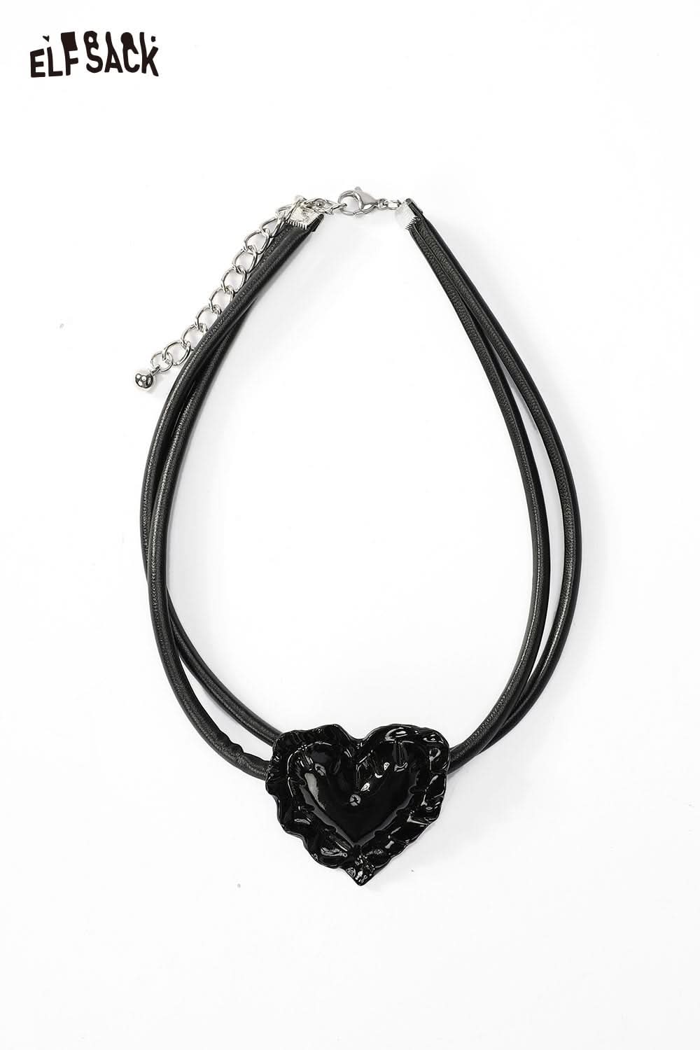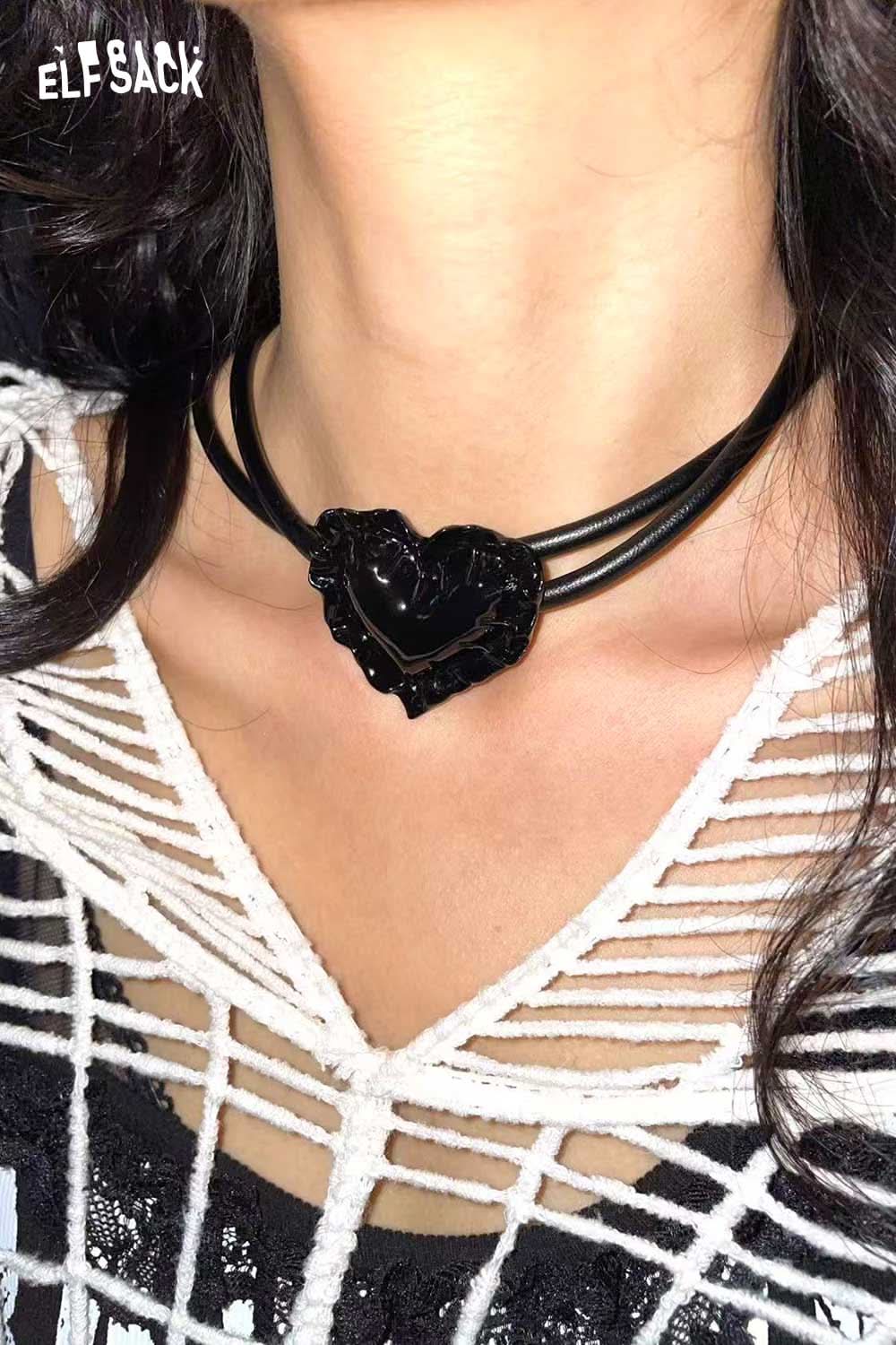 Leather Tiered Y2K Asymmetric Heart Pendant Choker