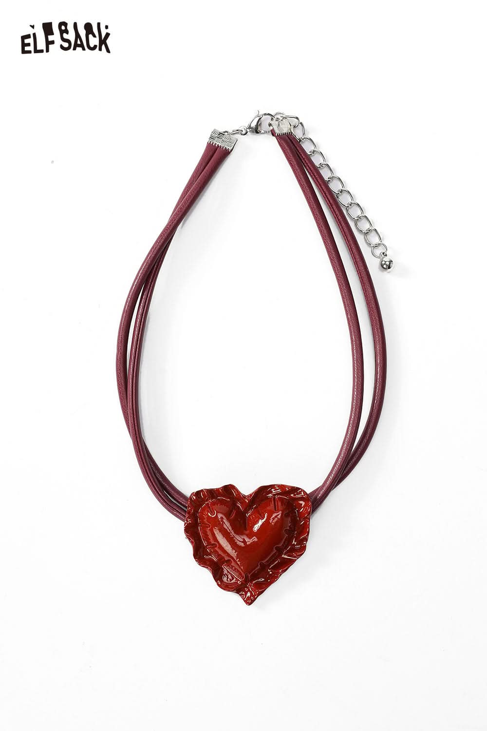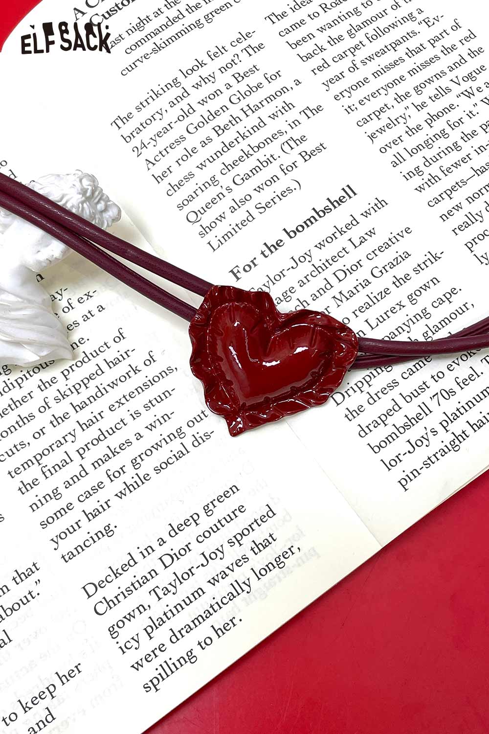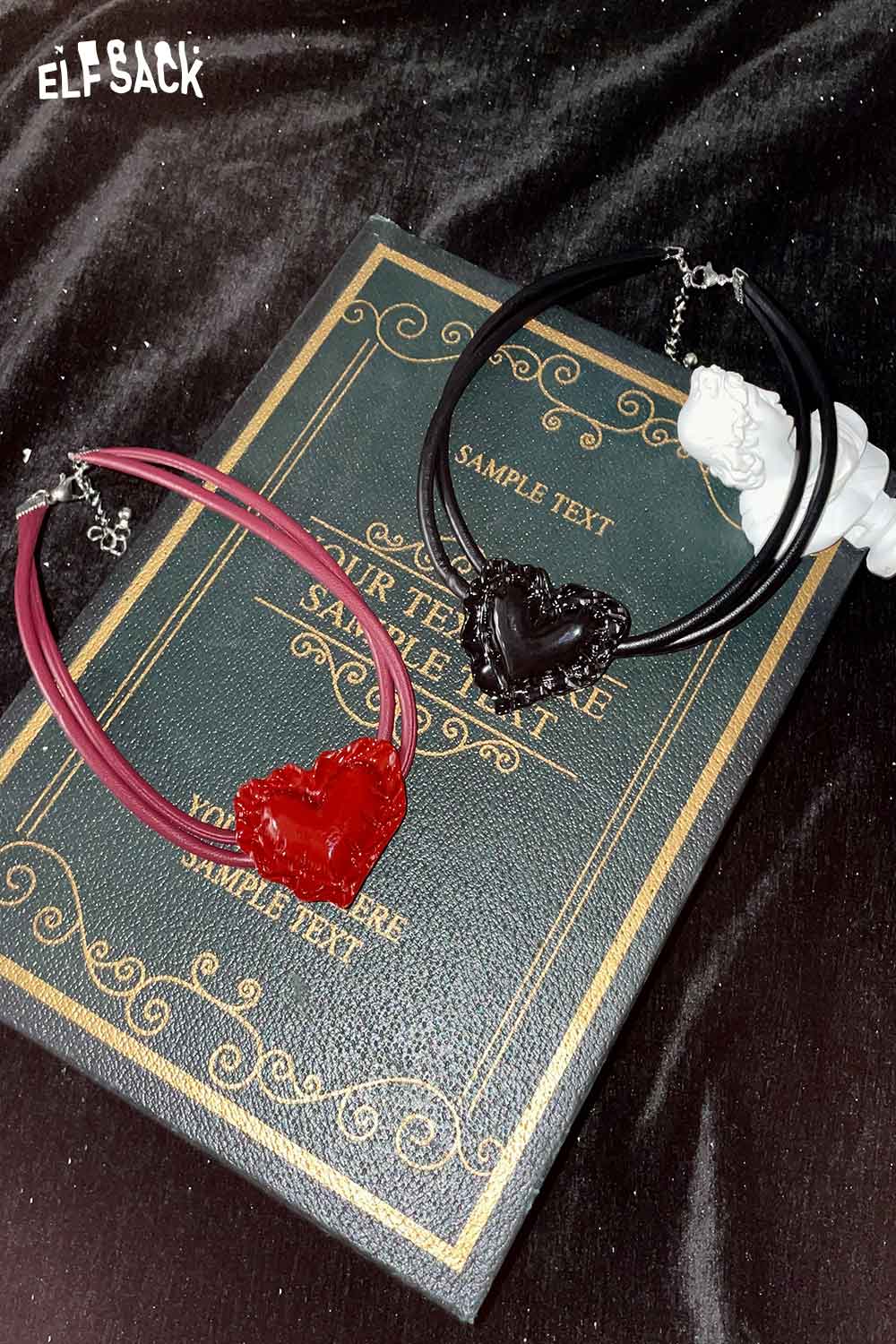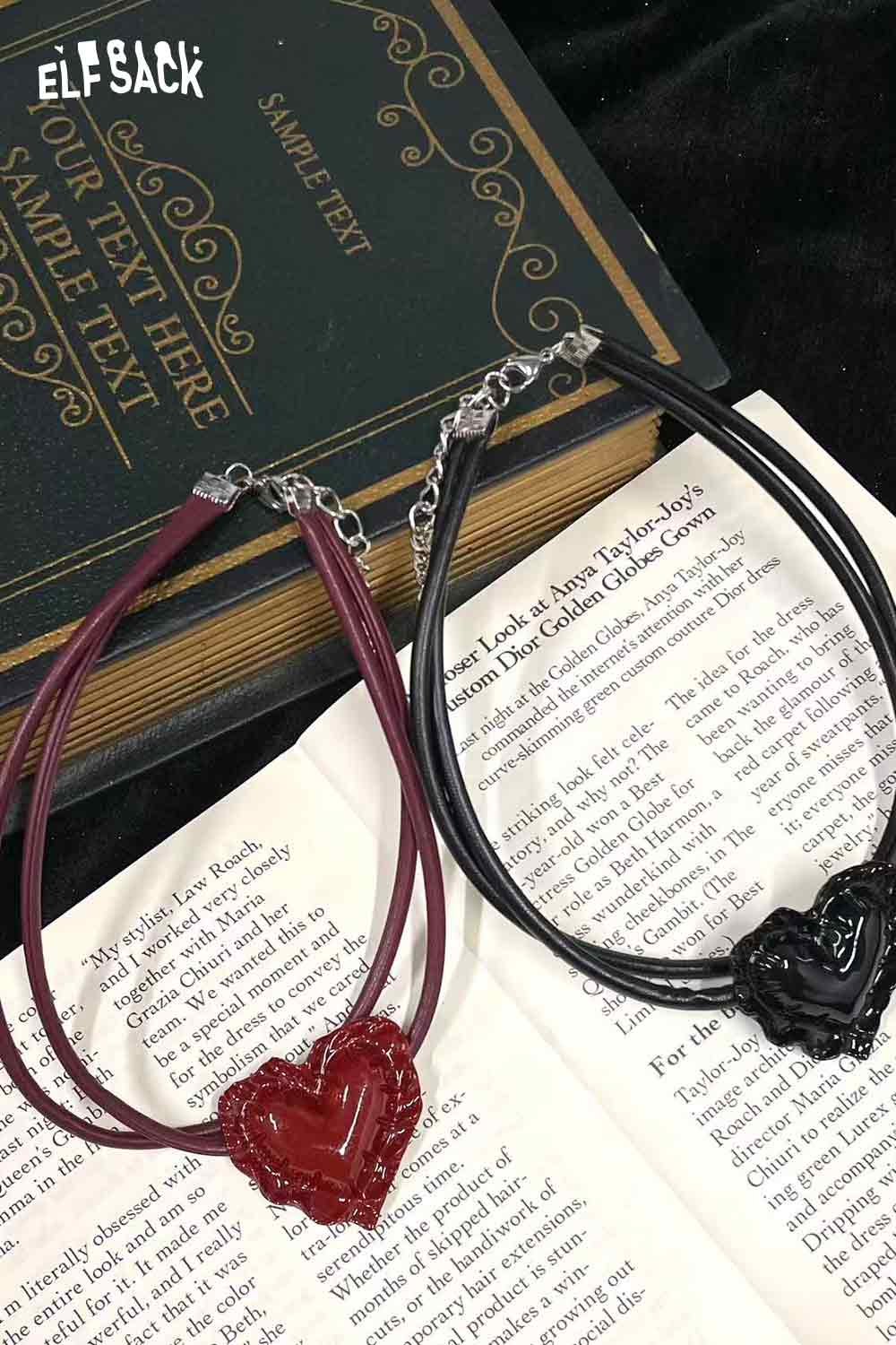 Leather Tiered Y2K Asymmetric Heart Pendant Choker