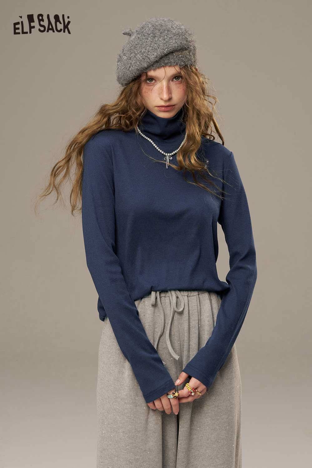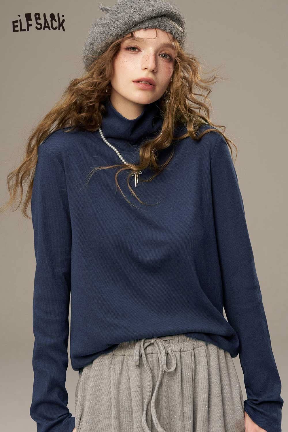 ELFSACK women's cozy turtleneck sweater in navy, perfect for casual and comfy outfits