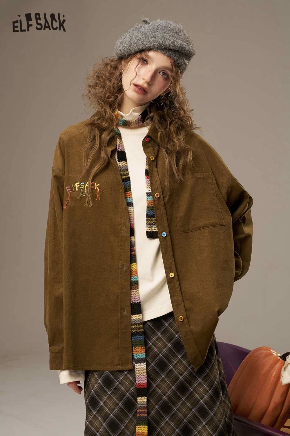 ELFSACK women's cozy turtleneck sweater layered under a button-up shirt, featuring a relaxed fit and casual style