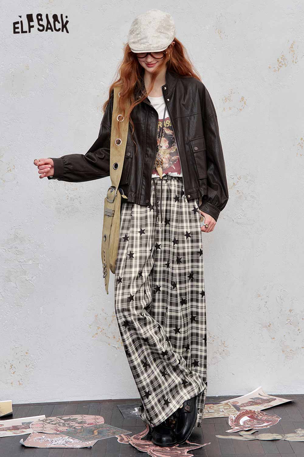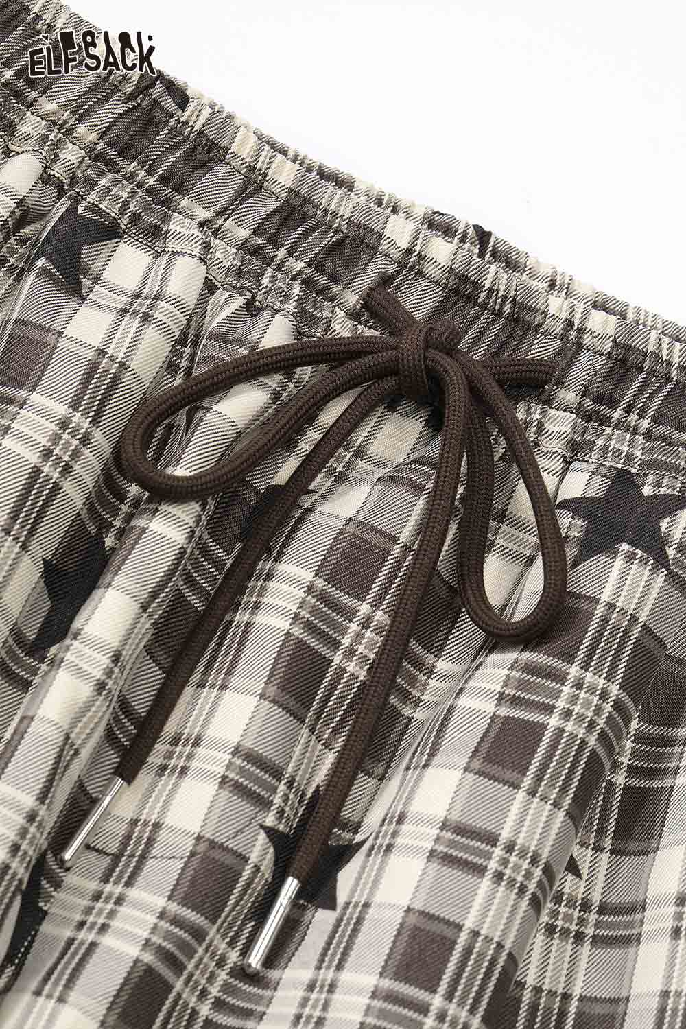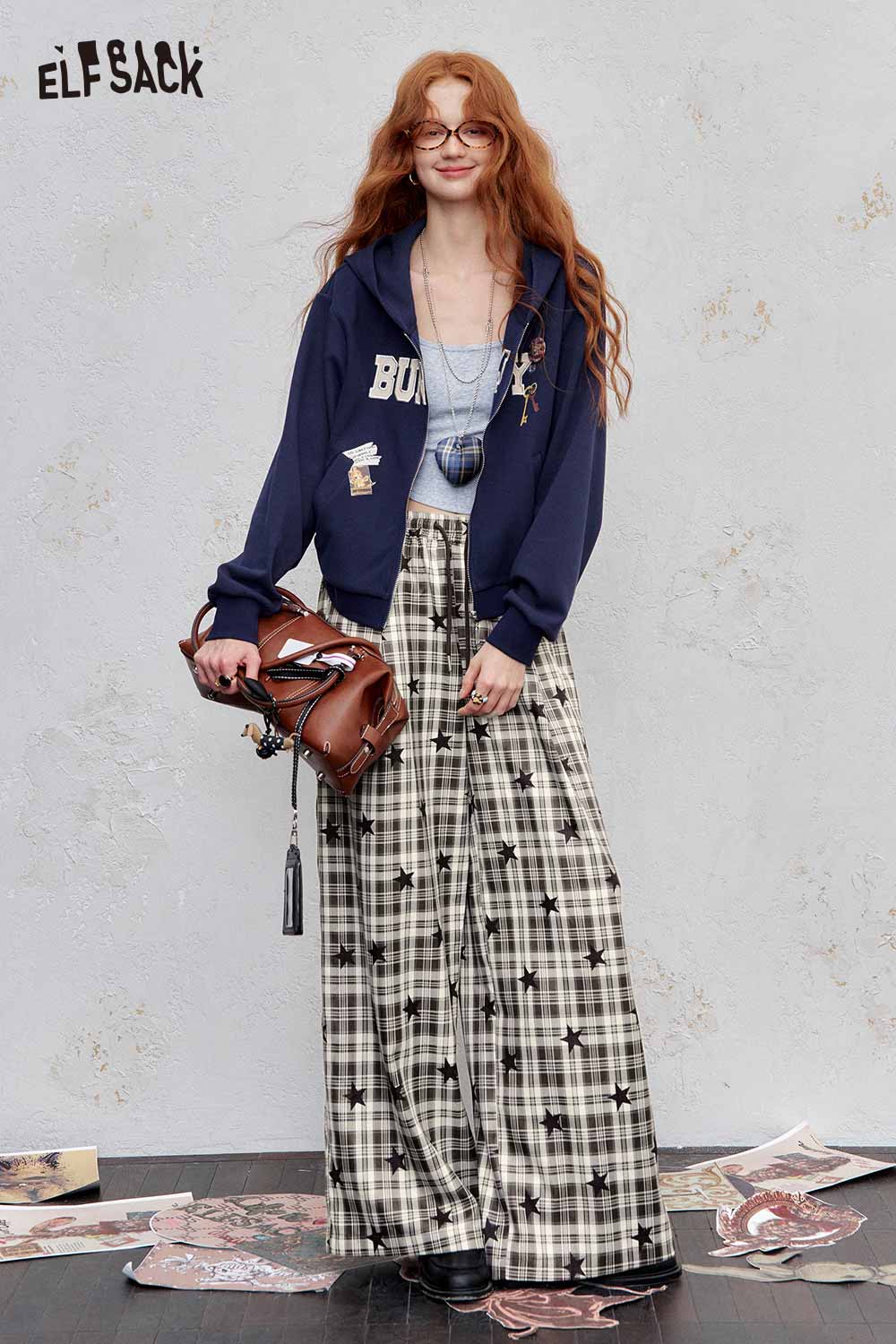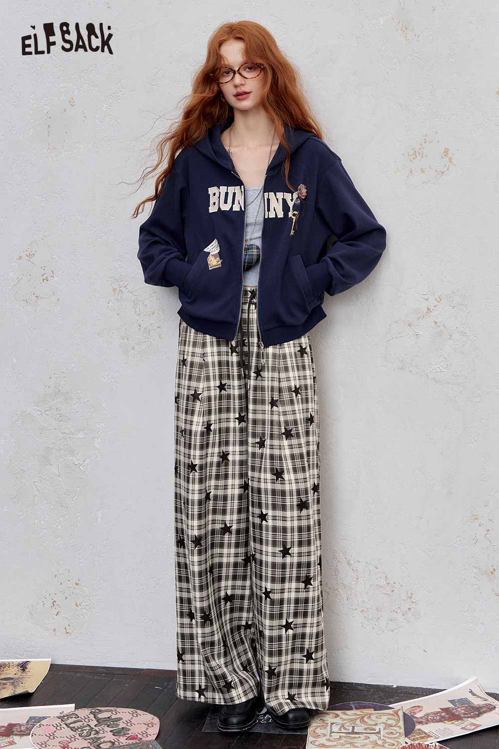 Light Wide-Leg Checkered Graphic Casual Long Pants