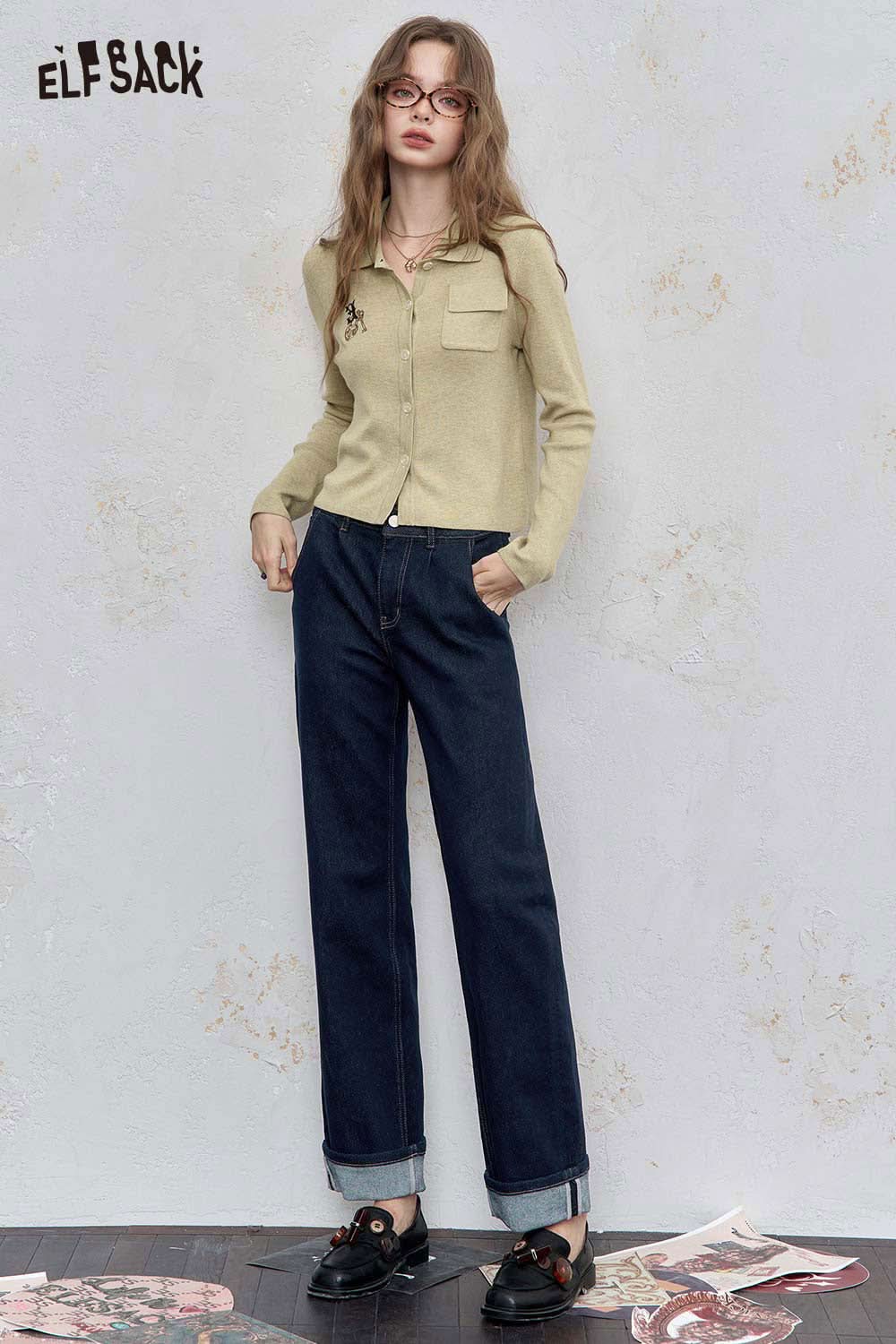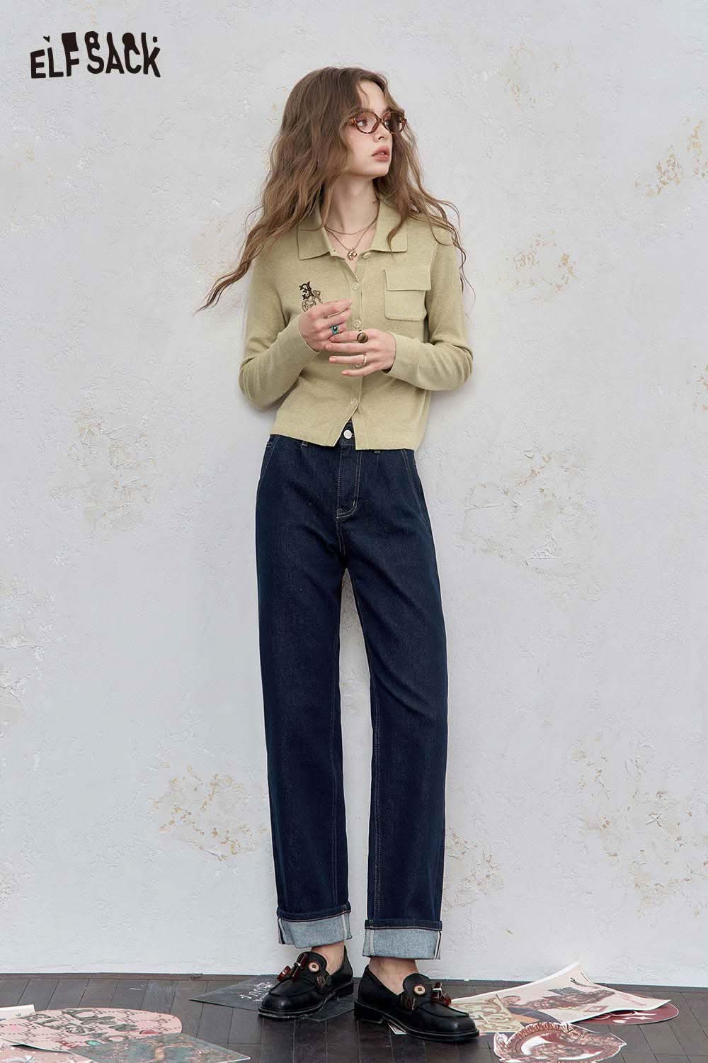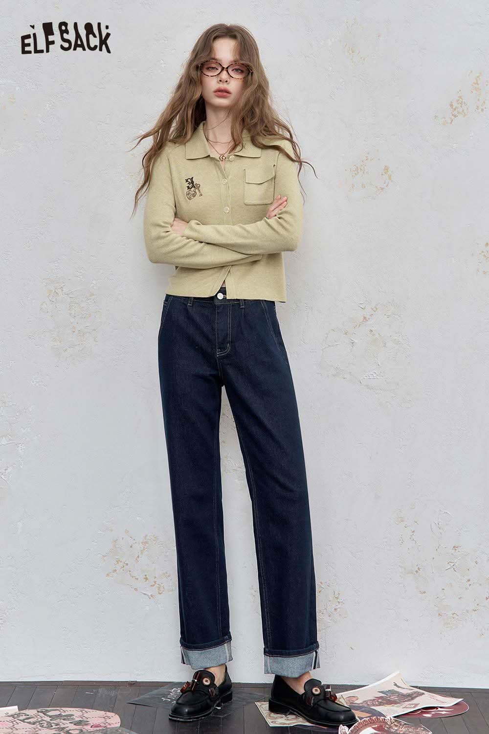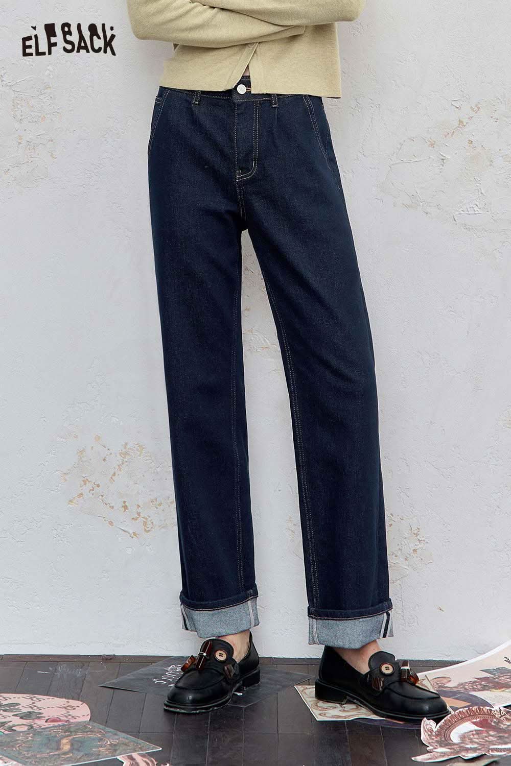 Denim Hem Roll-Up Retro Ankle-Length Jeans