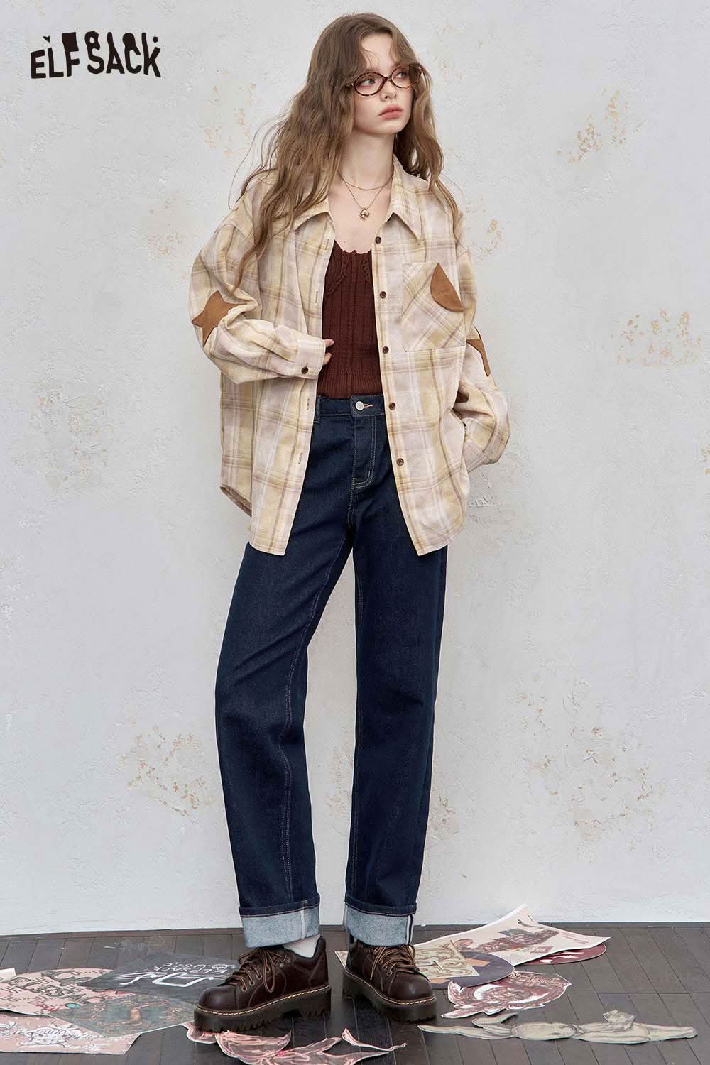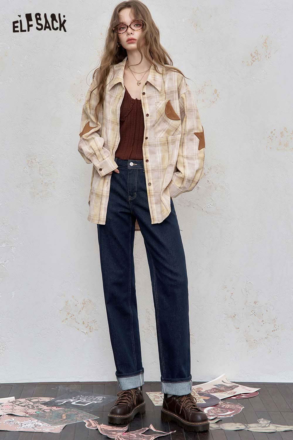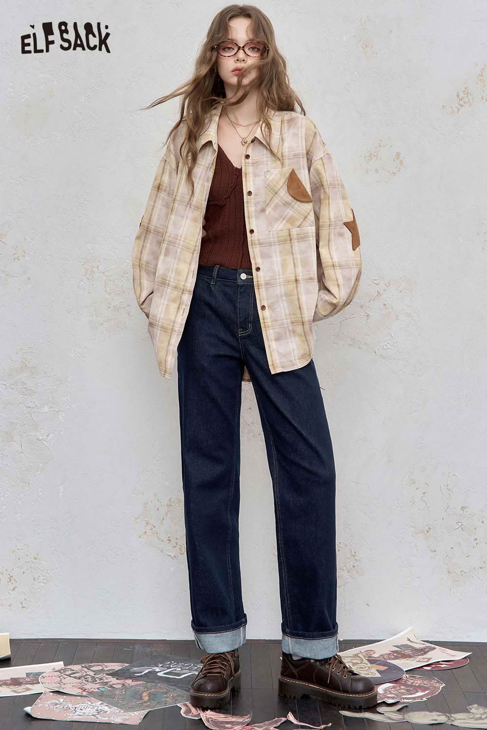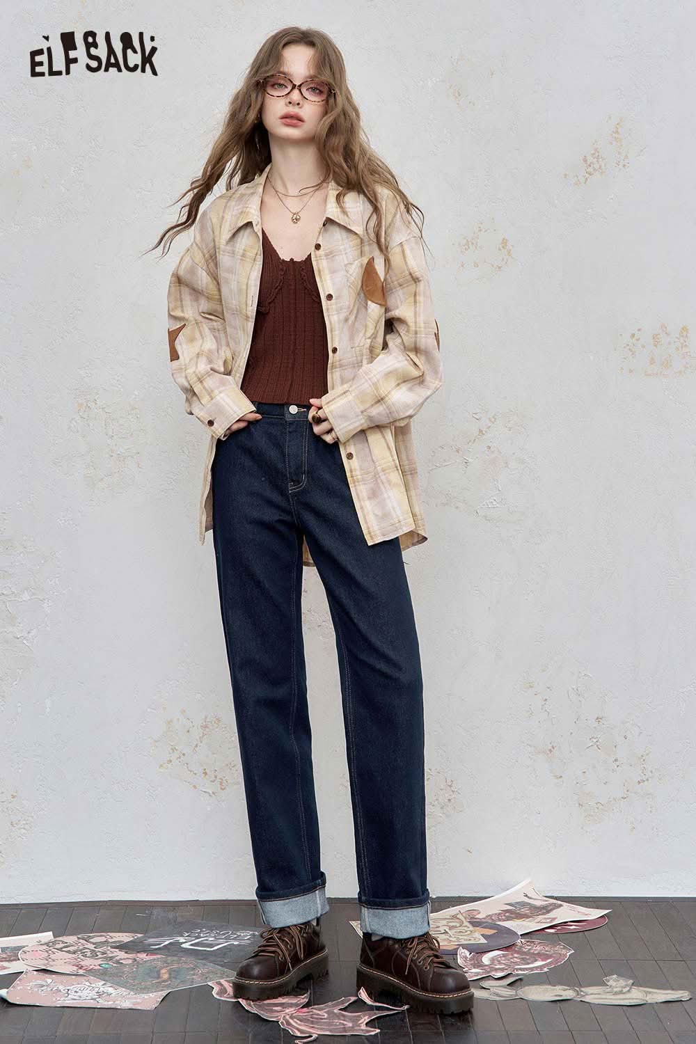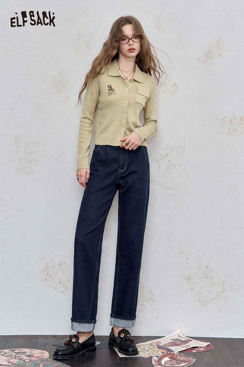 Denim Hem Roll-Up Retro Ankle-Length Jeans