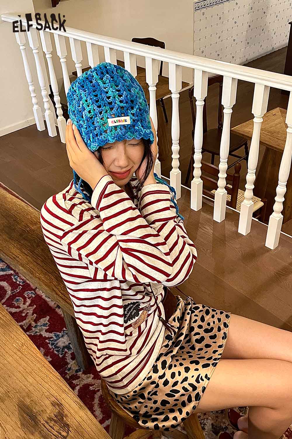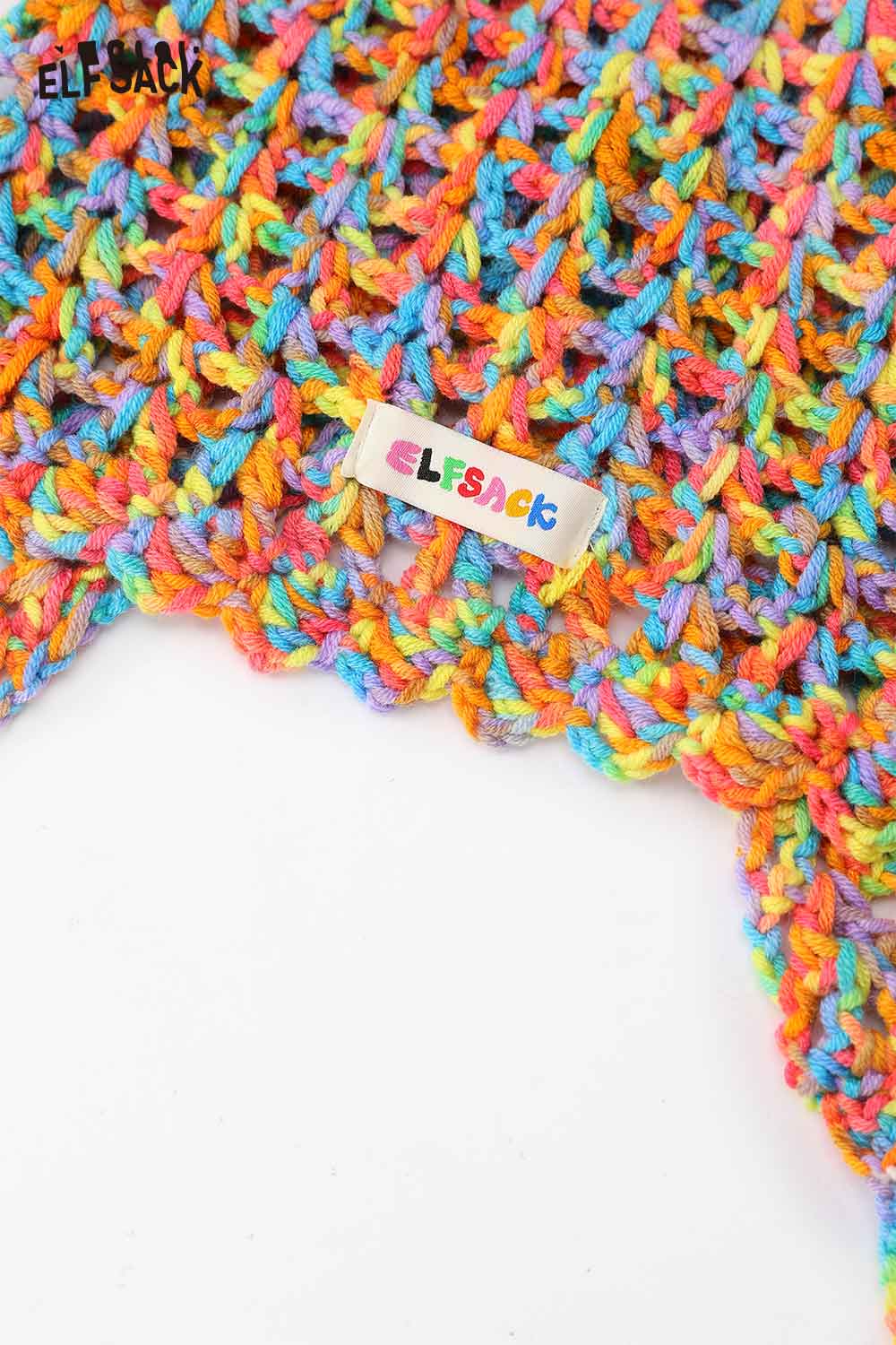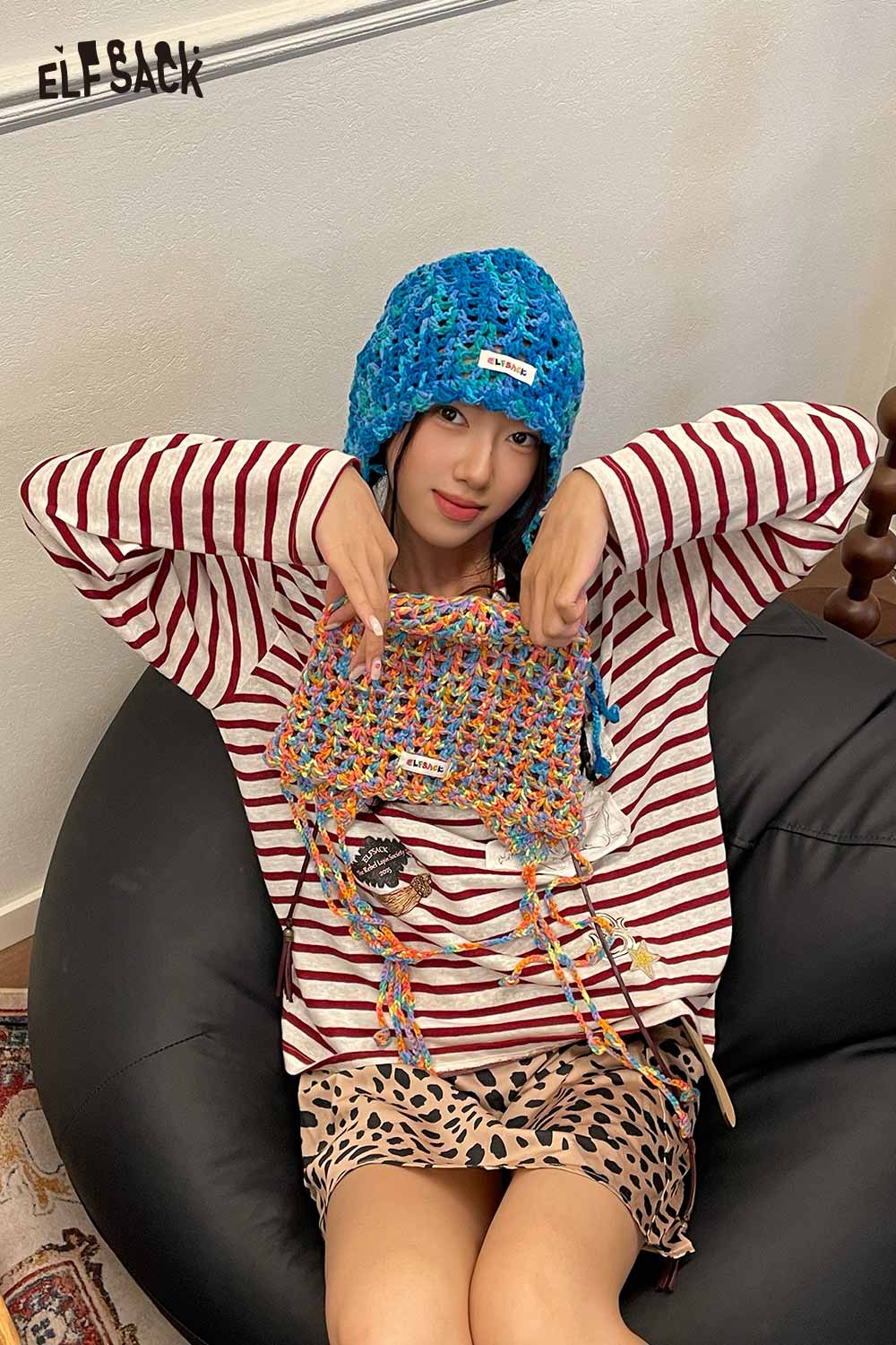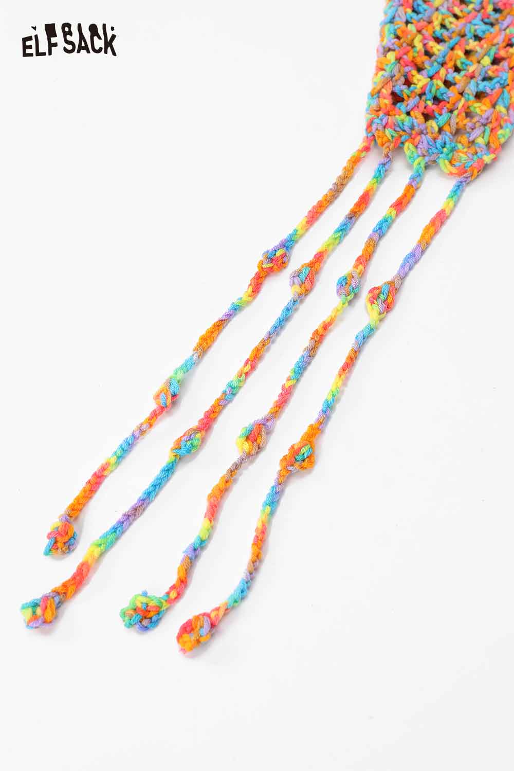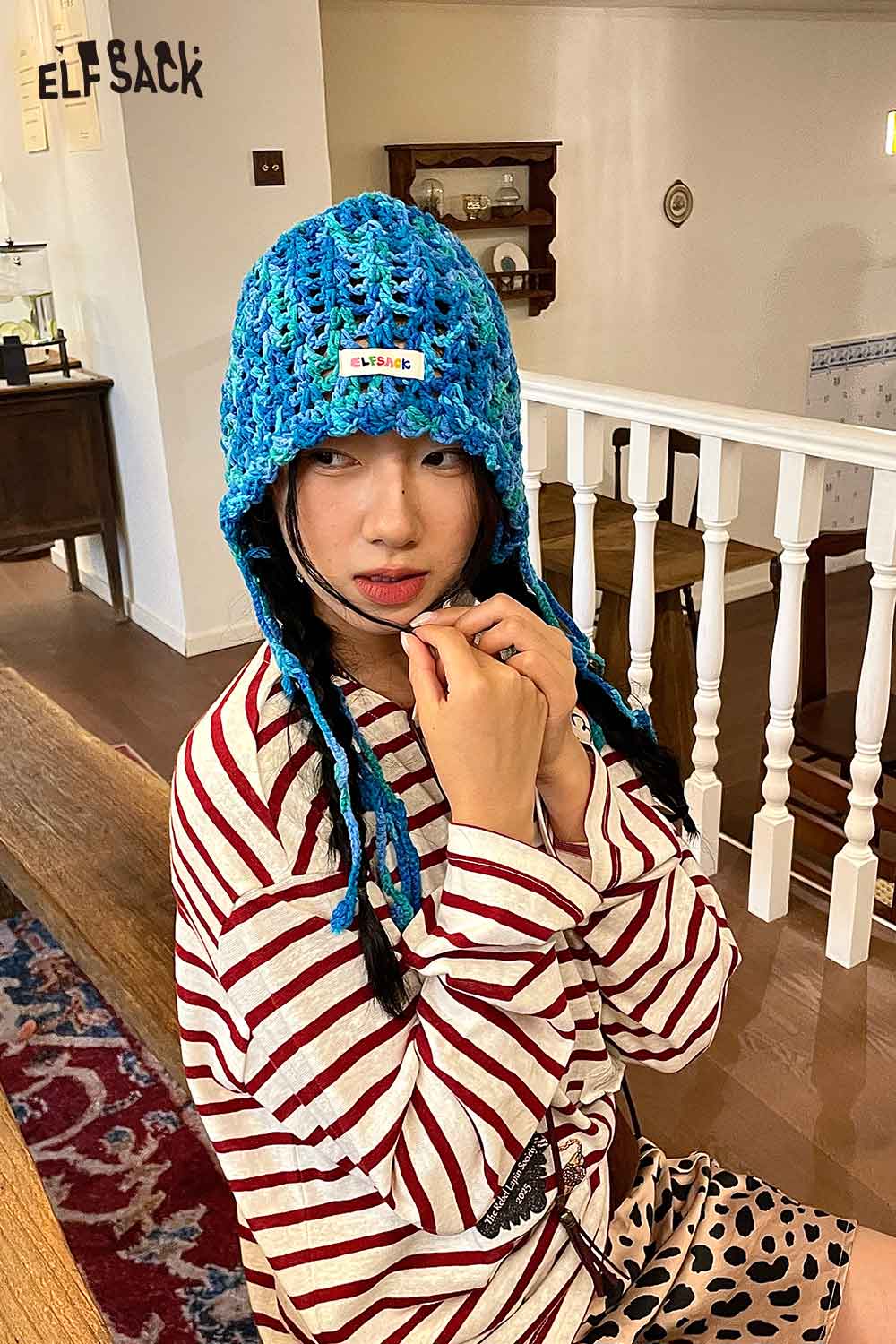 Cotton Blend Slouchy Colorful Tassel Braid Crochet Beanie