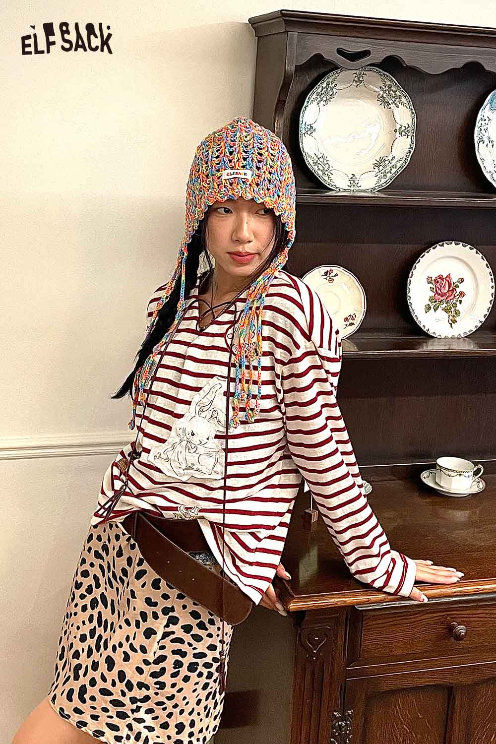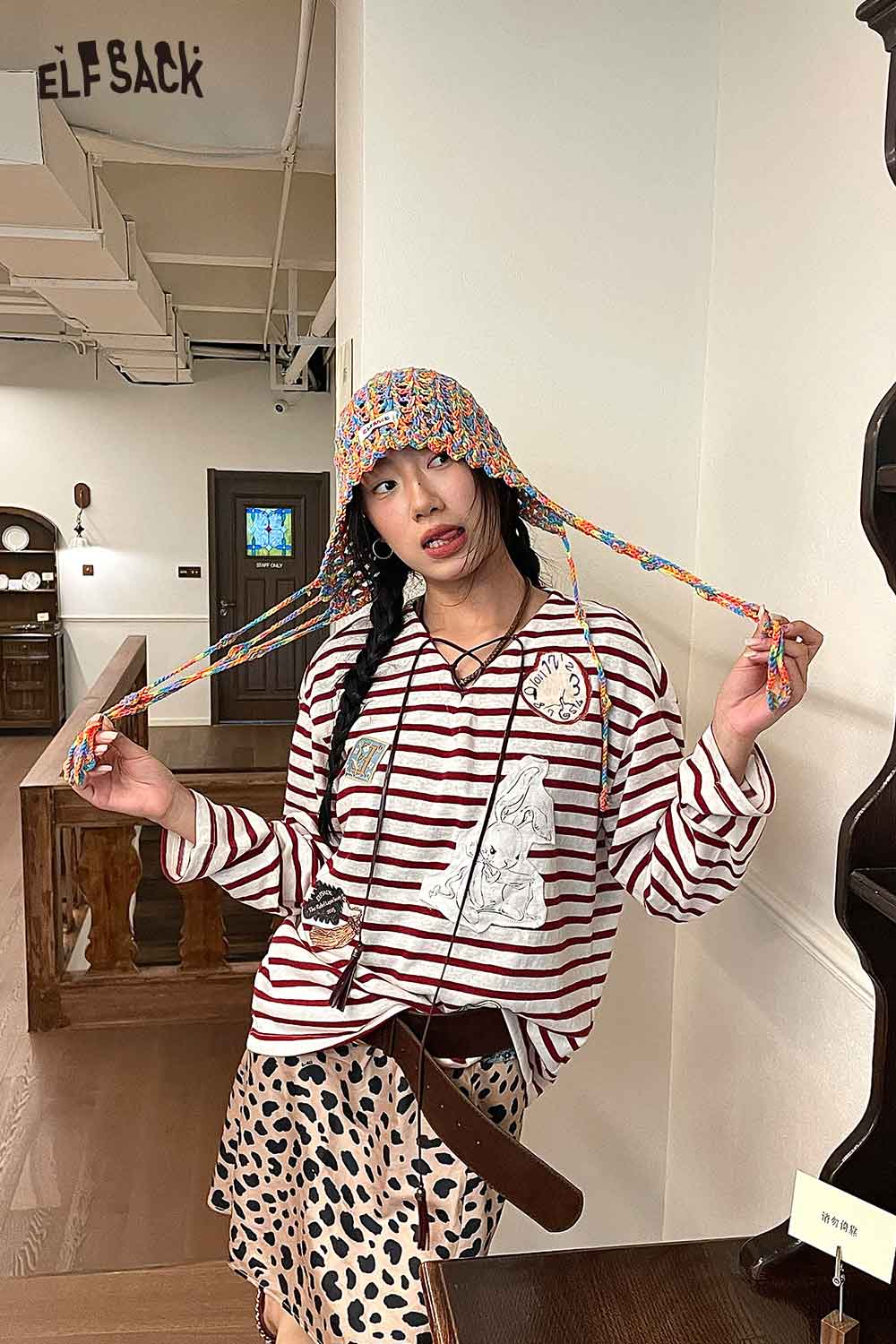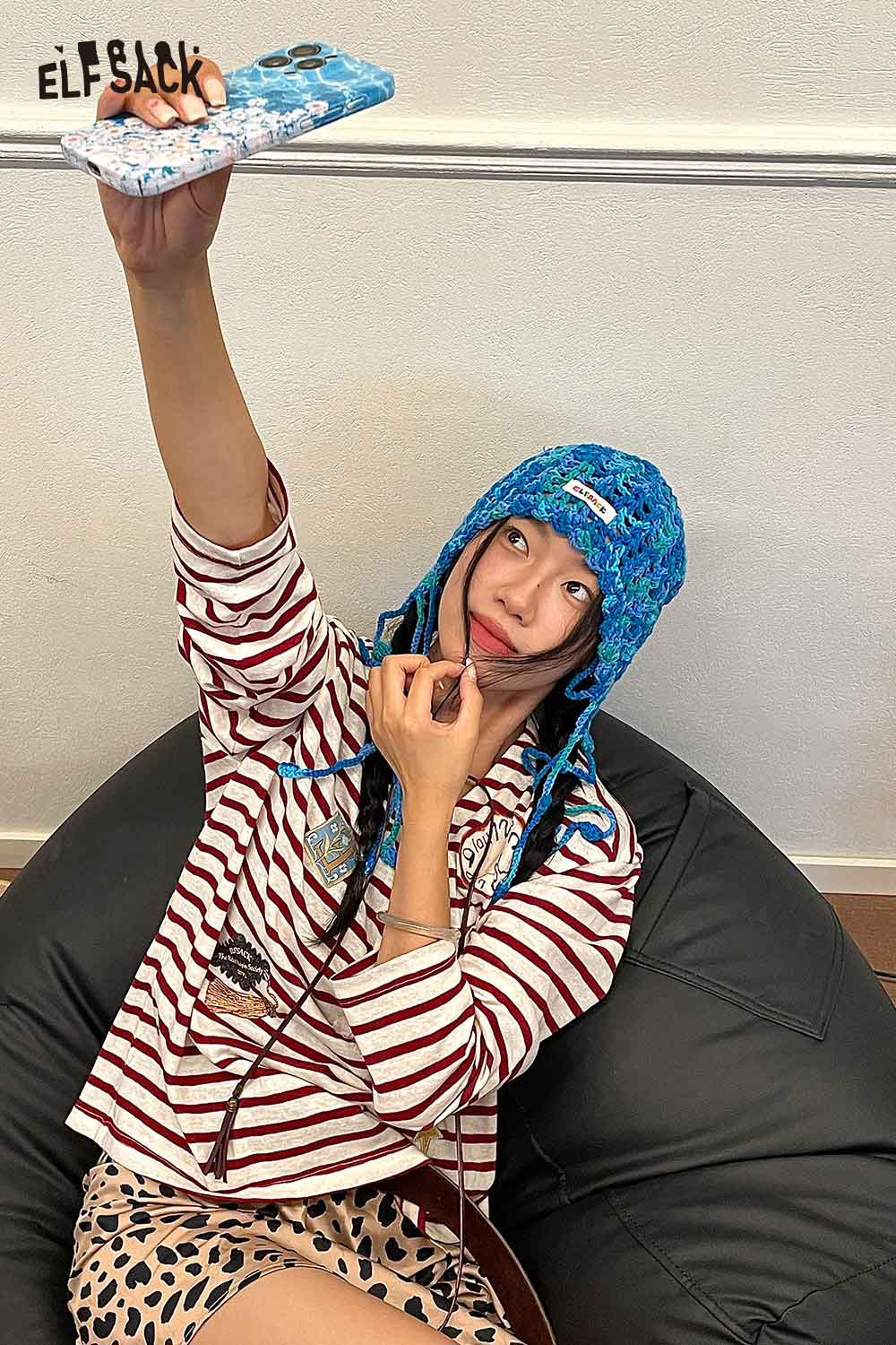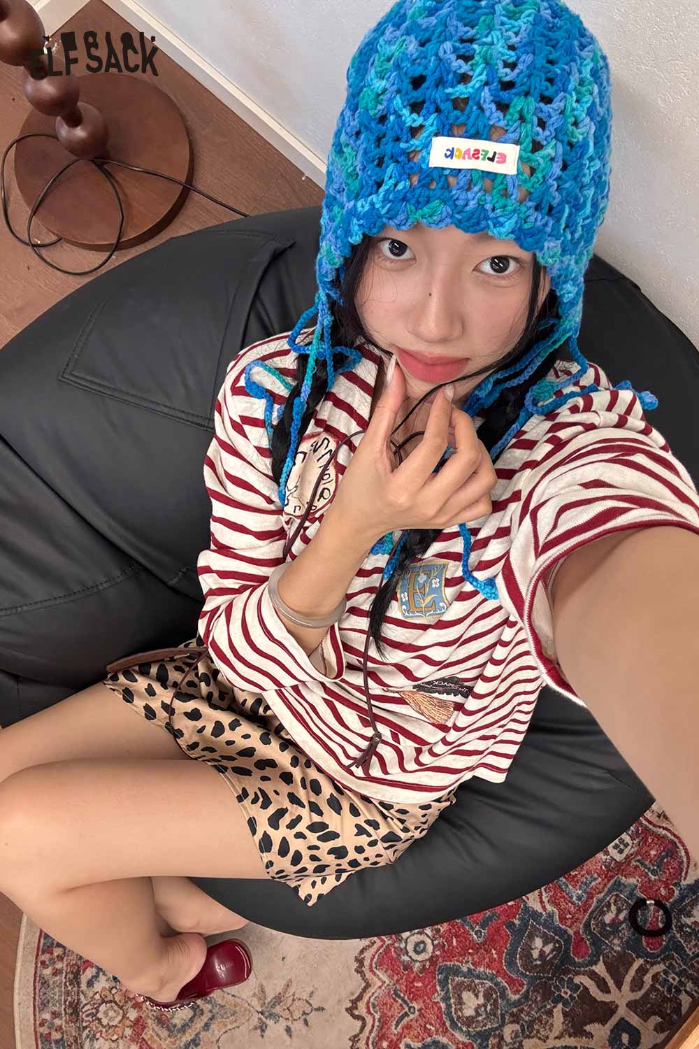 Cotton Blend Slouchy Colorful Tassel Braid Crochet Beanie