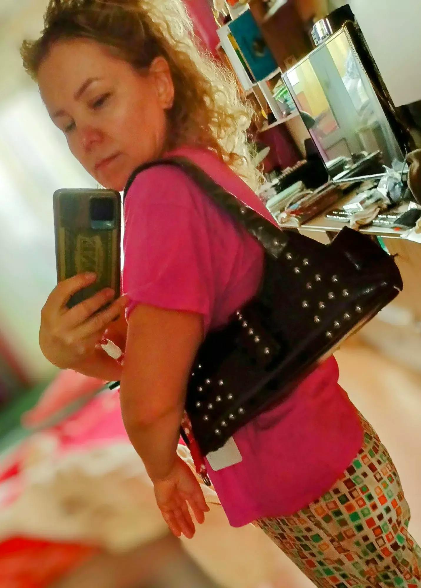 Trendy Beaded Retro Large Capacity Hand Bag Rivet Motorcycle Bag