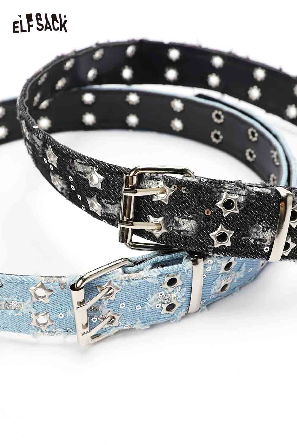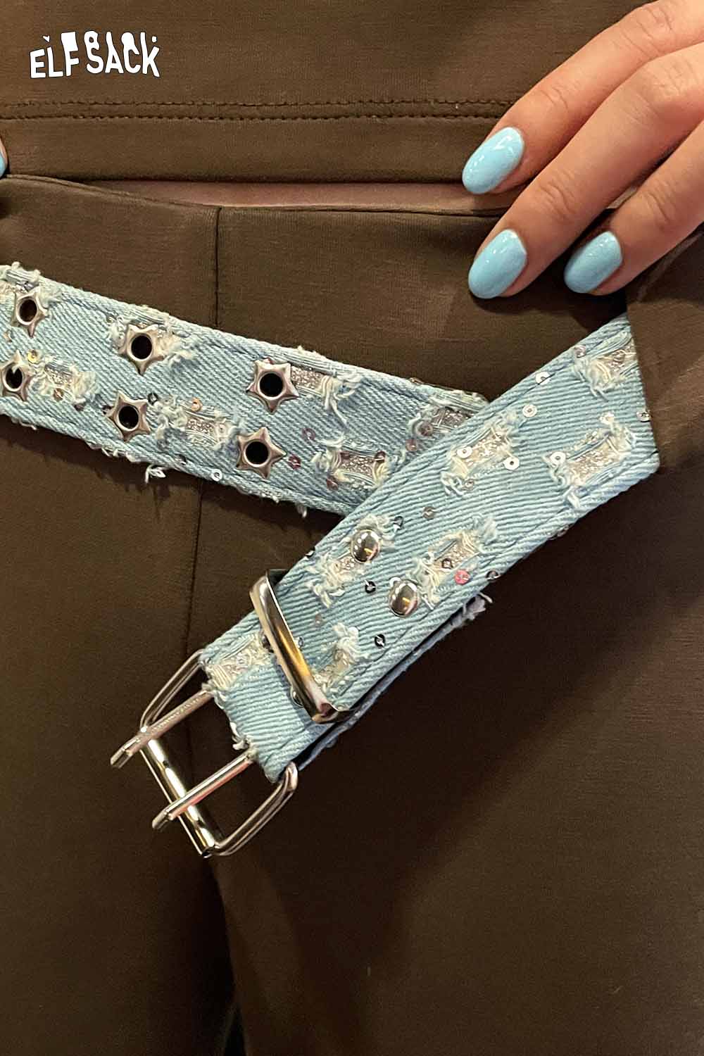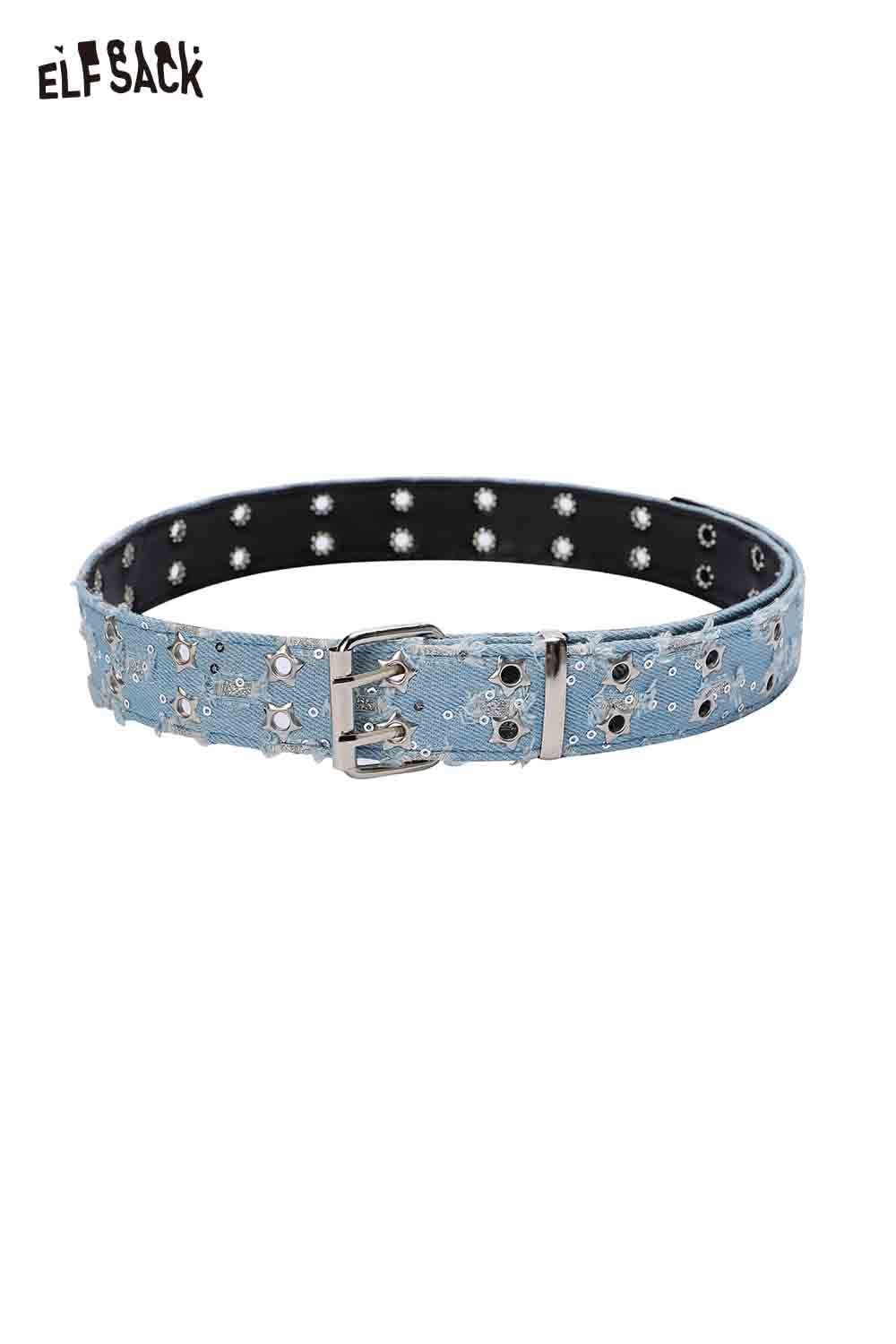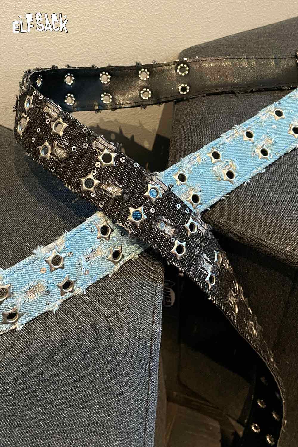 Aged Leather Belt Deconstructed Edges Celestial Motif Adjustable Buckle