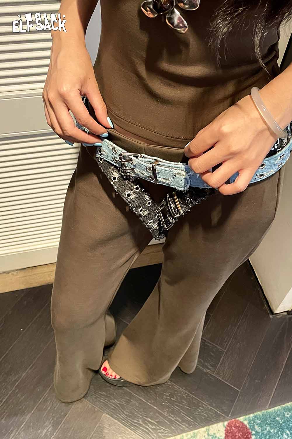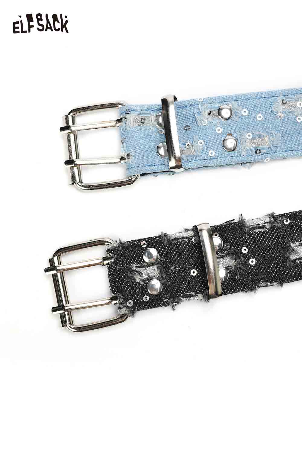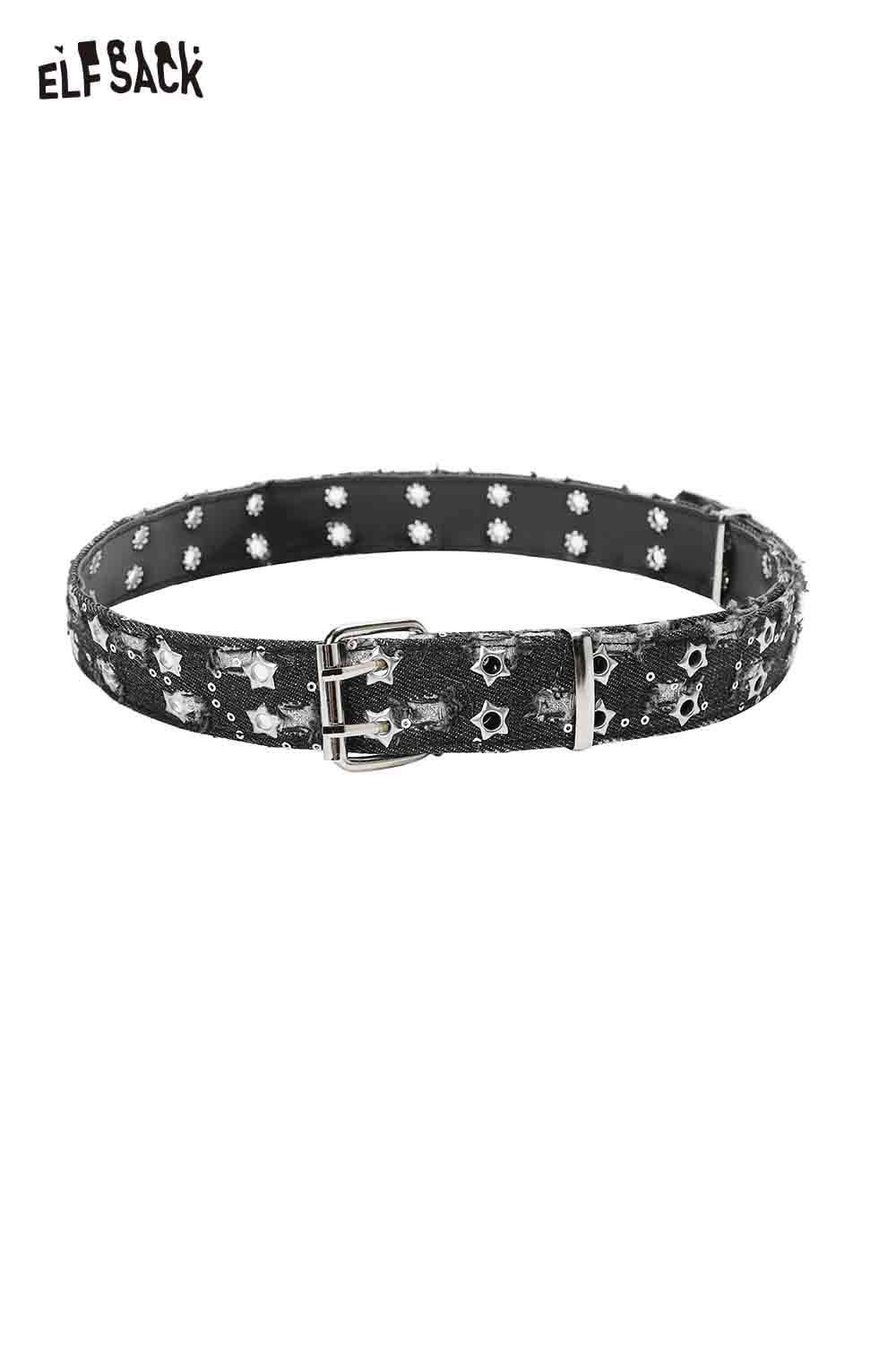 Aged Leather Belt Deconstructed Edges Celestial Motif Adjustable Buckle