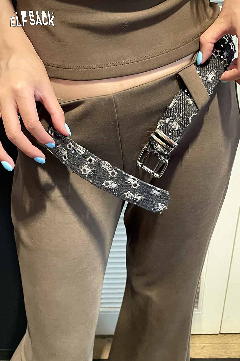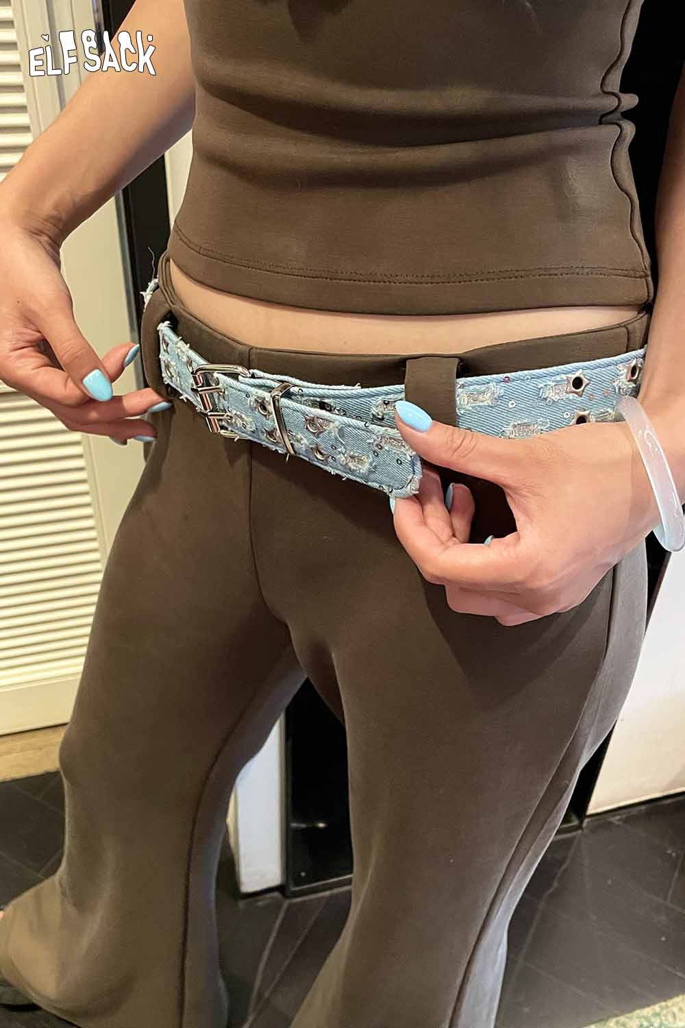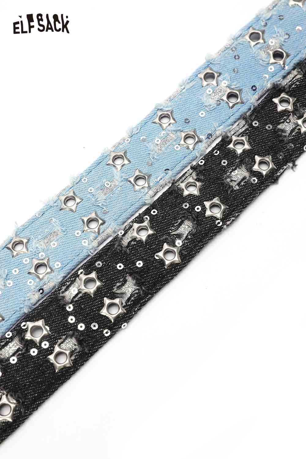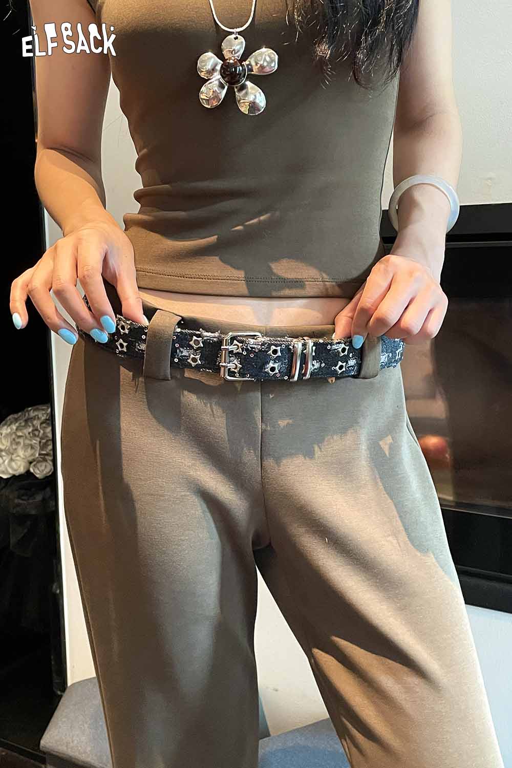 Aged Leather Belt Deconstructed Edges Celestial Motif Adjustable Buckle