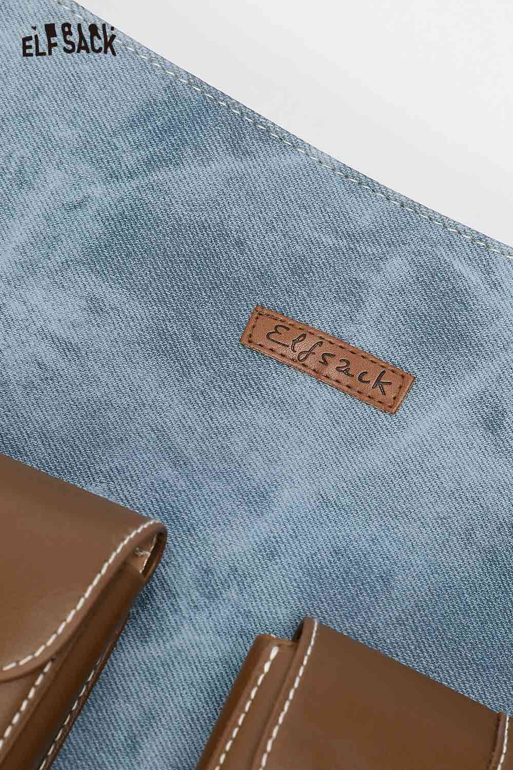 Recycled Faux Leather Crossbody Bag Contrast Panel Multi Compartment Design