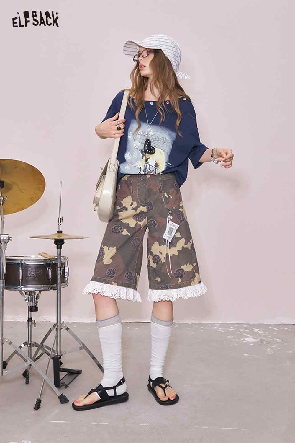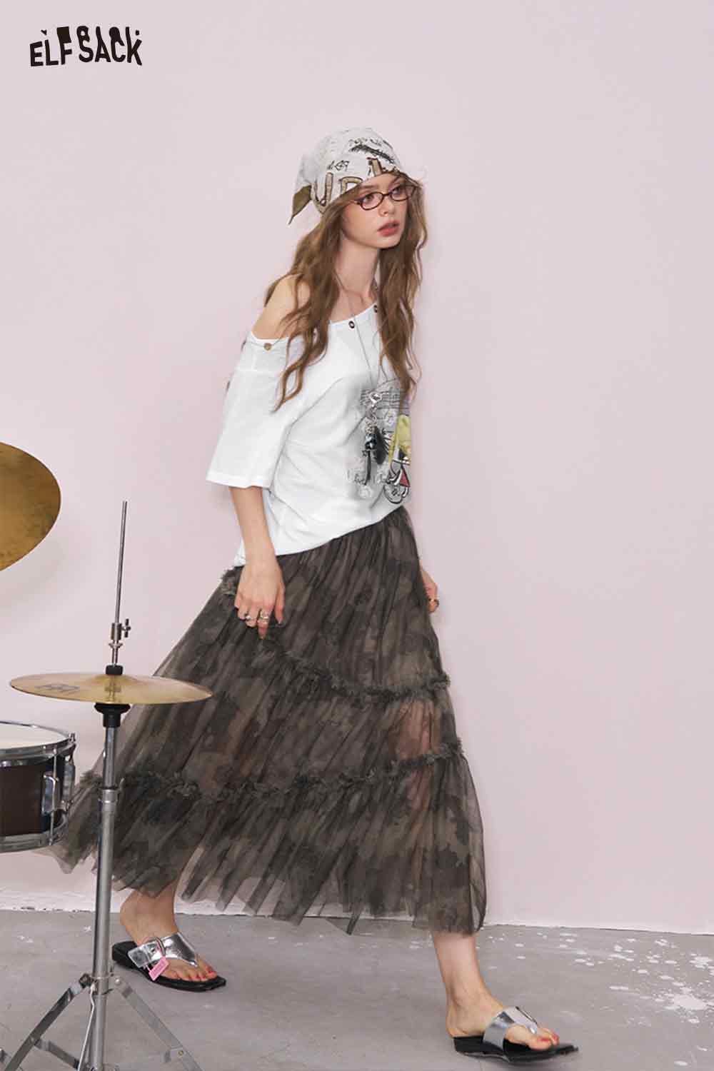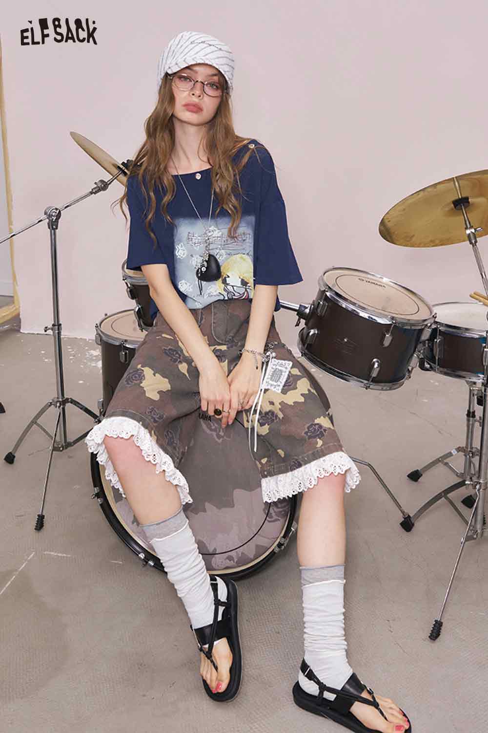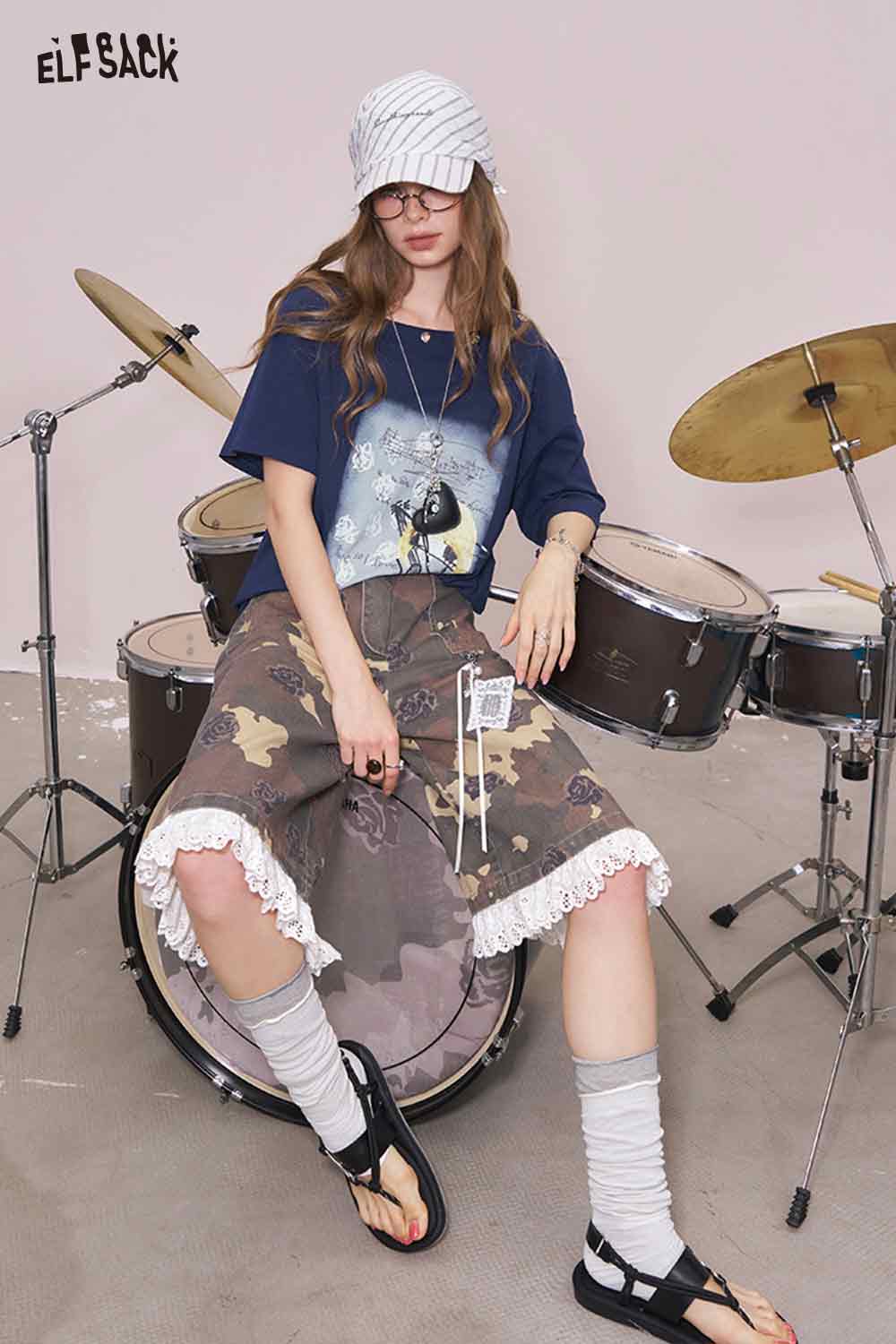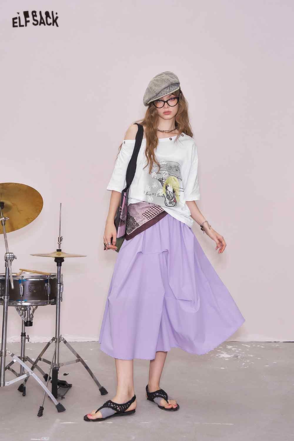 Cotton Loose Printed Off-Shoulder Short-Sleeved T-Shirt