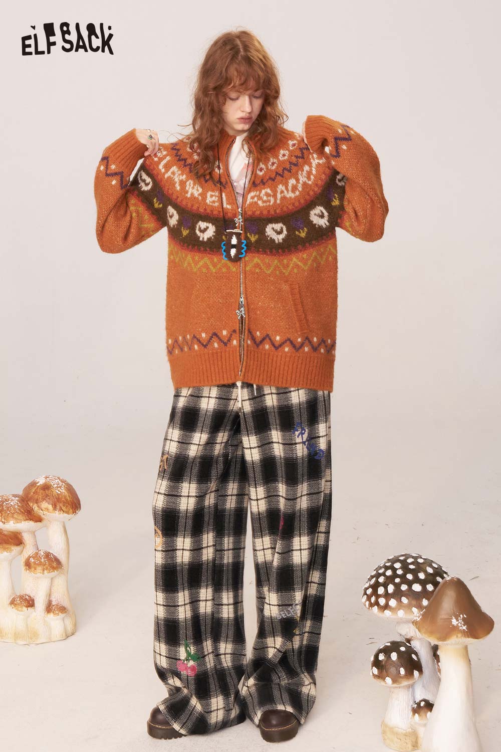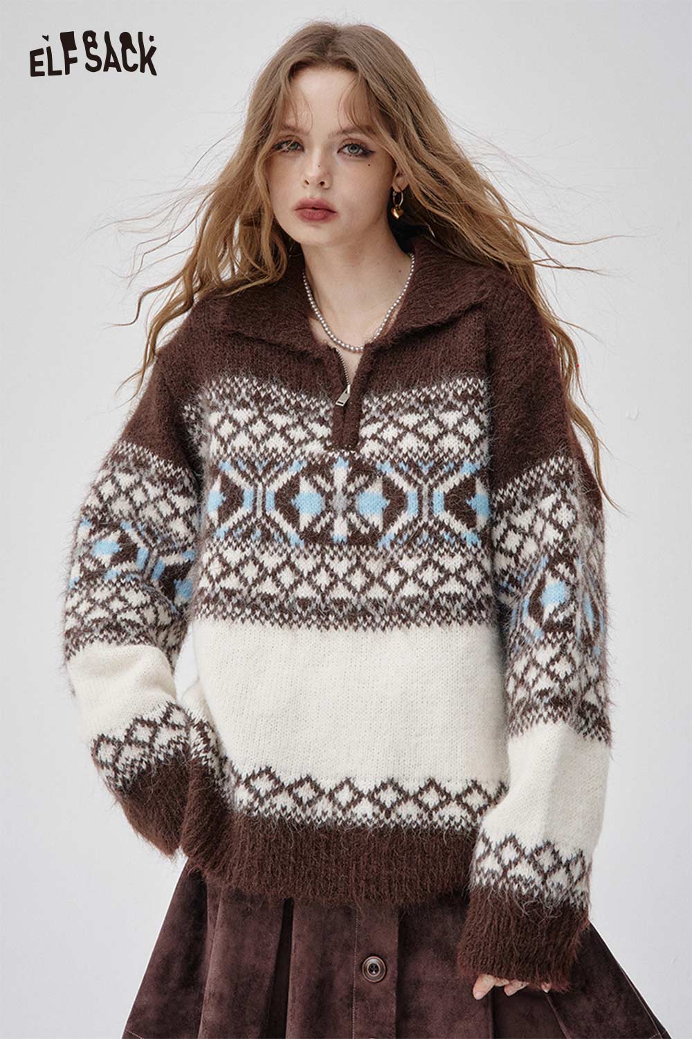 Soft Knit Half Zip Fair Isle Lapel Collar Sweater