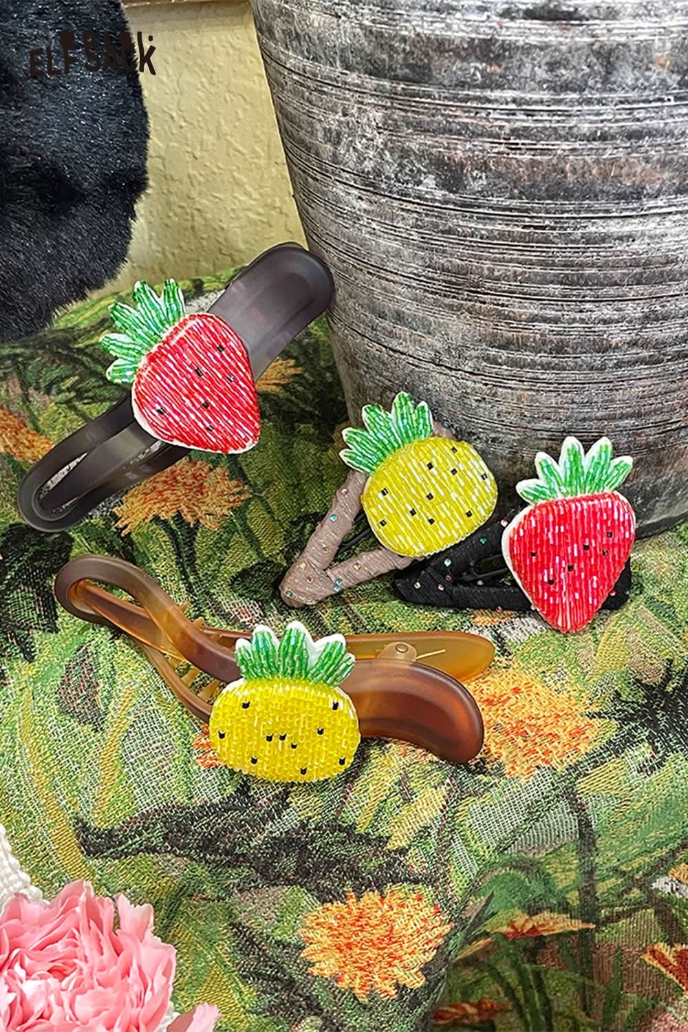 Crystal Fruit Hairpin Handmade Resin Strawberry Pineapple Barrettes