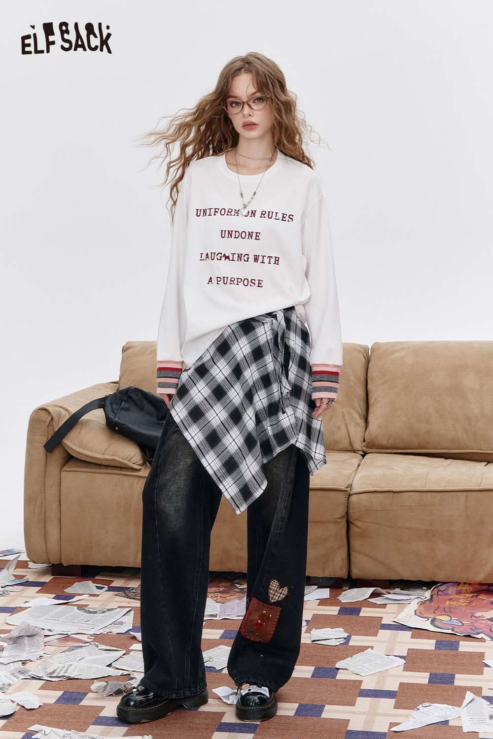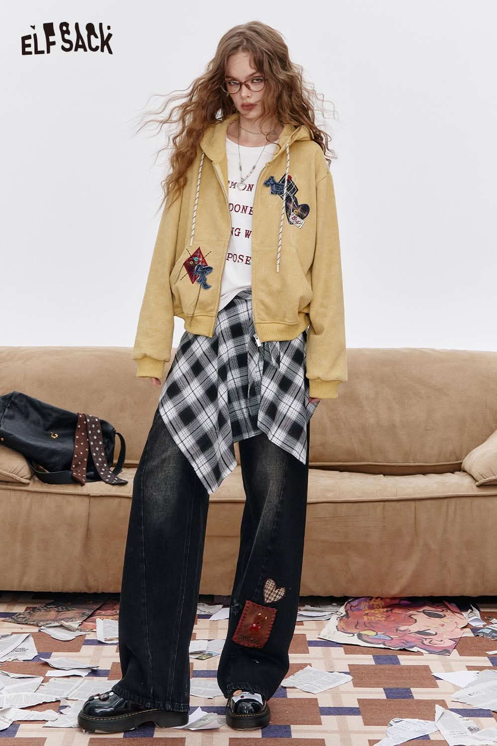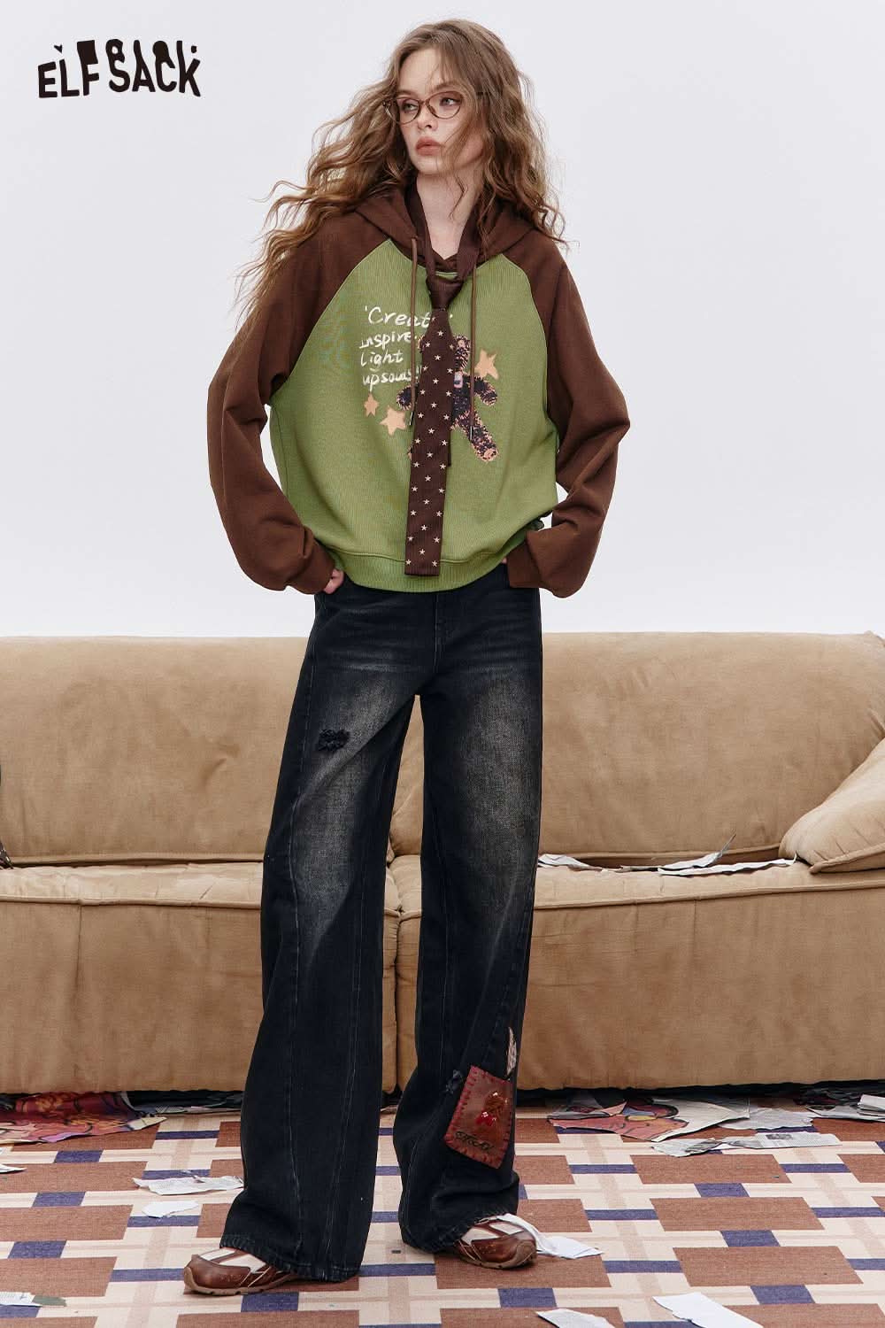 Soft Denim Relaxed Fit Watercolor Wash Heart Shaped Applique Detail Jeans