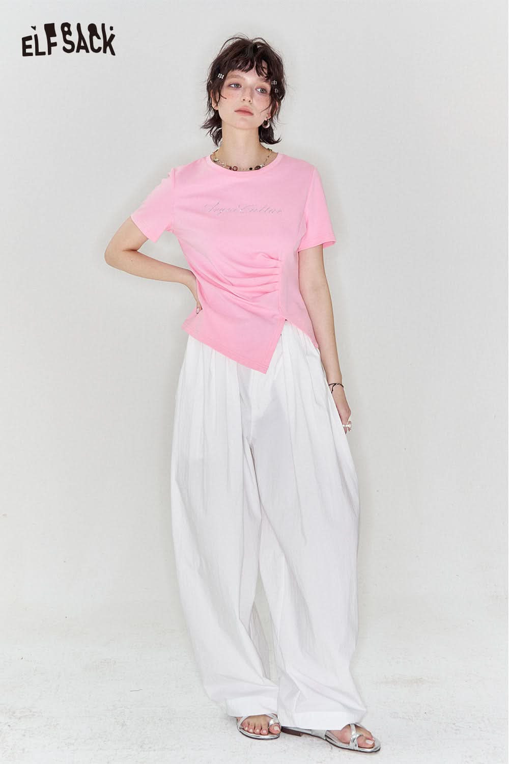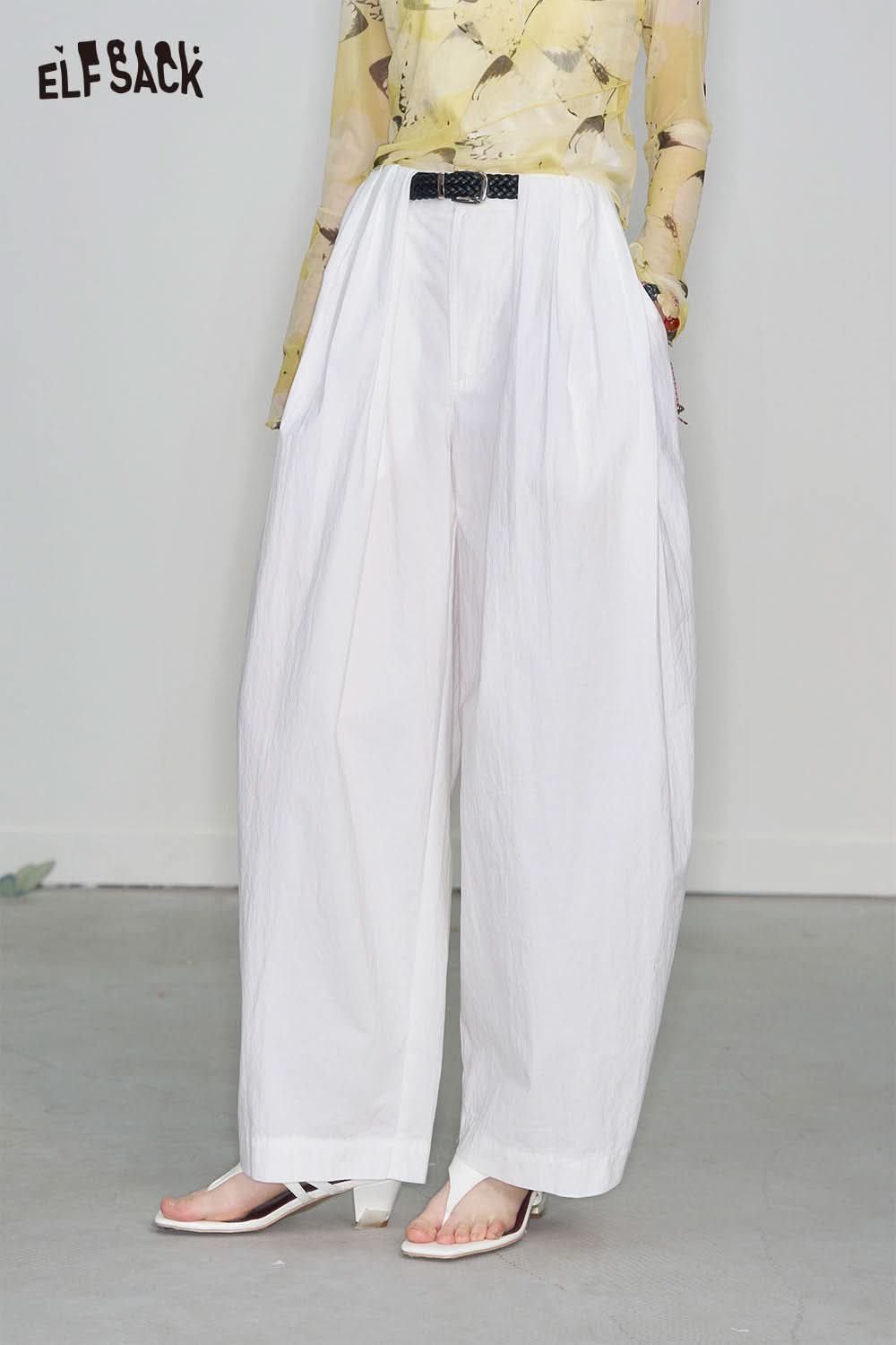 Cotton Blend Wide Leg Tapered Ankle Design Minimalist Trousers