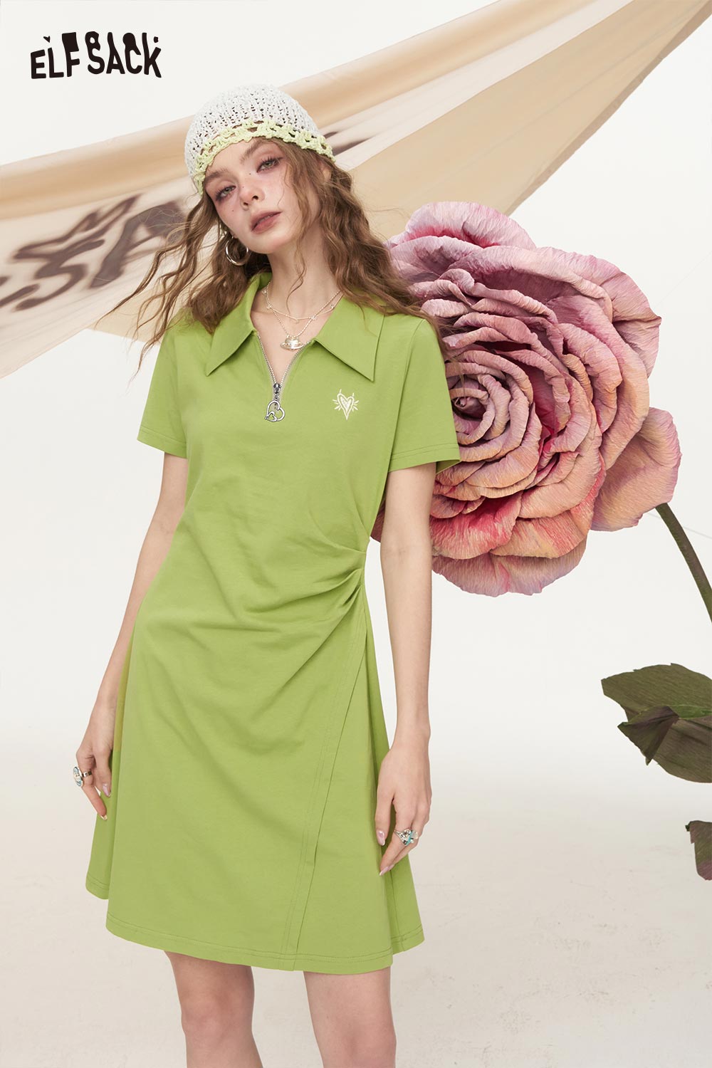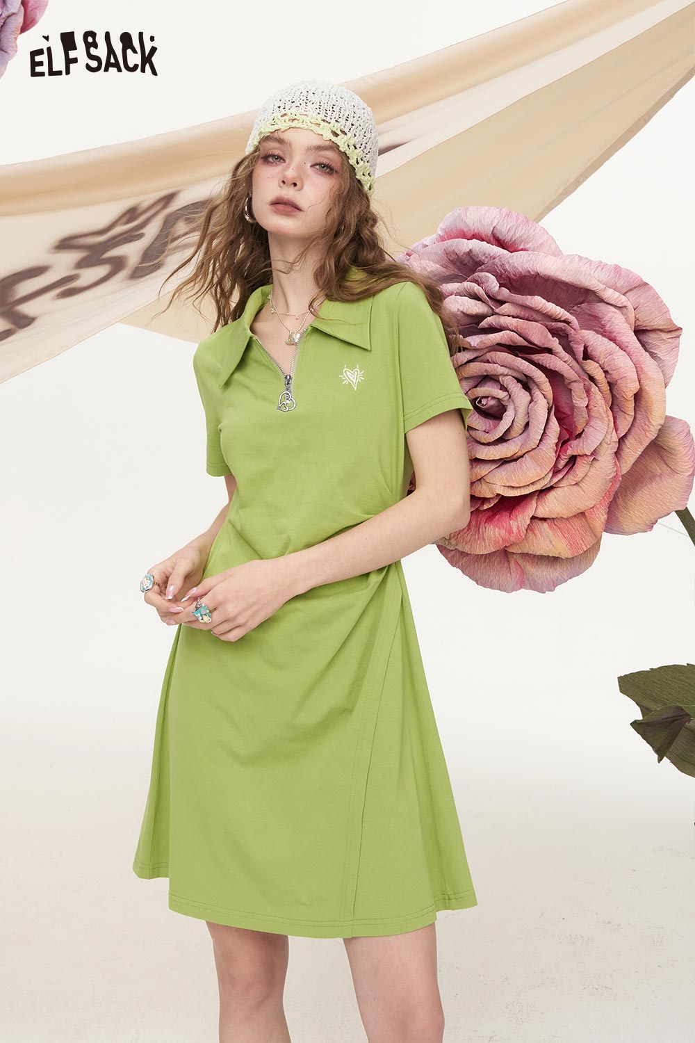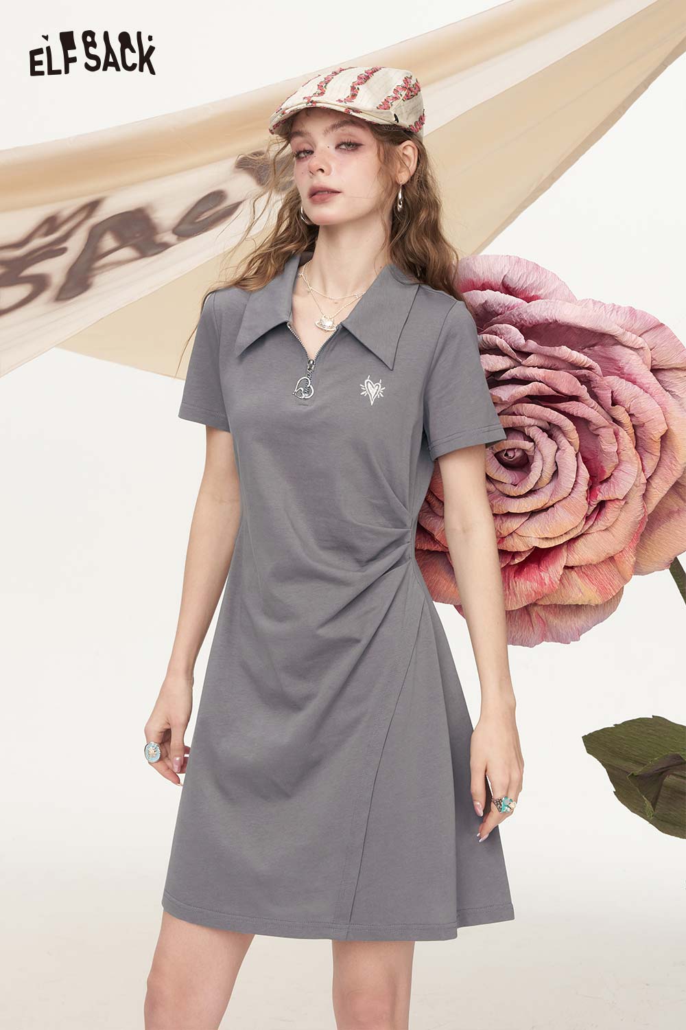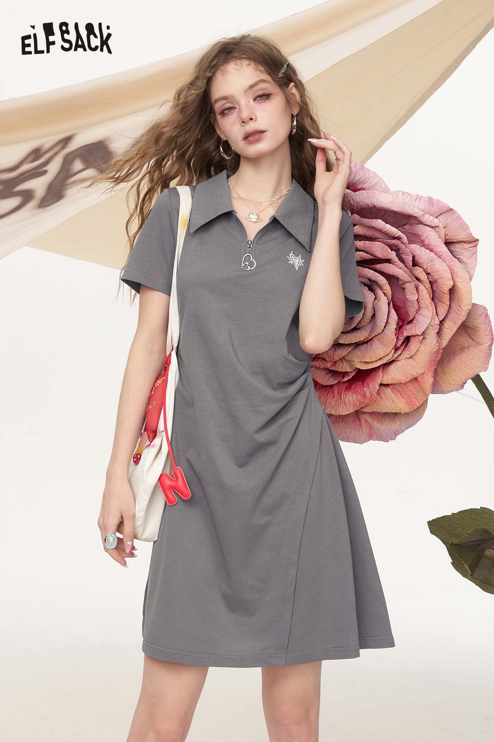 Cotton Long T-shirt Dress Bear Print Side Slit