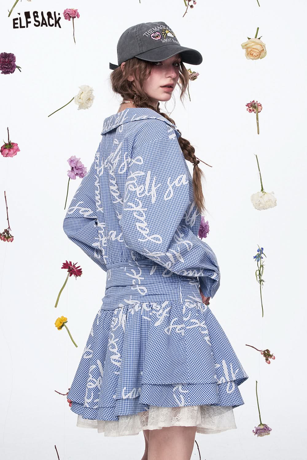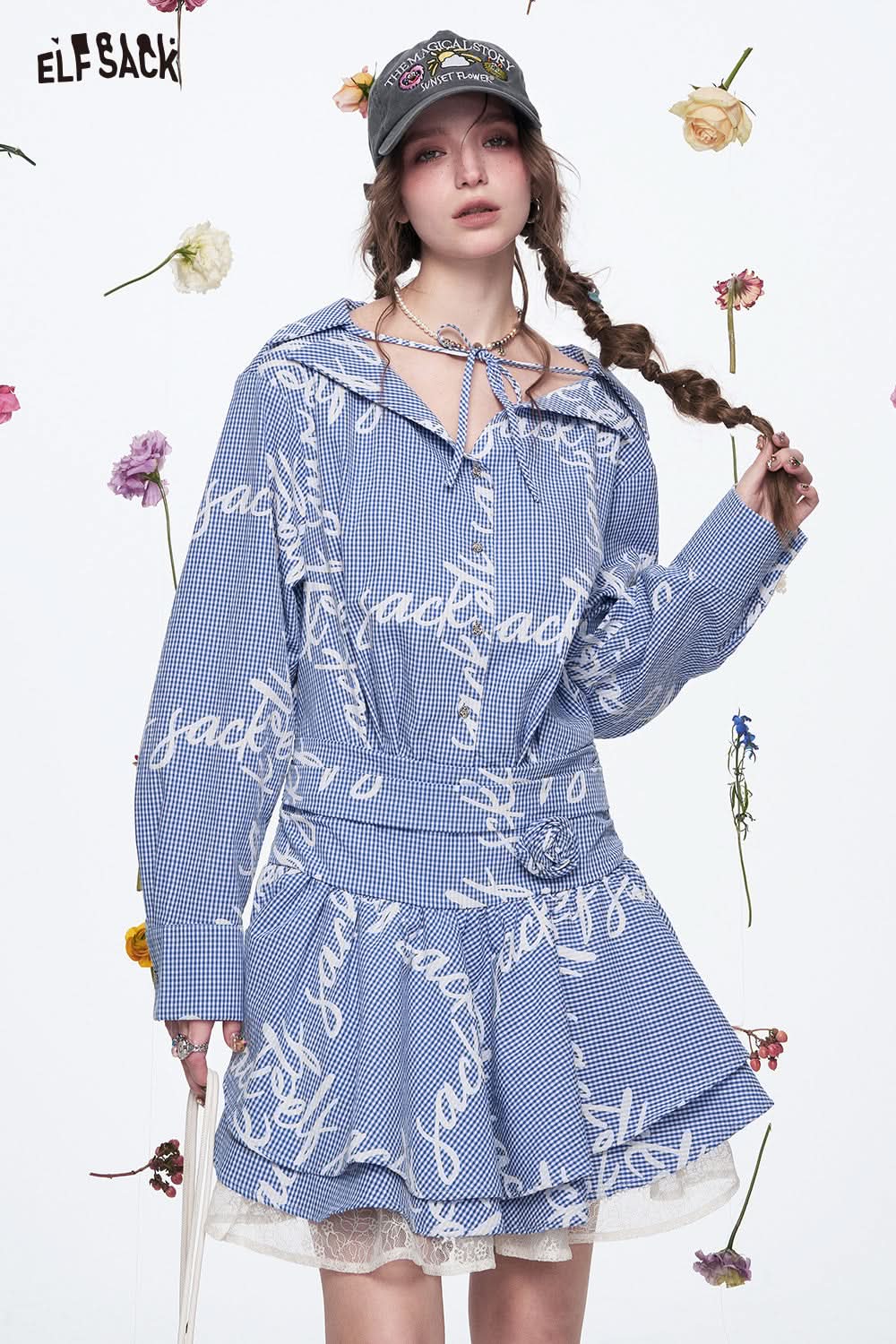 Preppy Style Letter Printed Plaid Long Sleeve Dress Women