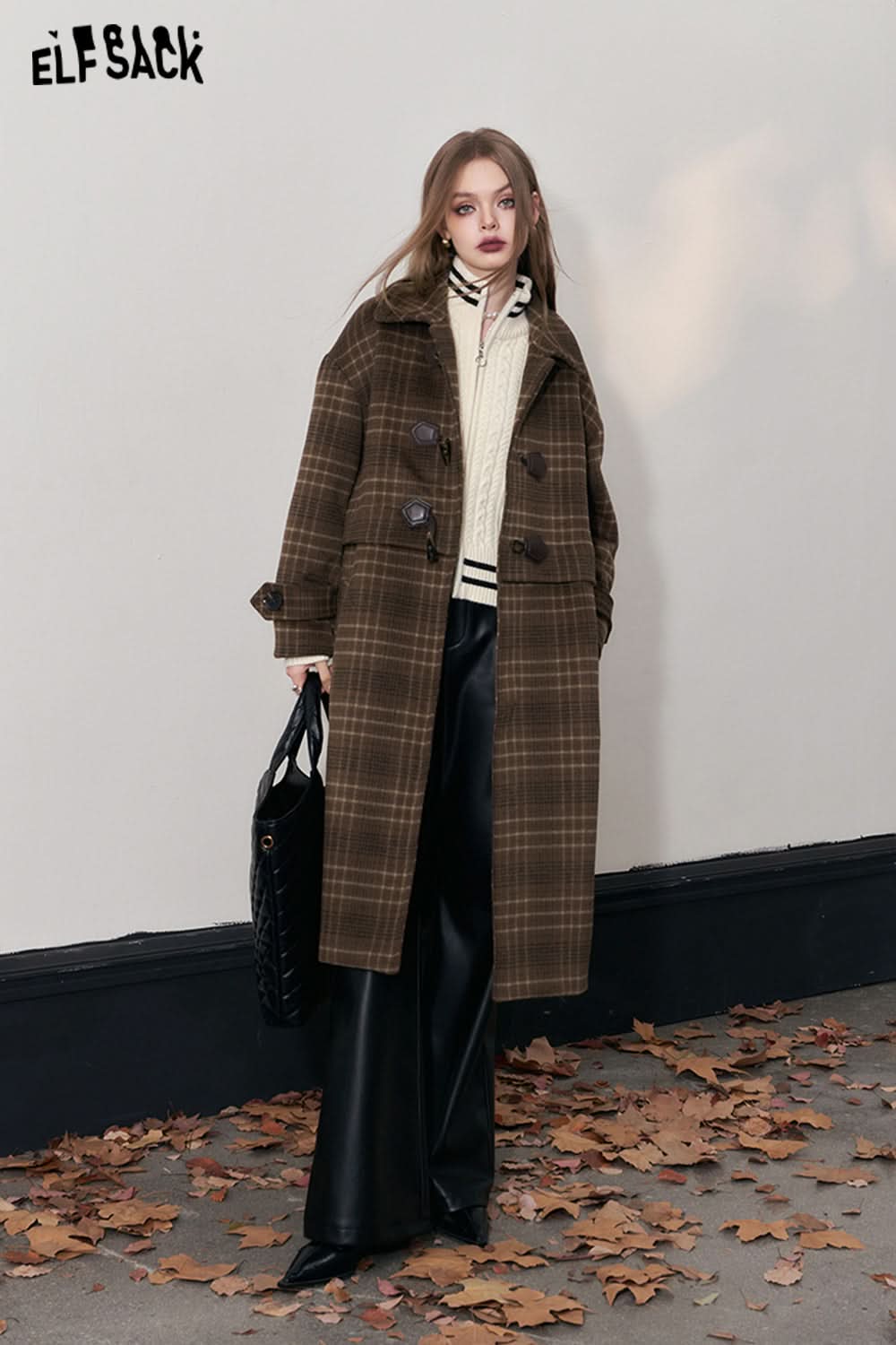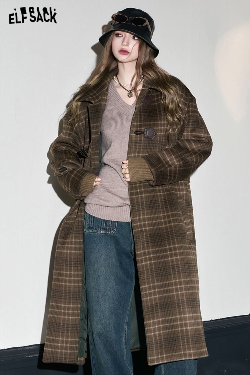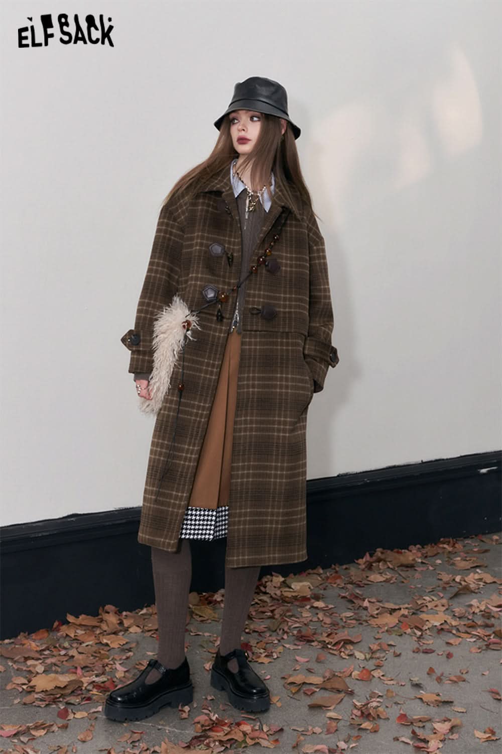 Retro Plaid Warm Wool Coats Women Korean Fashion Long Outwears